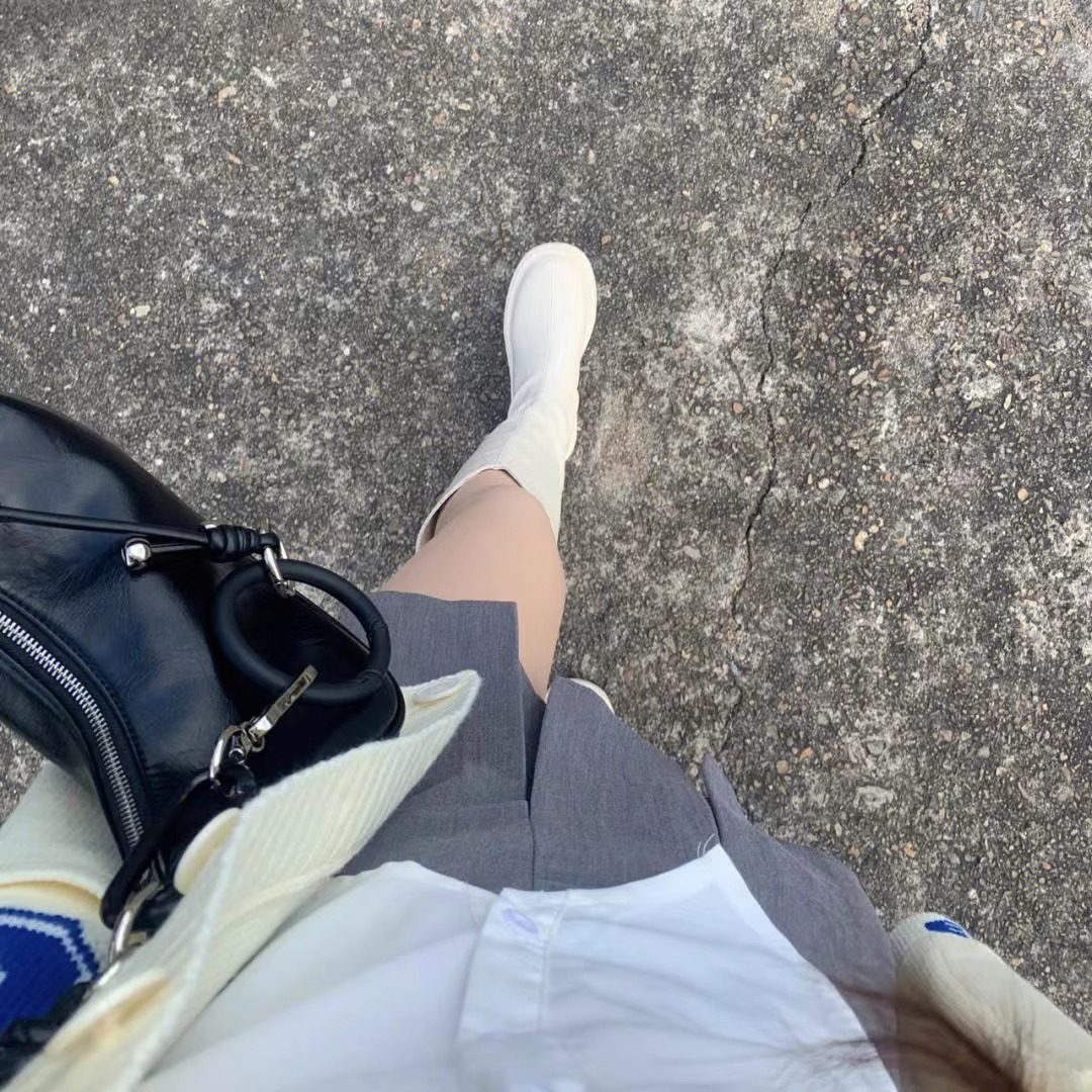 白色v口長筒靴女春秋季奶茶色高筒靴小個子厚底彈力瘦瘦騎士長靴
