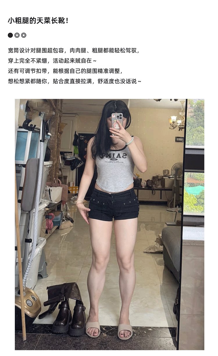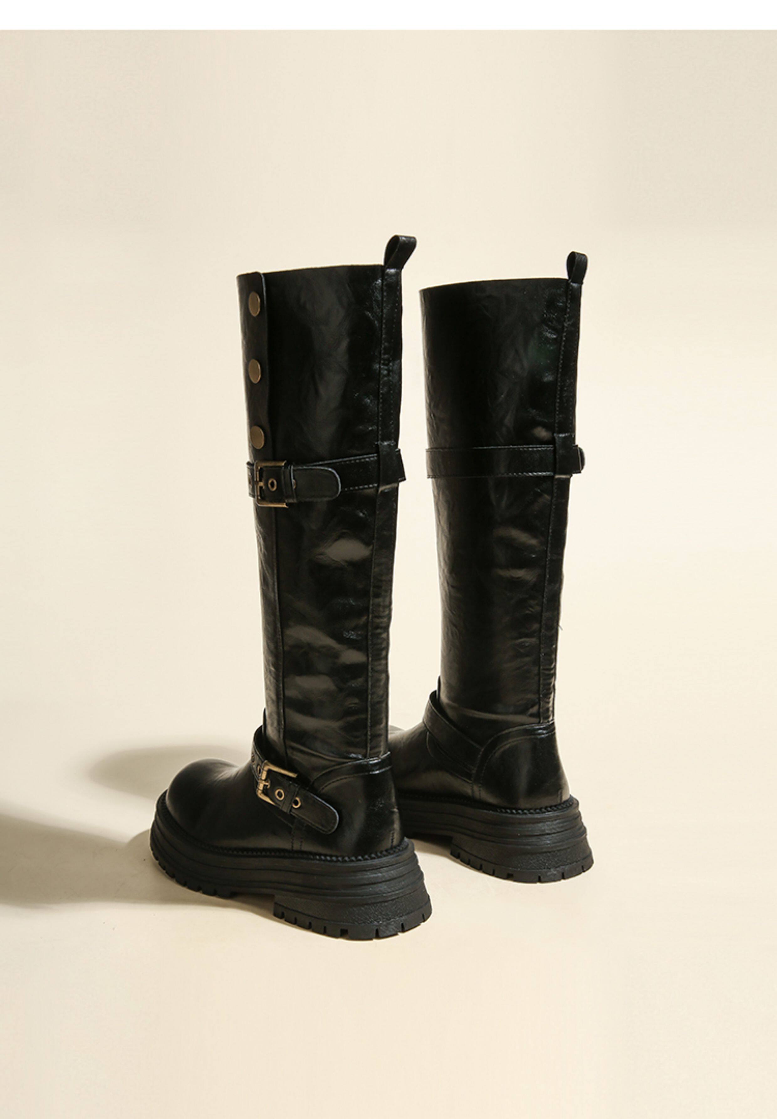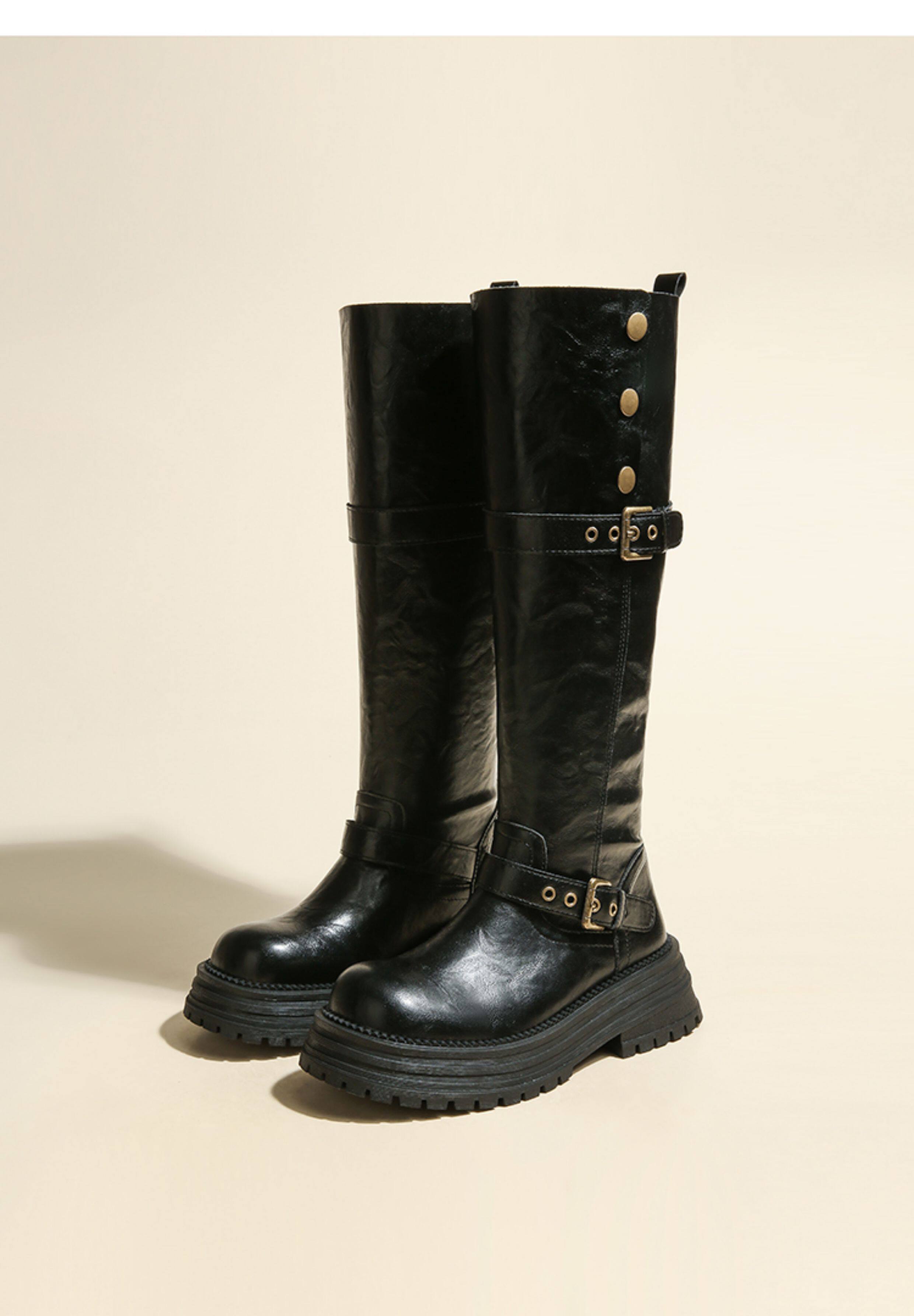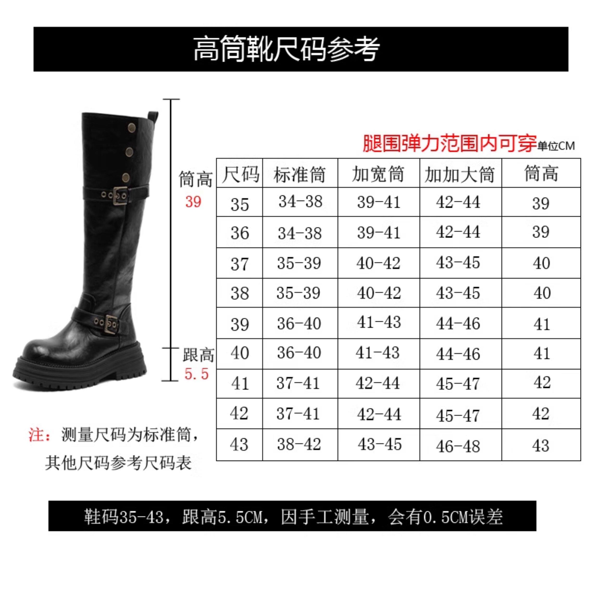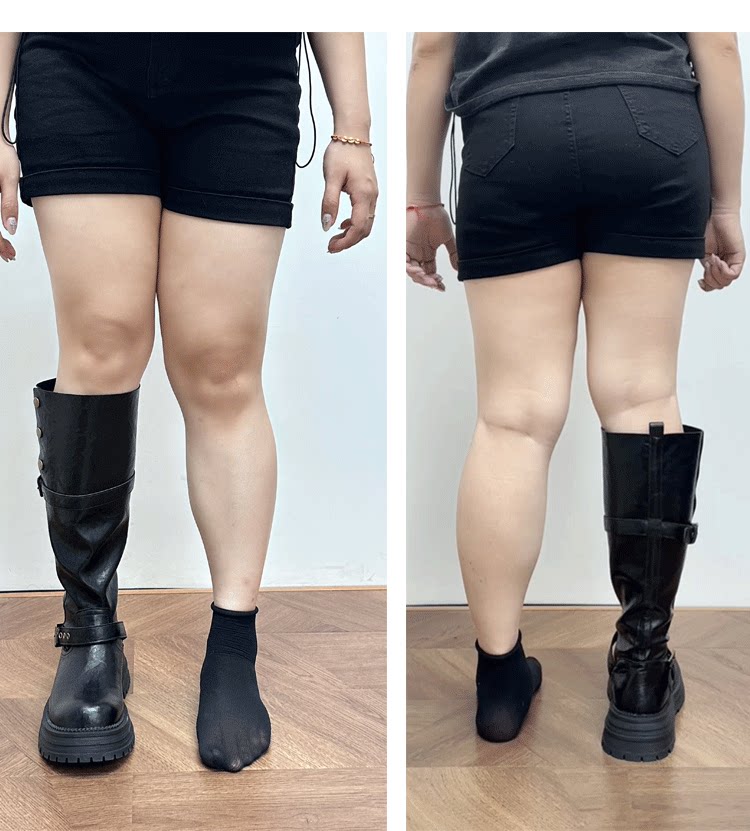 兩穿長筒靴女粗腿胖mm高筒加絨皮帶釦大筒圍騎士靴大碼長靴41一43