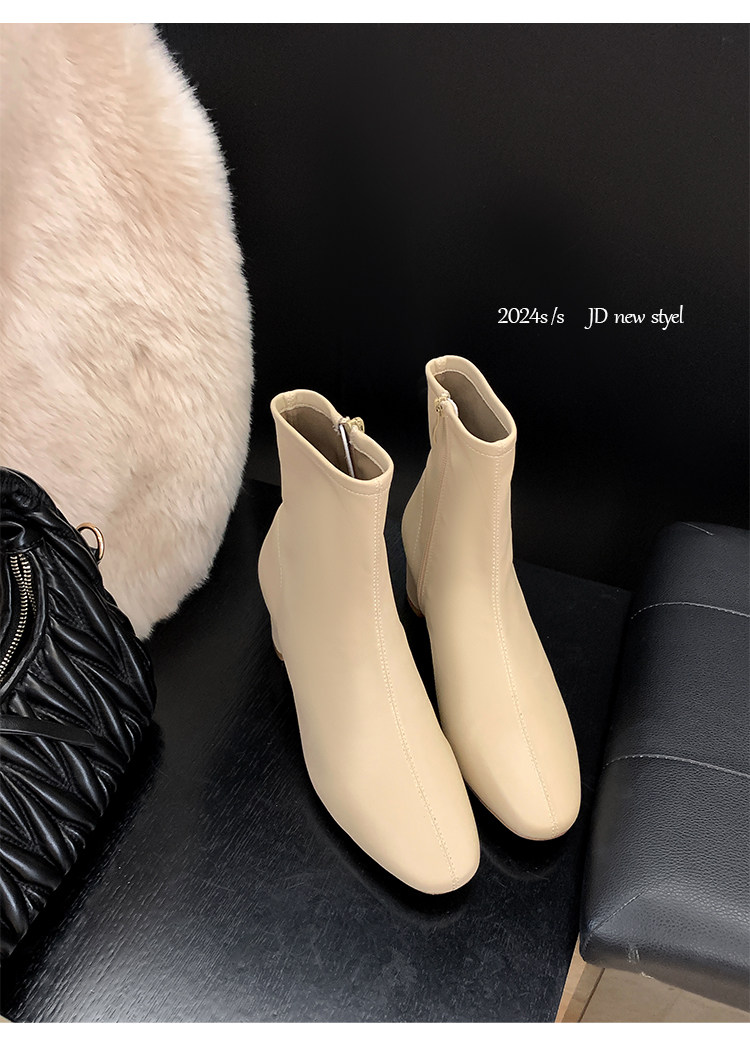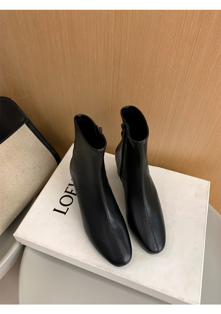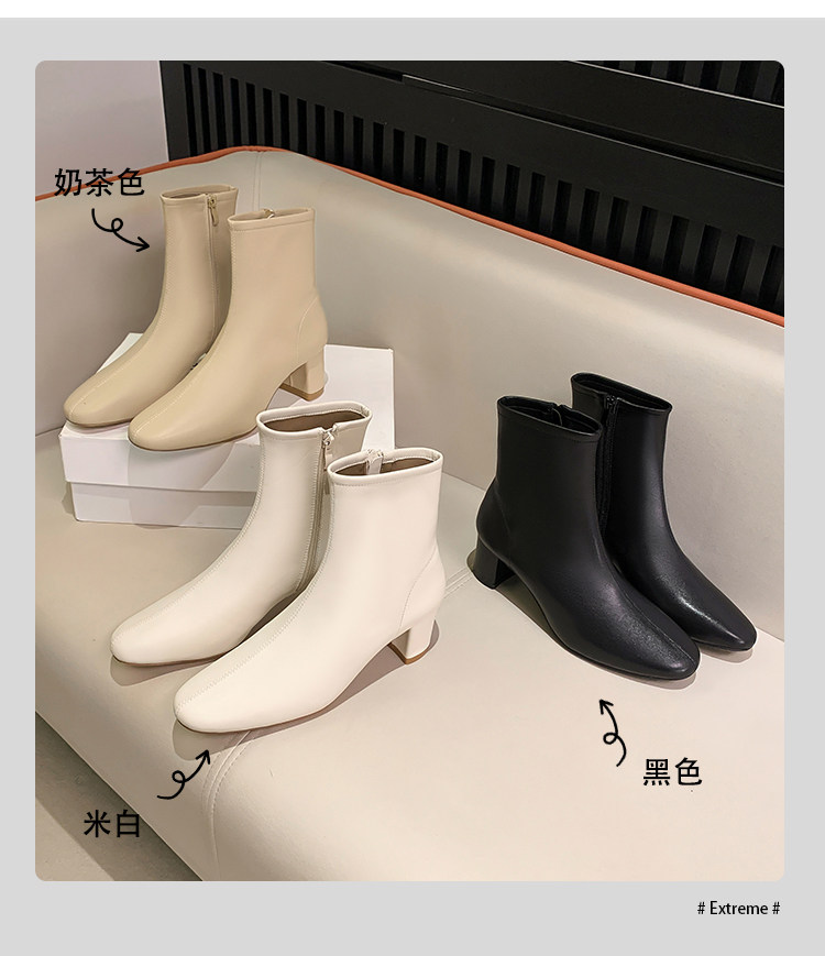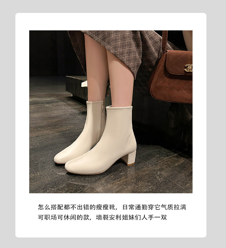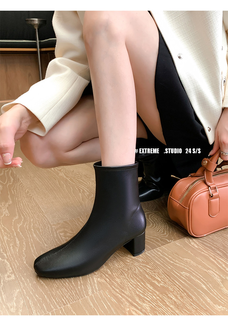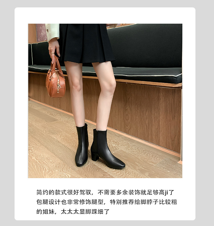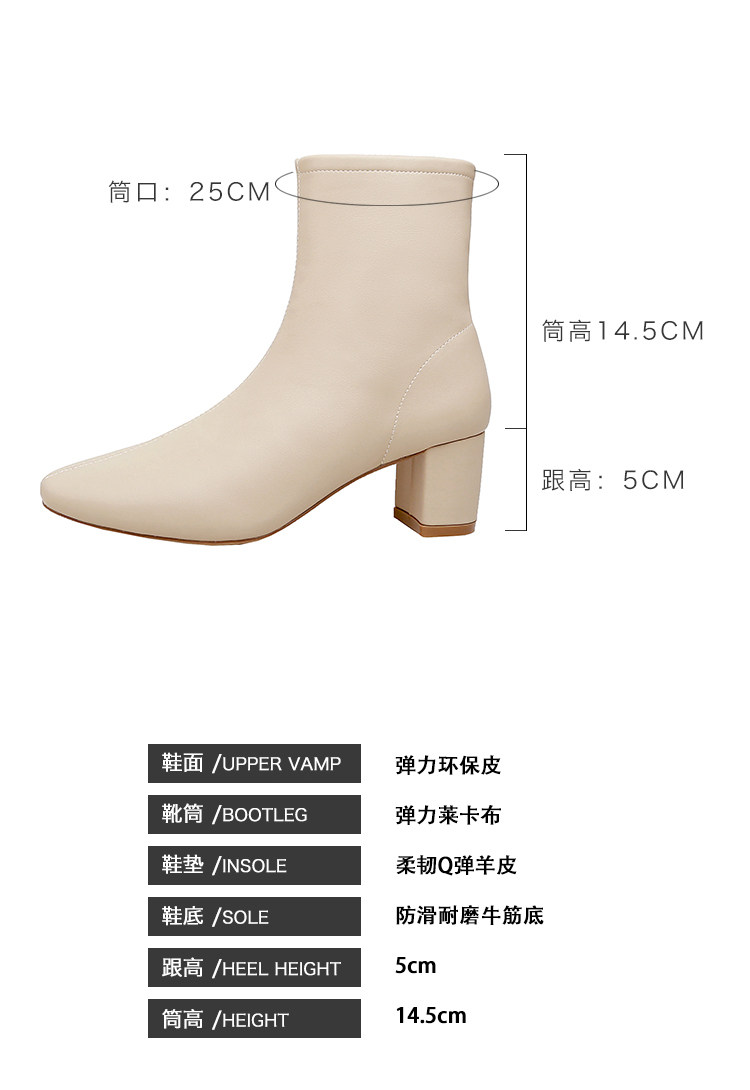 方頭短靴女真皮小碼313233彈力瘦瘦靴粗跟踝靴大碼女靴41一43軟皮