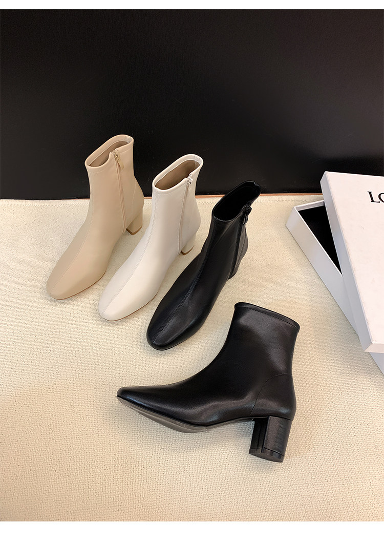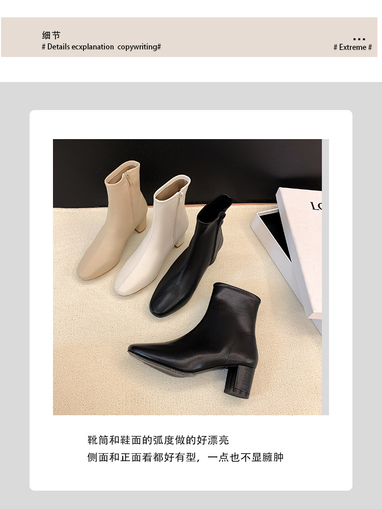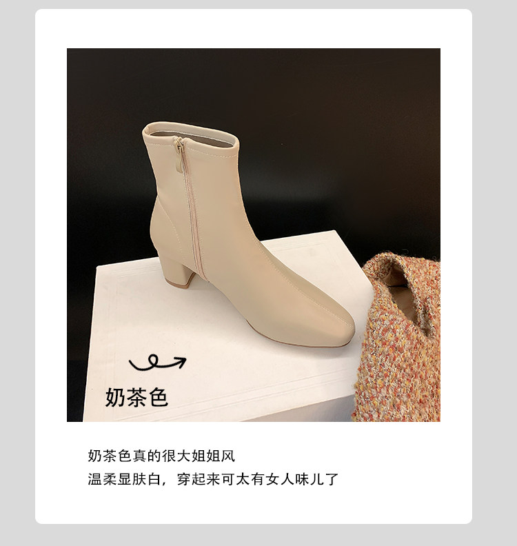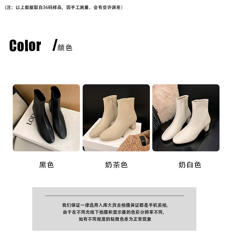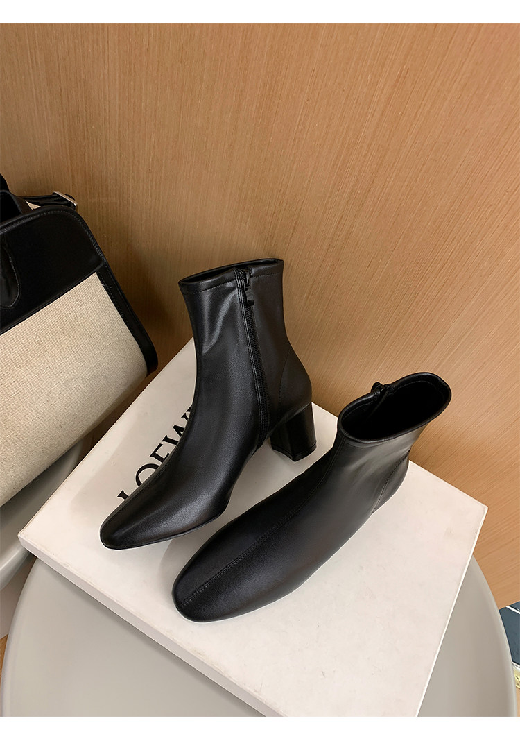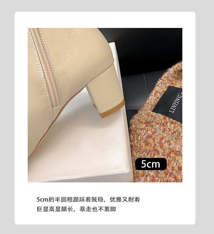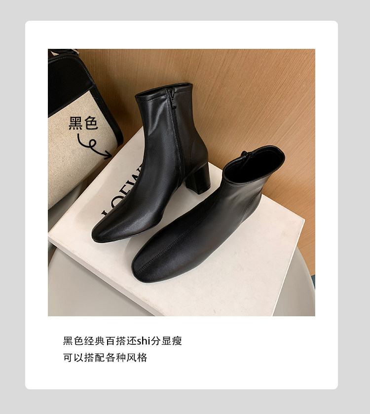 方頭短靴女真皮小碼313233彈力瘦瘦靴粗跟踝靴大碼女靴41一43軟皮