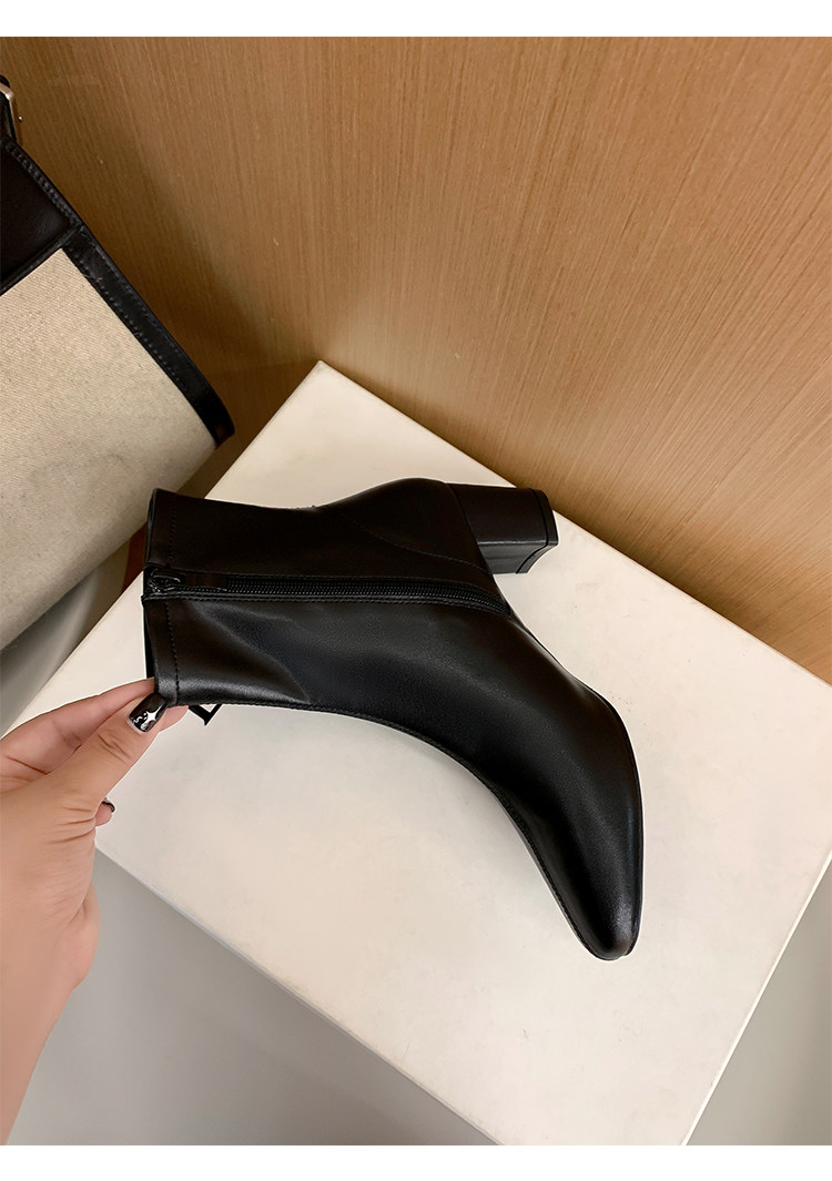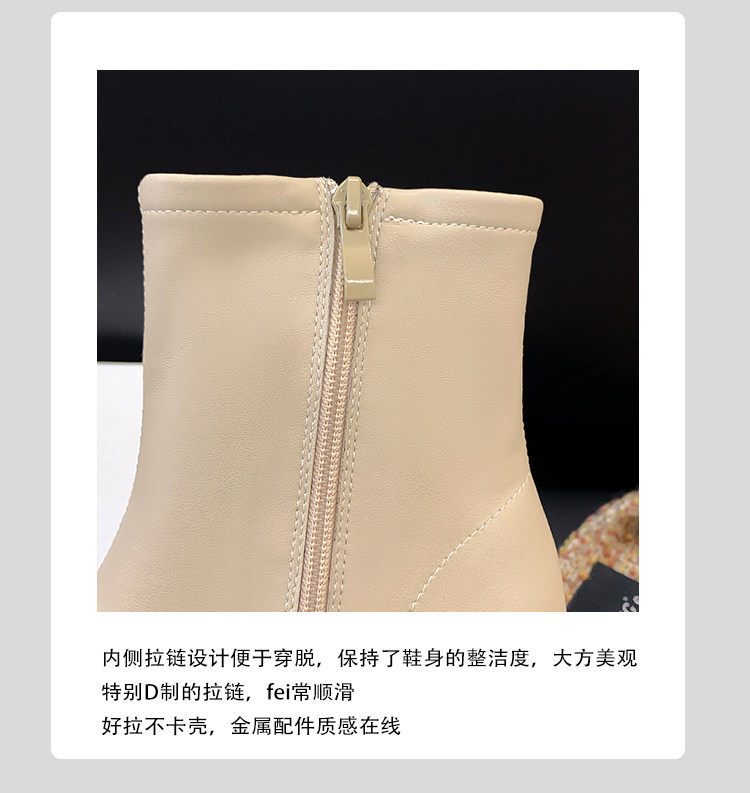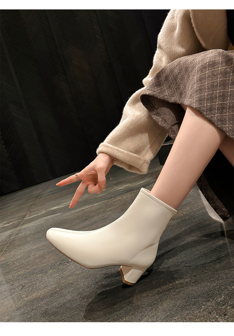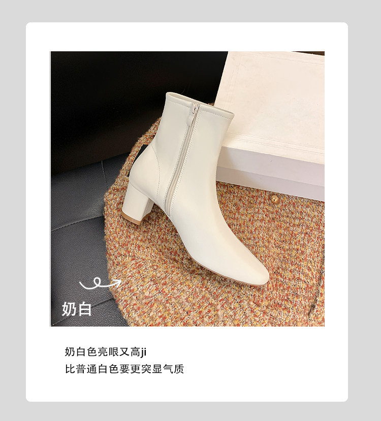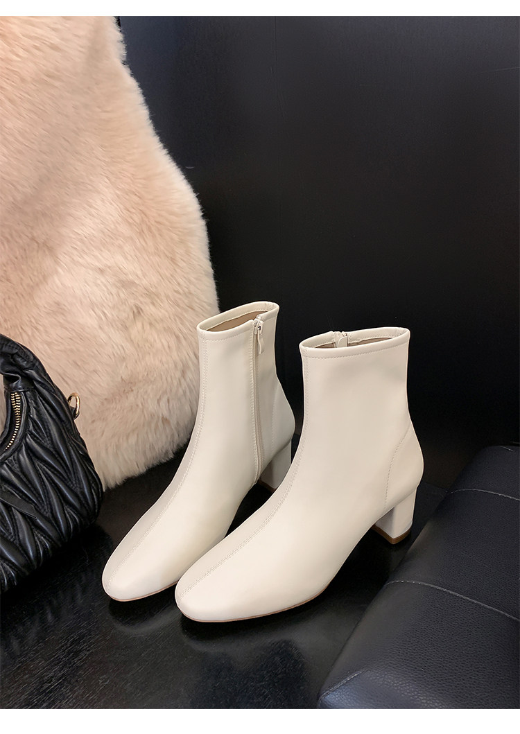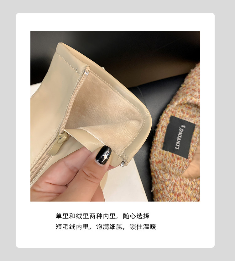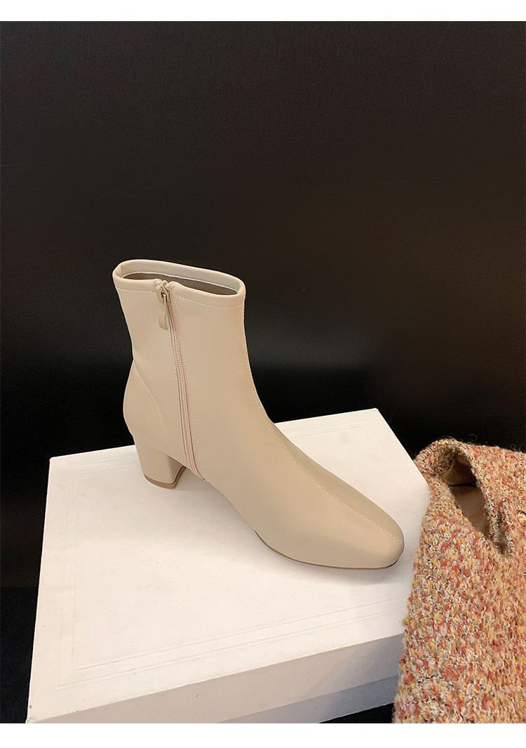 方頭短靴女真皮小碼313233彈力瘦瘦靴粗跟踝靴大碼女靴41一43軟皮