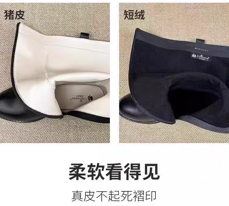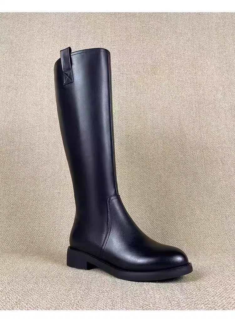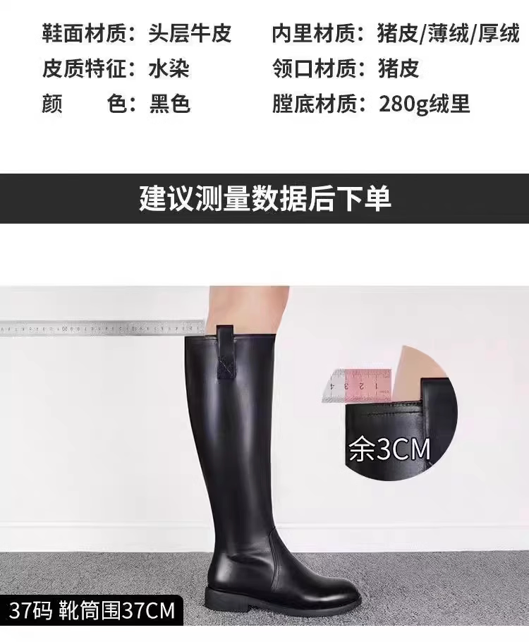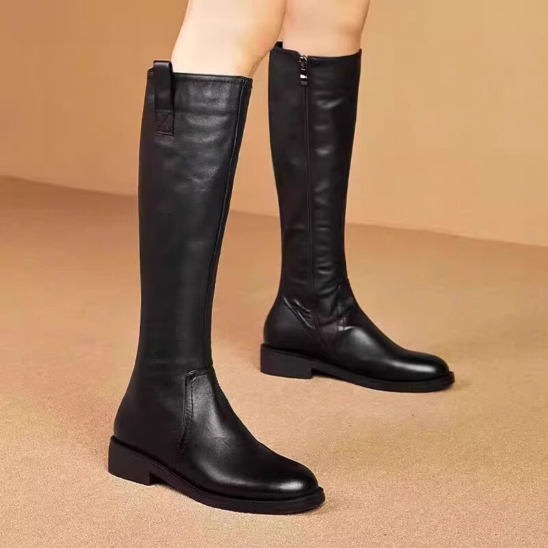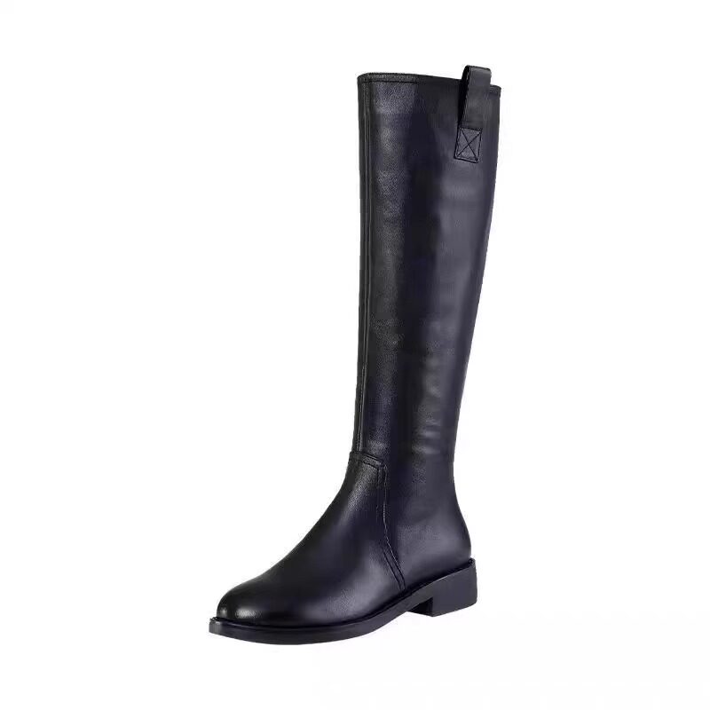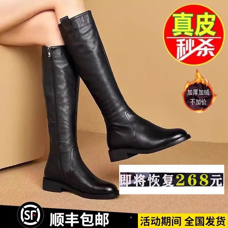 品牌撤櫃真皮騎士靴女冬季高筒靴黑色加絨平底長靴不過膝馬丁靴子