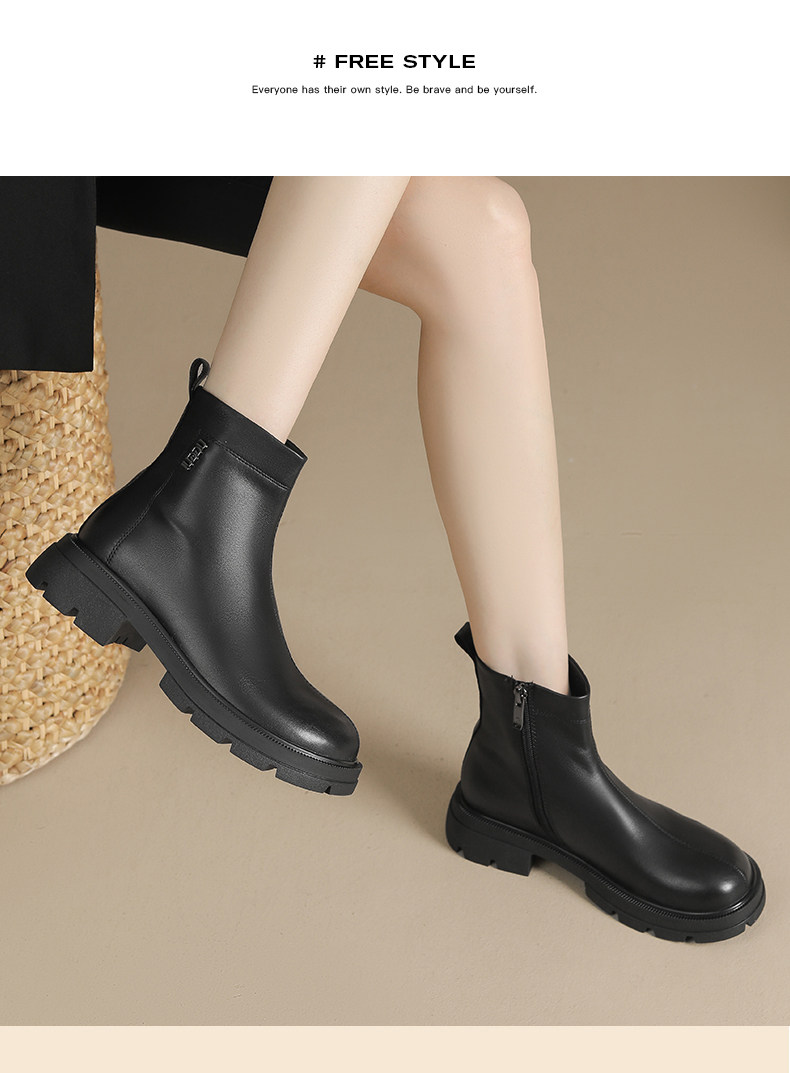 卓詩尼菸筒靴女秋冬季短靴英倫風顯瘦瘦靴百搭復古時裝靴小短靴女