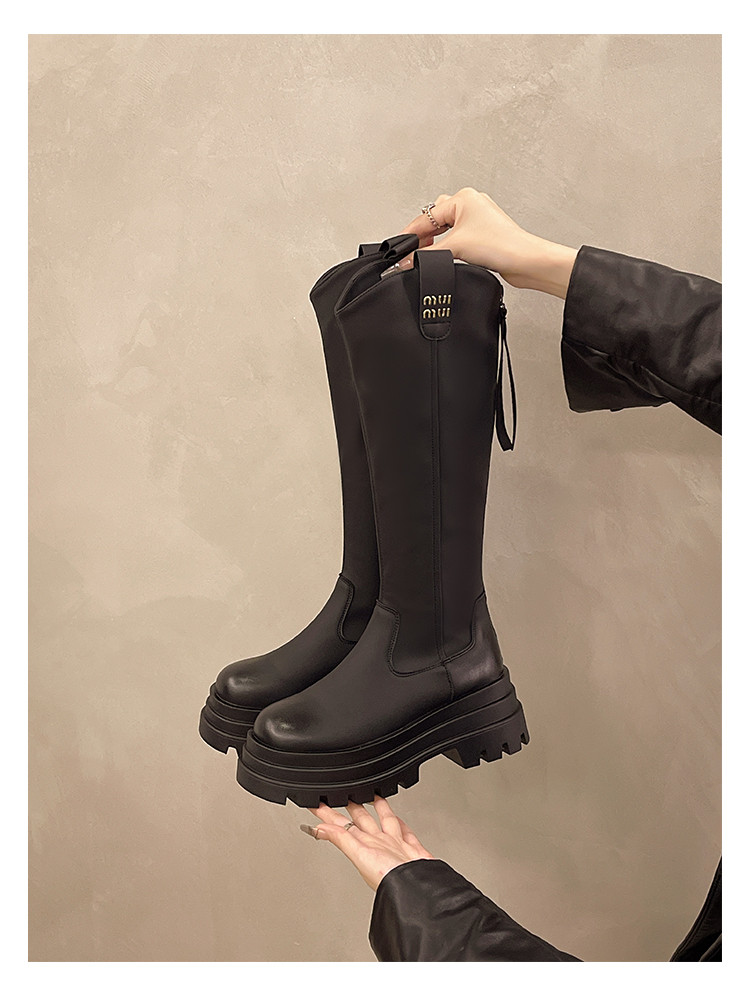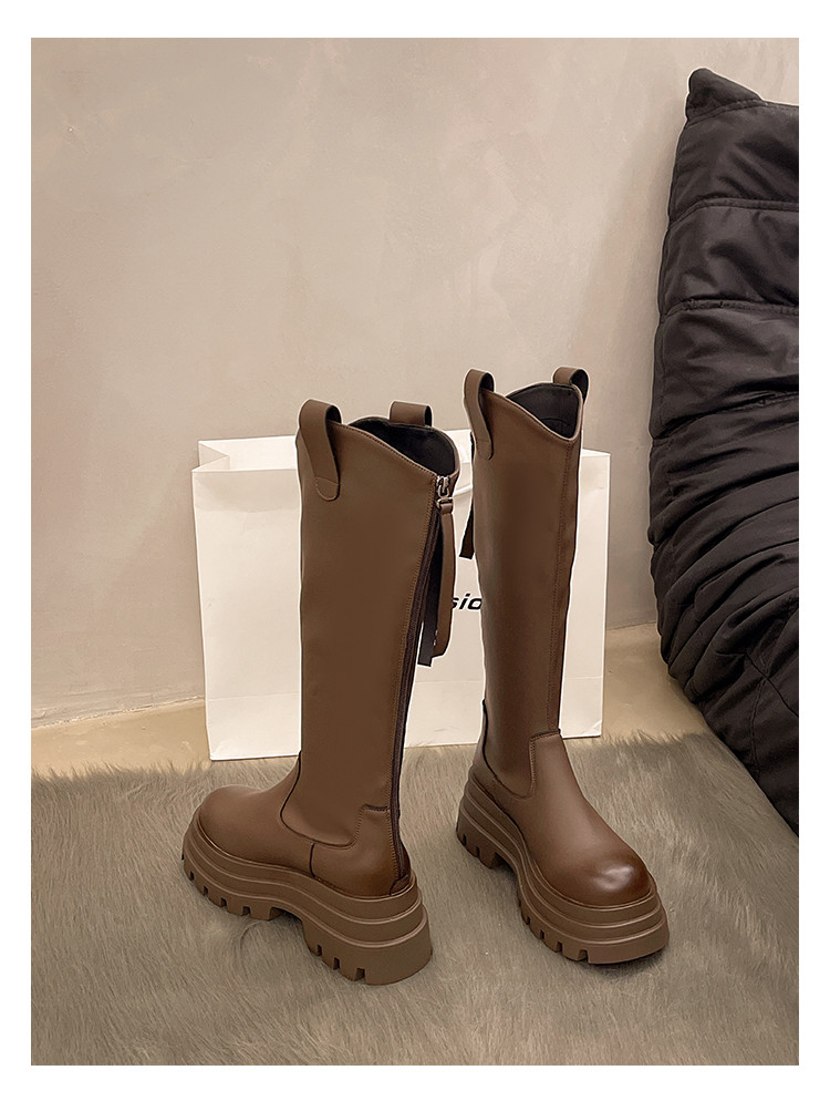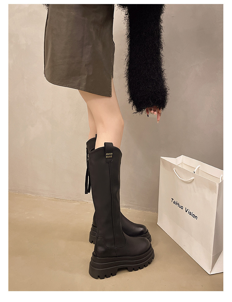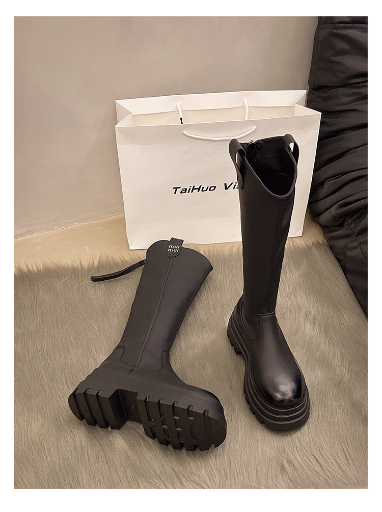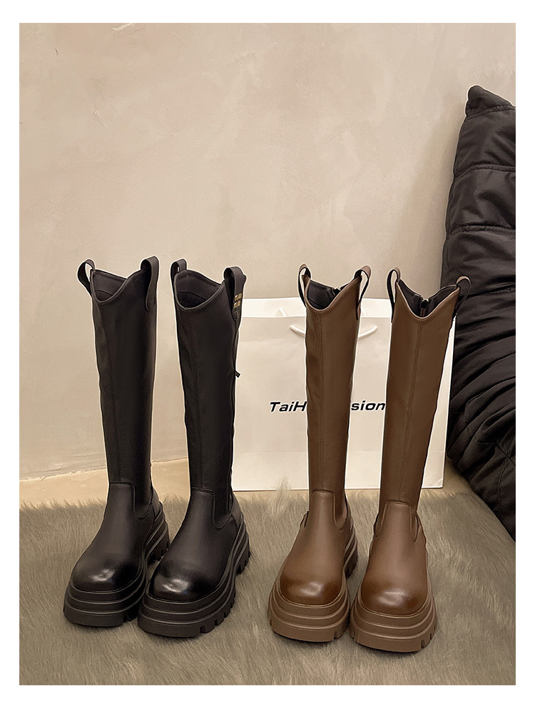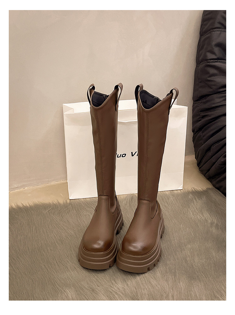 厚底長筒靴子女2026新款秋冬季顯瘦高筒靴v口不過膝小個子騎士靴