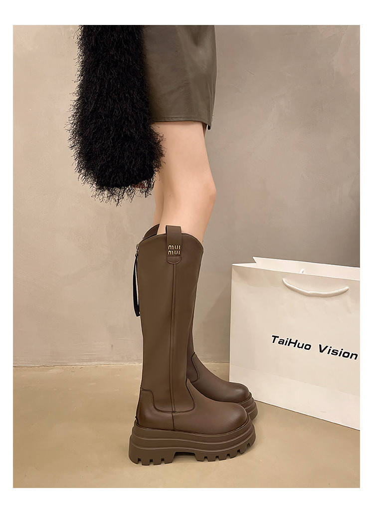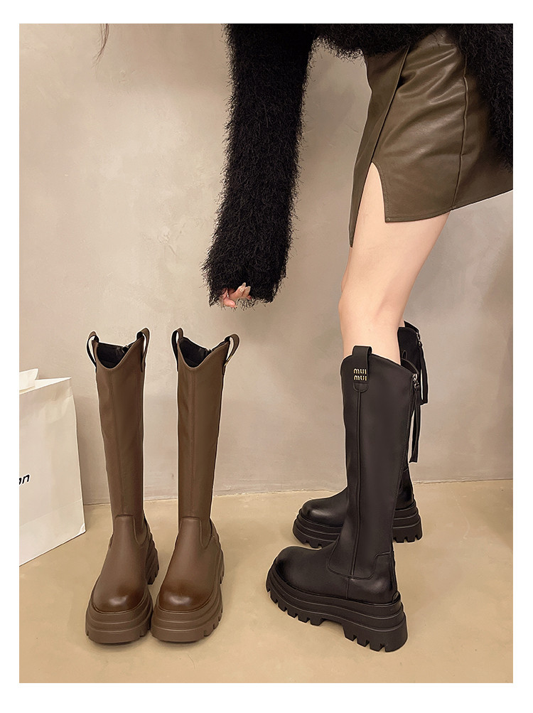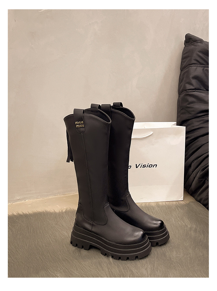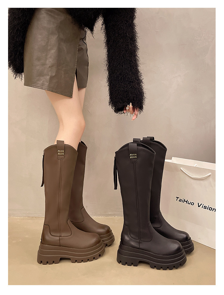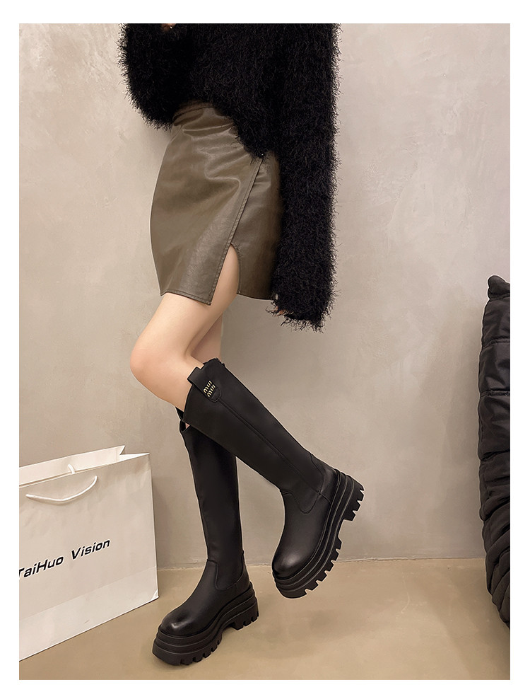 厚底長筒靴子女2026新款秋冬季顯瘦高筒靴v口不過膝小個子騎士靴