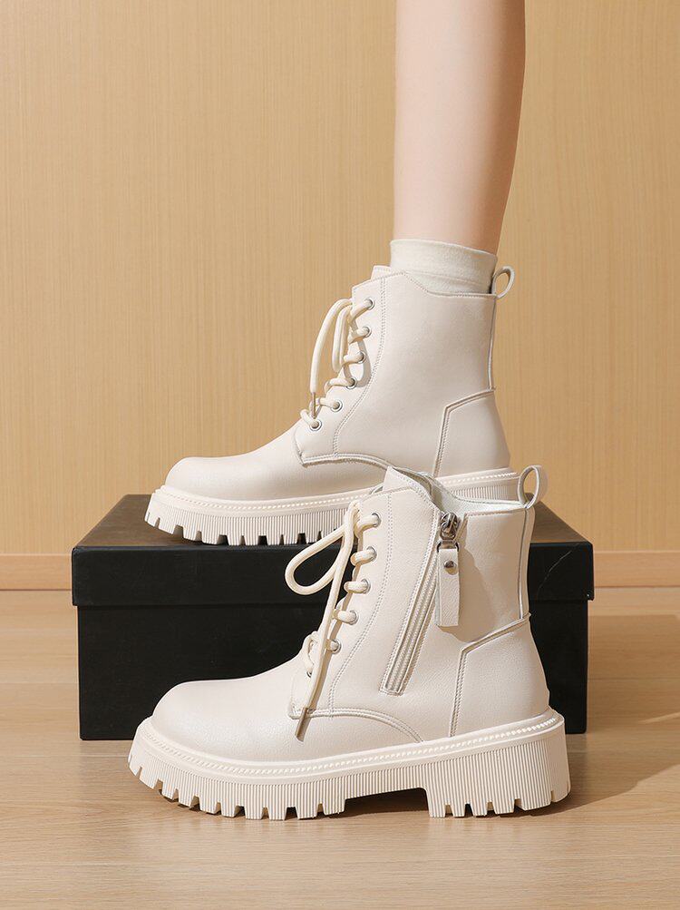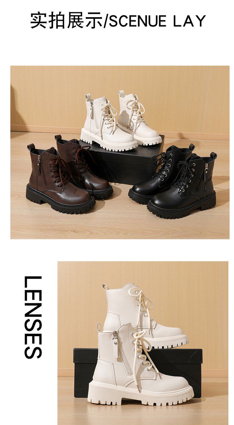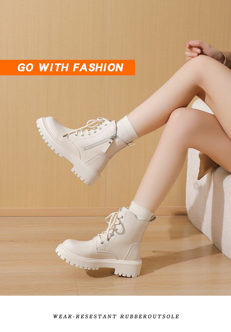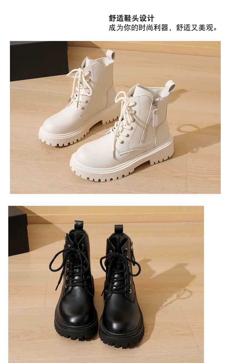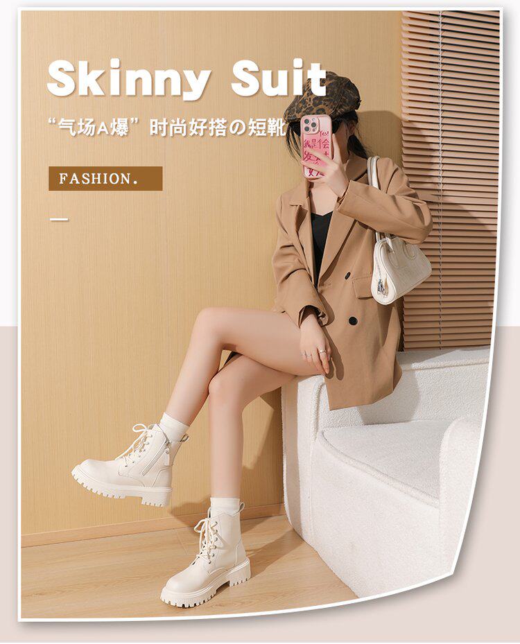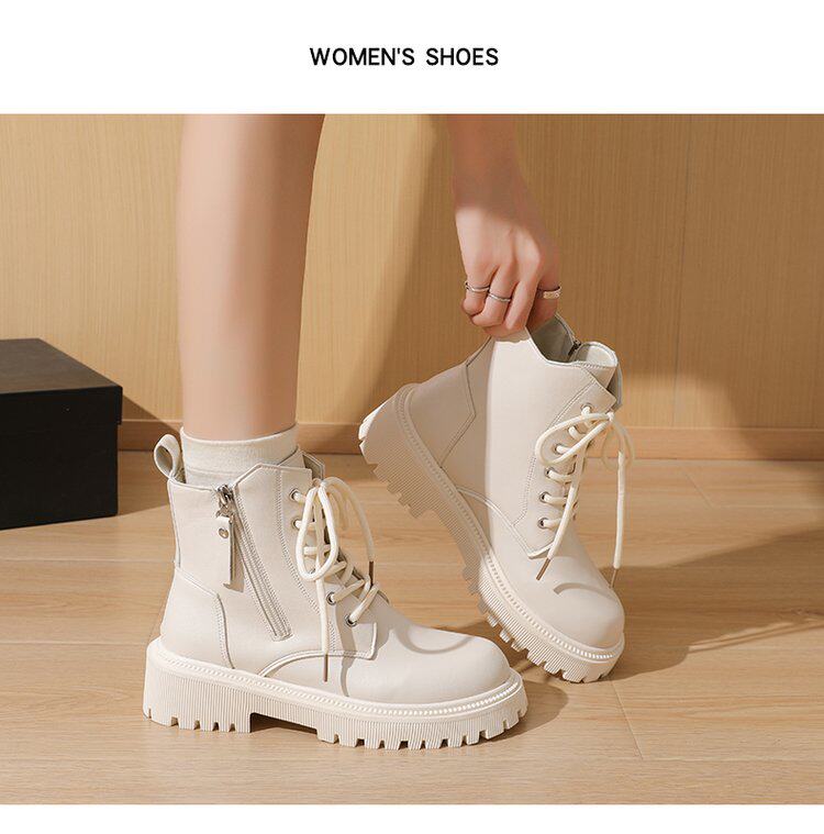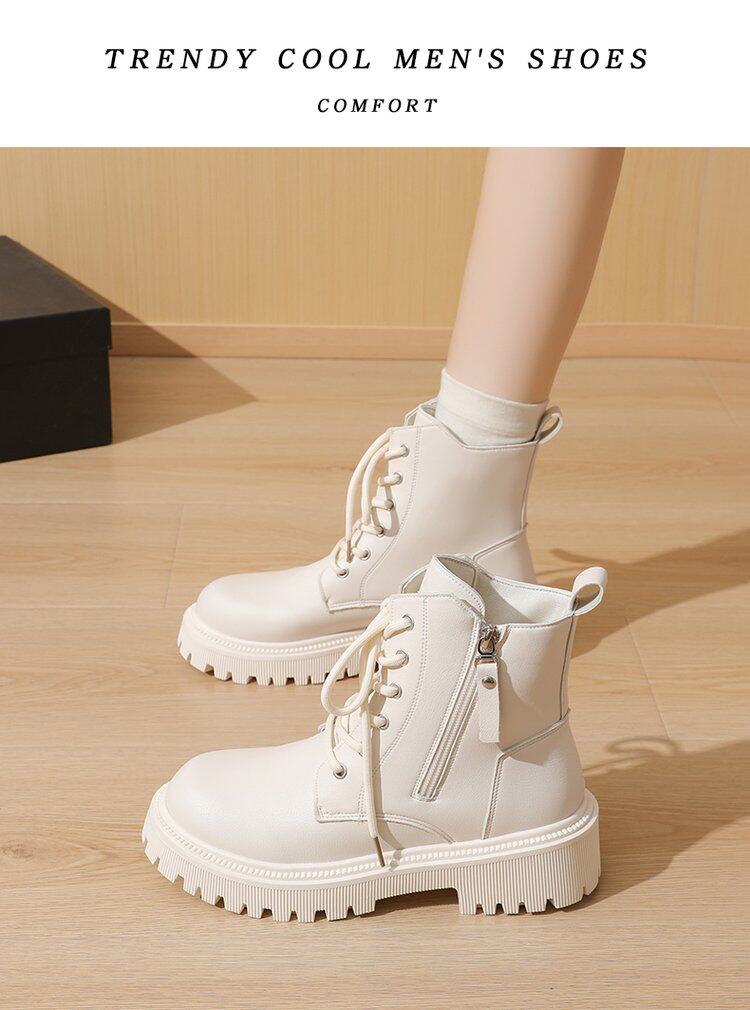 真皮惠州厚底馬丁靴女款2025新款英倫風巨好看內增高瘦瘦白色短靴