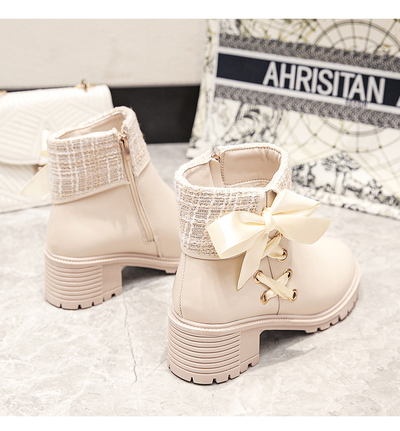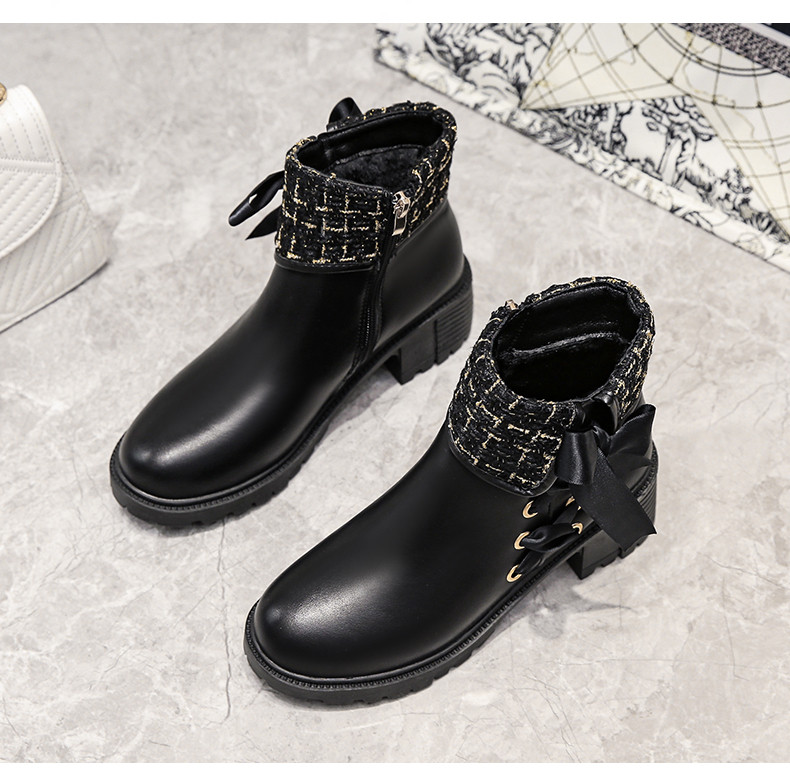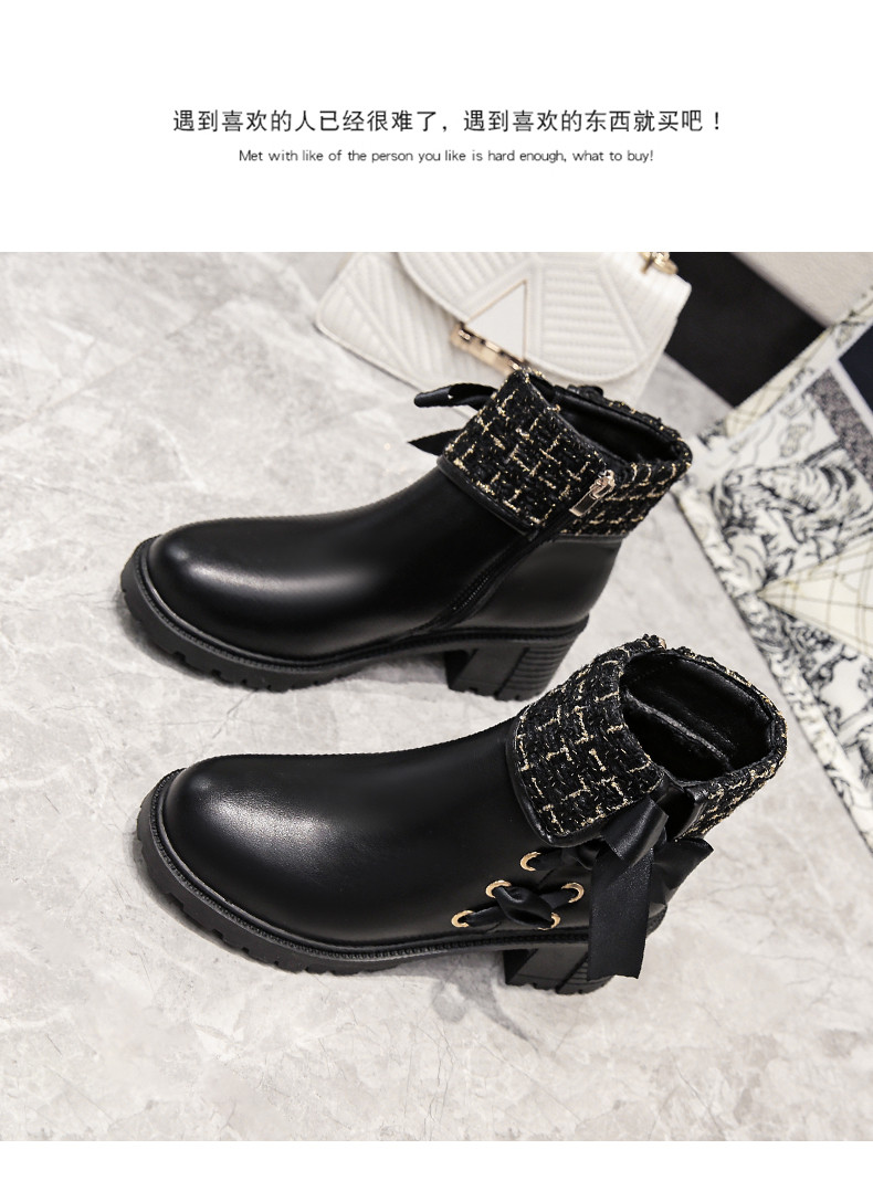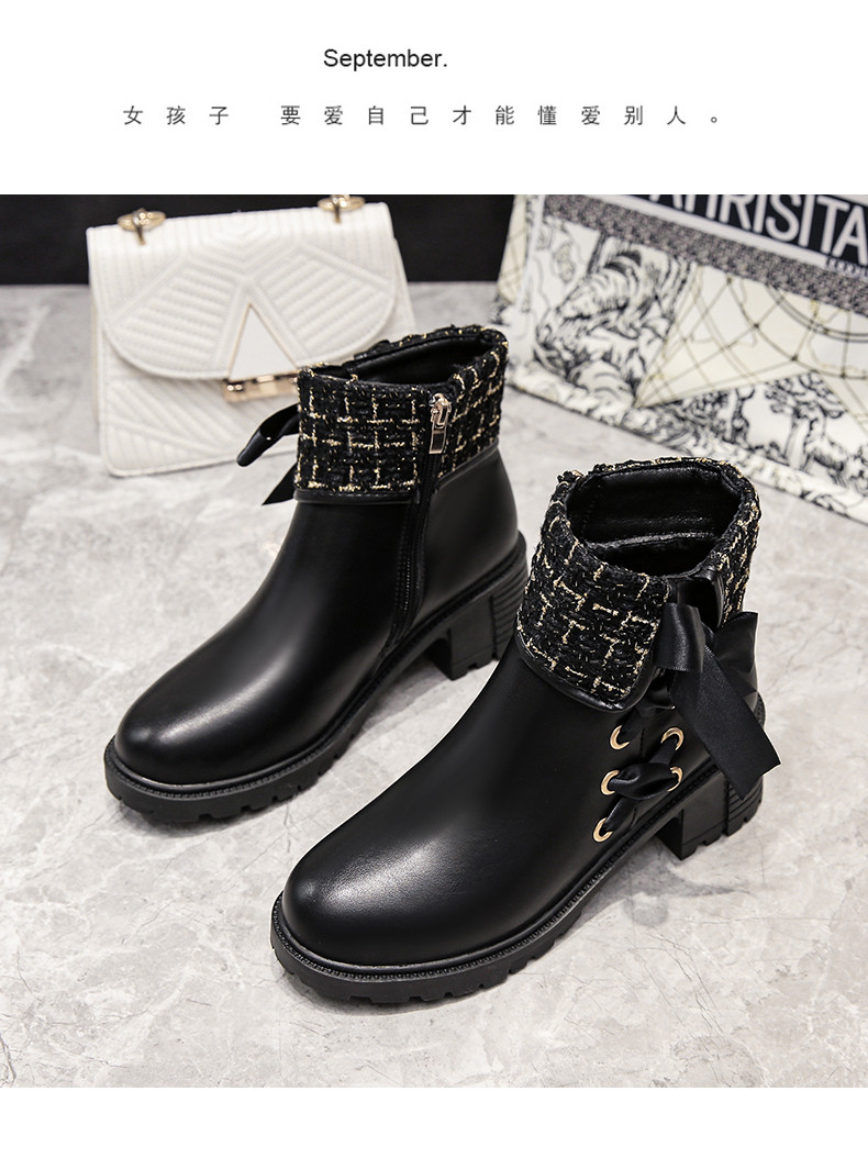 小香風靴子女2025年秋冬新款百搭瘦瘦靴短靴粗跟馬丁靴女高跟單靴