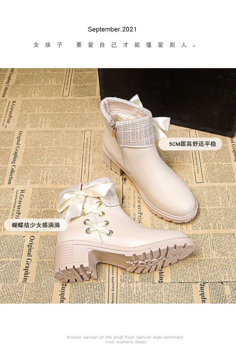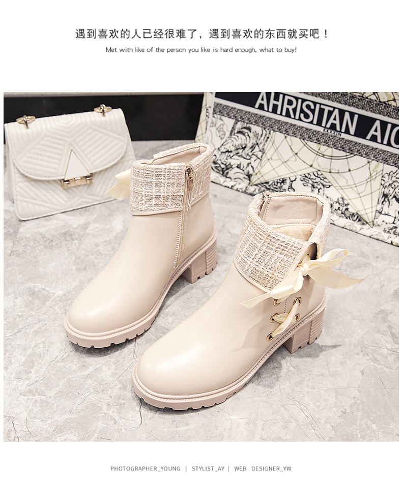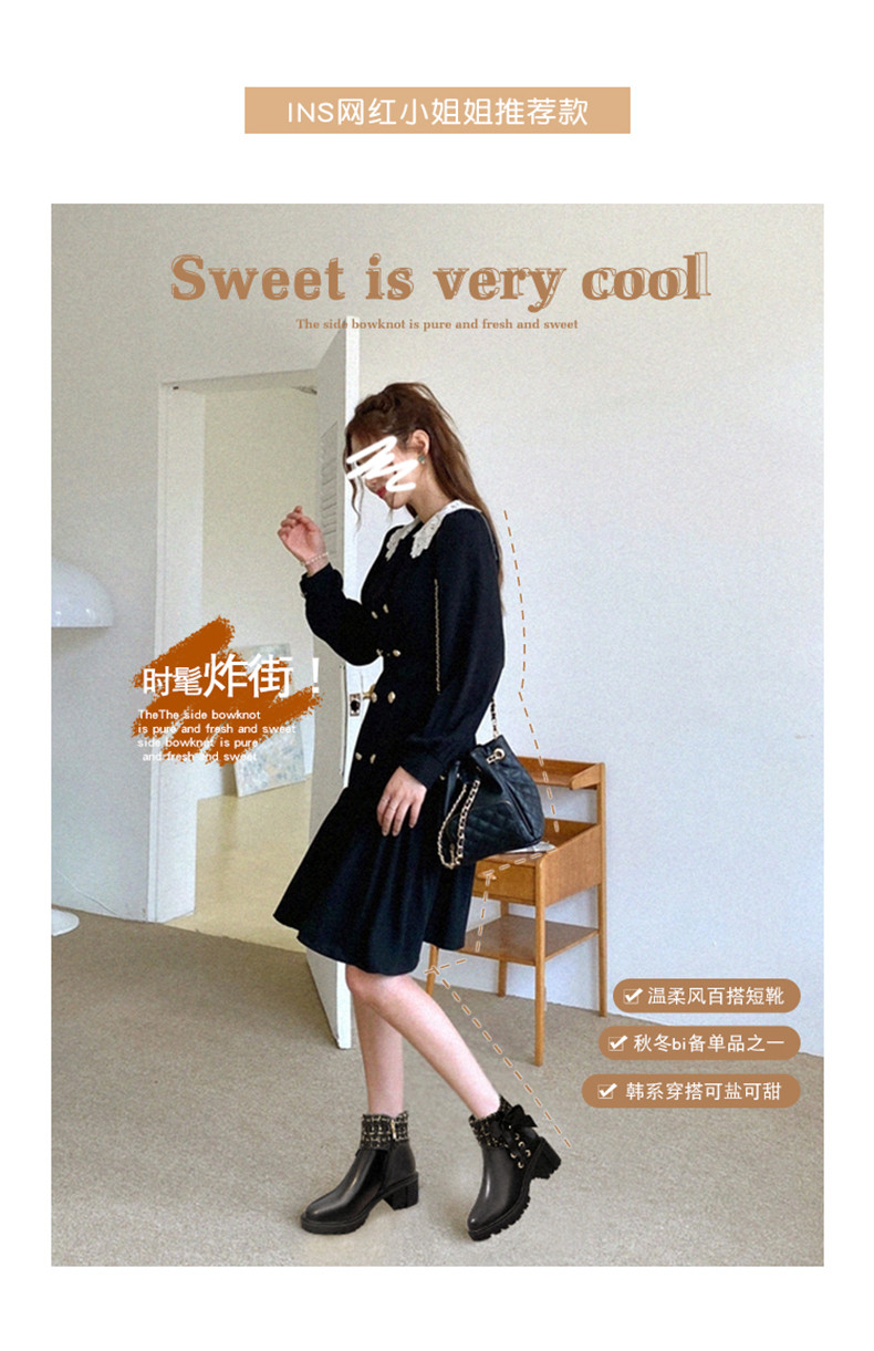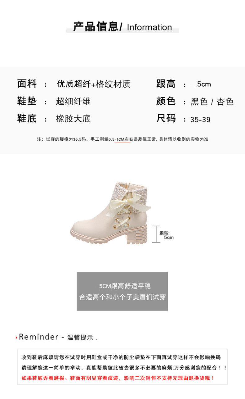 小香風靴子女2025年秋冬新款百搭瘦瘦靴短靴粗跟馬丁靴女高跟單靴