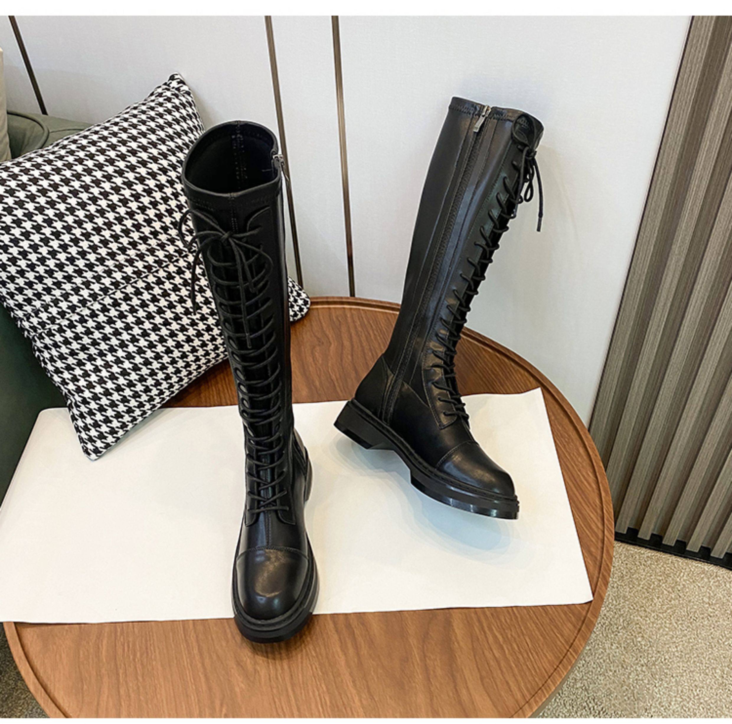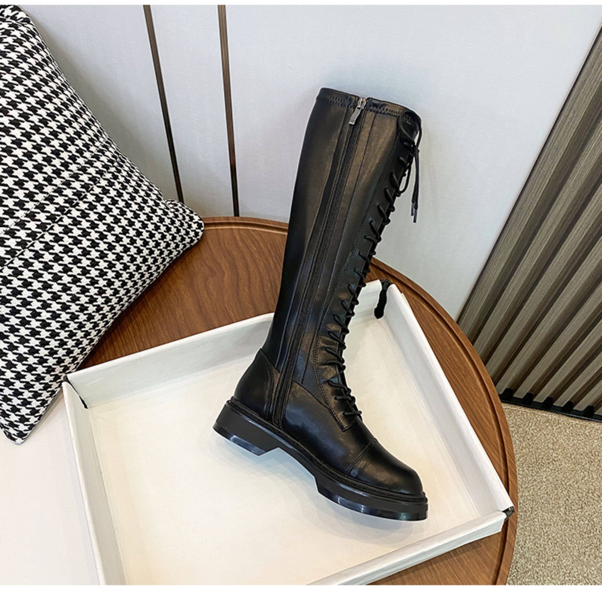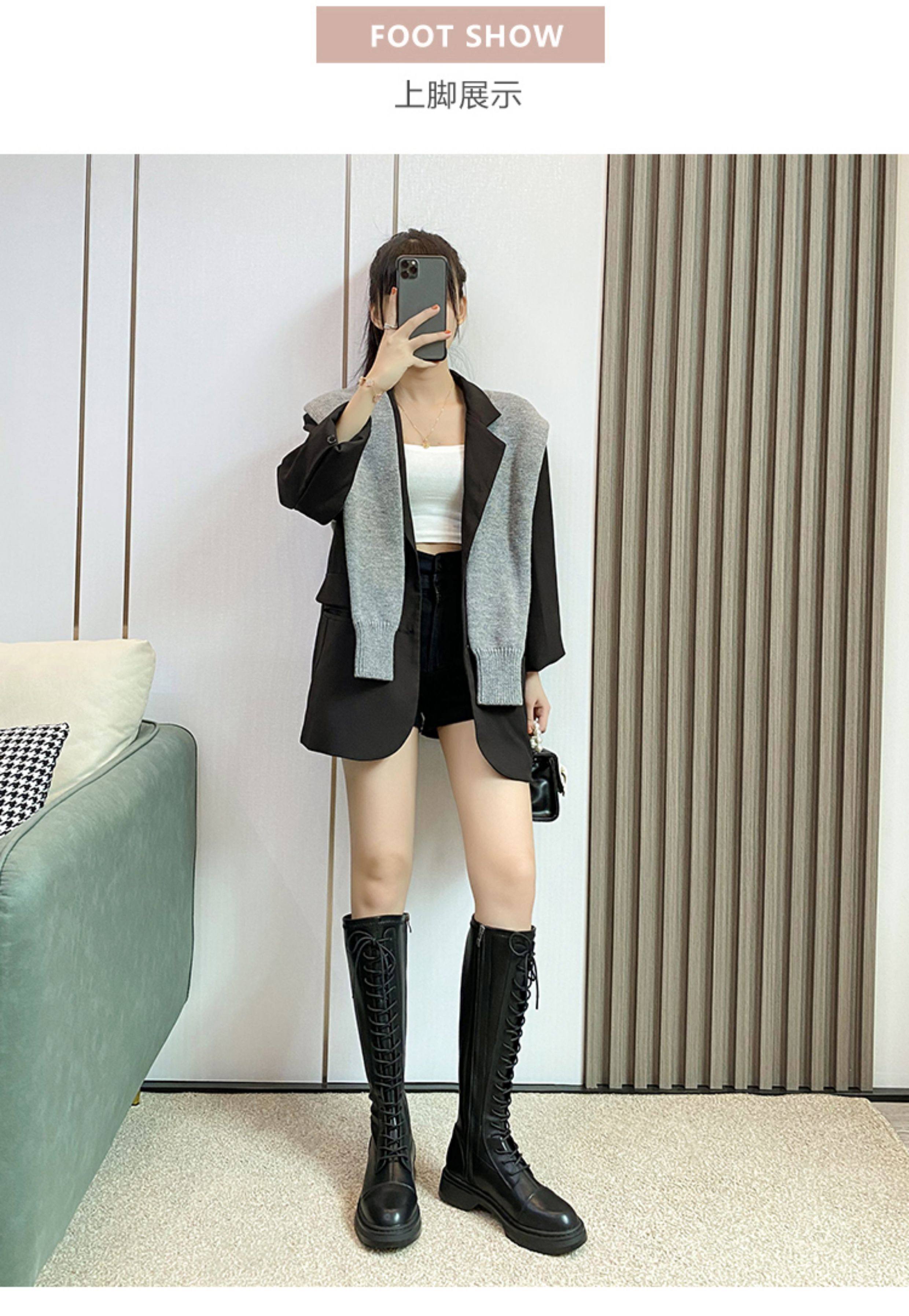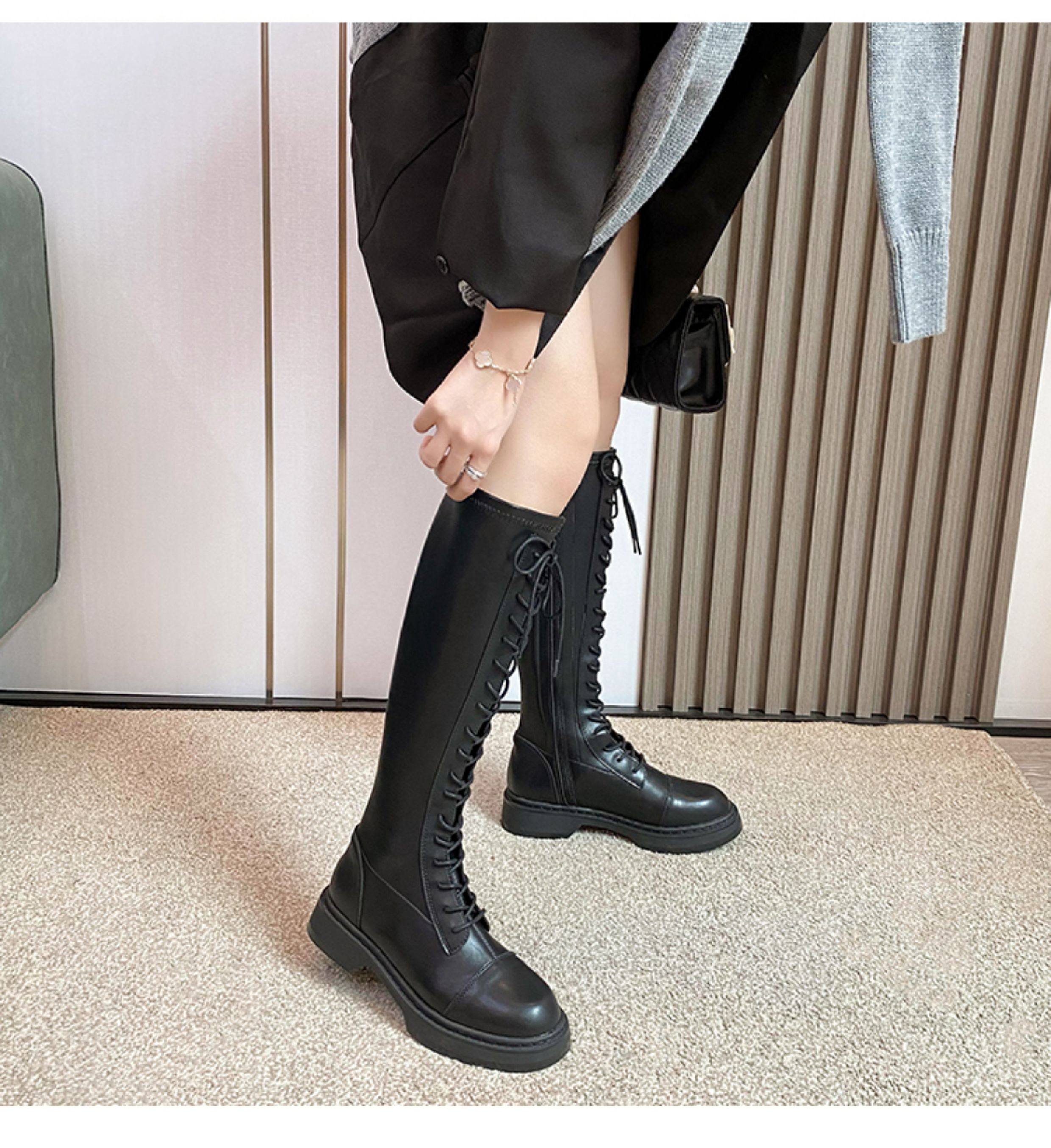 胖mm粗腿長筒靴女大筒圍巨好看2025秋冬新款爆款系帶高筒騎士靴子