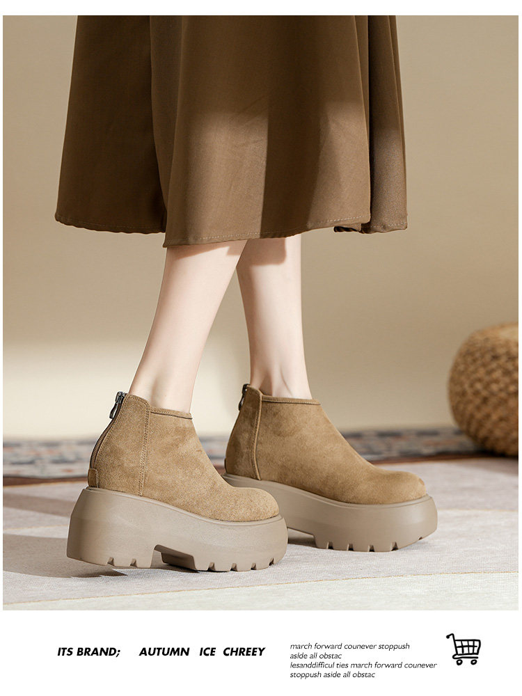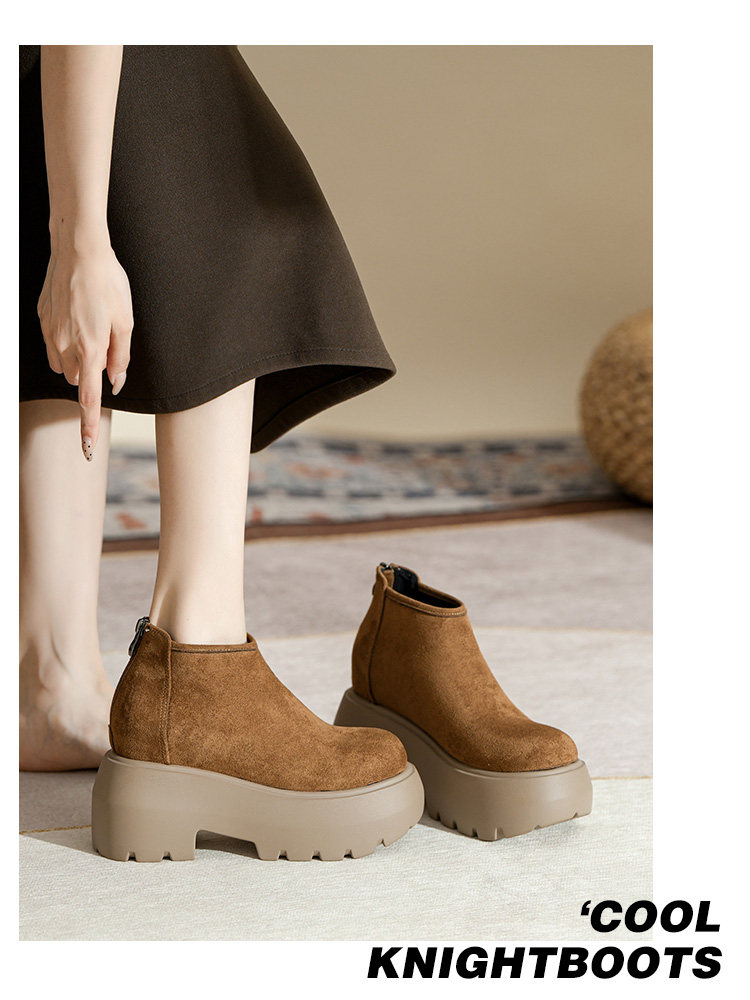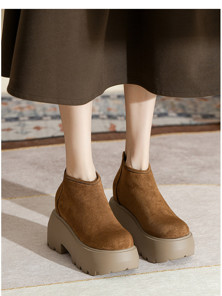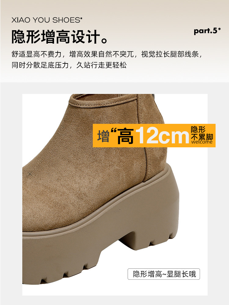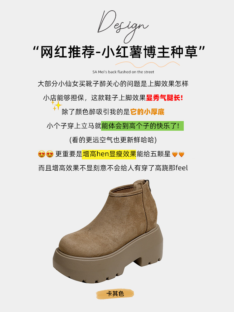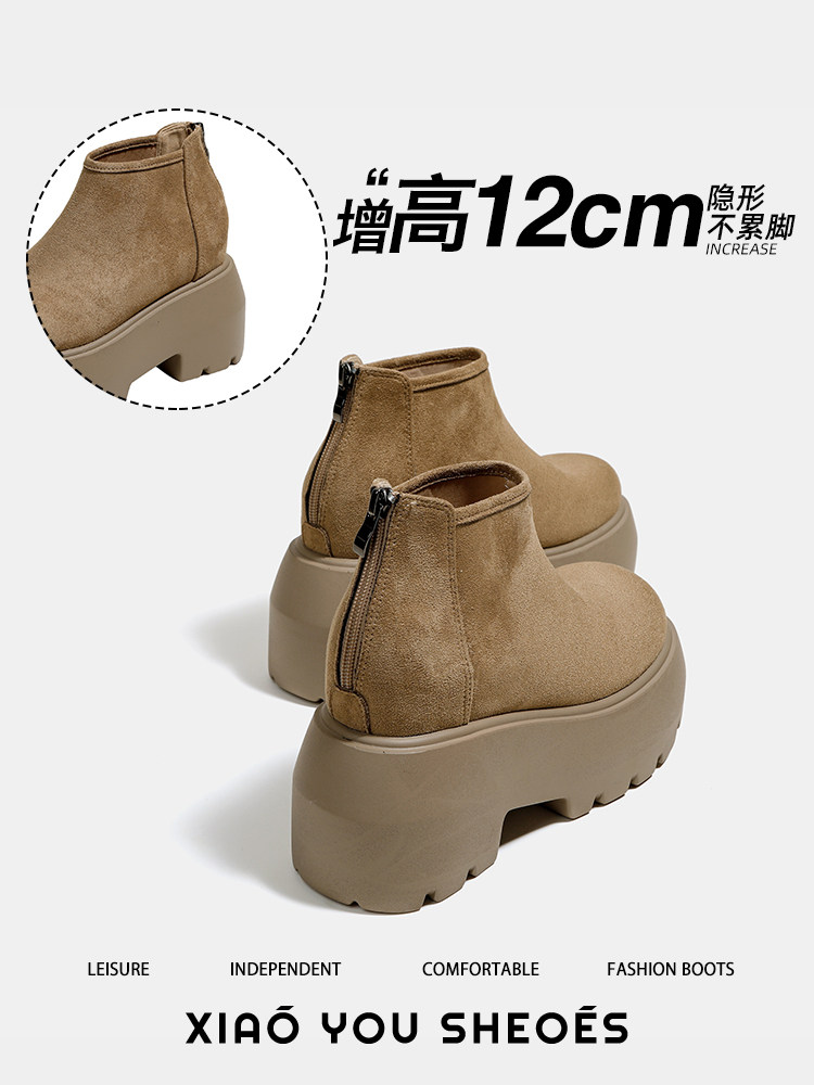 時尚12CM內增高粗跟馬丁靴女瘦瘦靴2025新款爆款復古休閒軟皮短靴