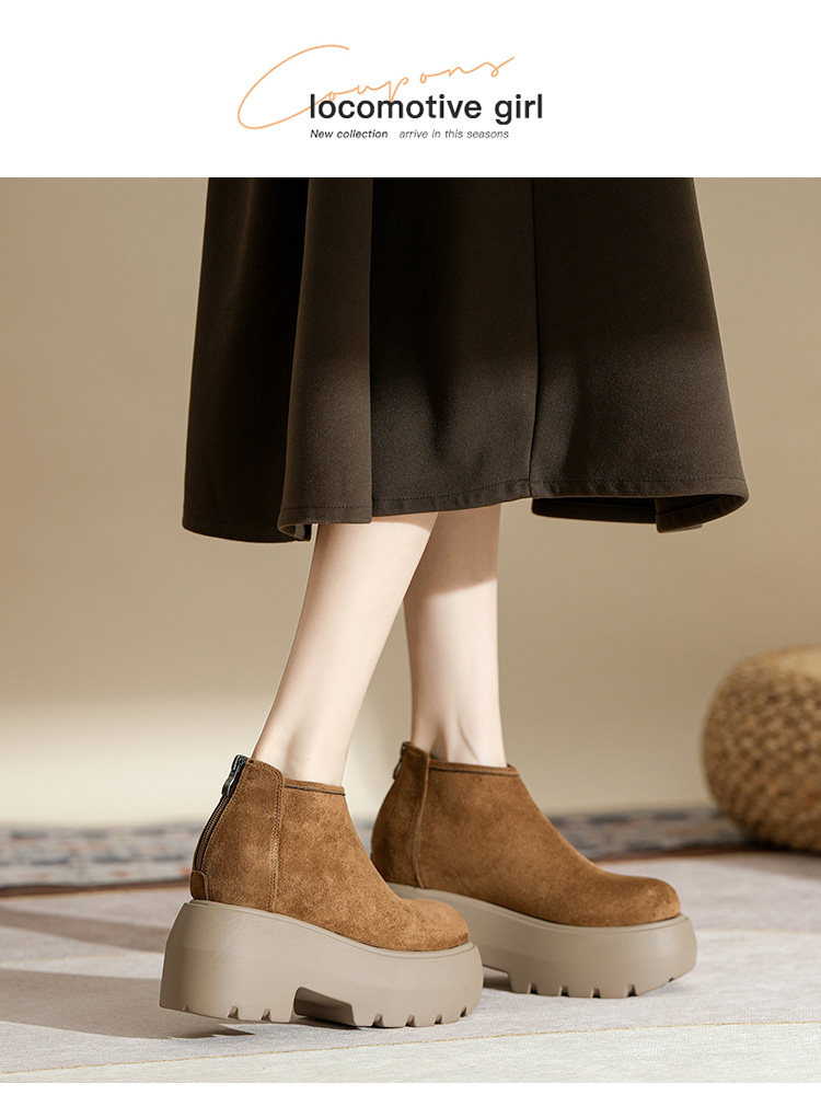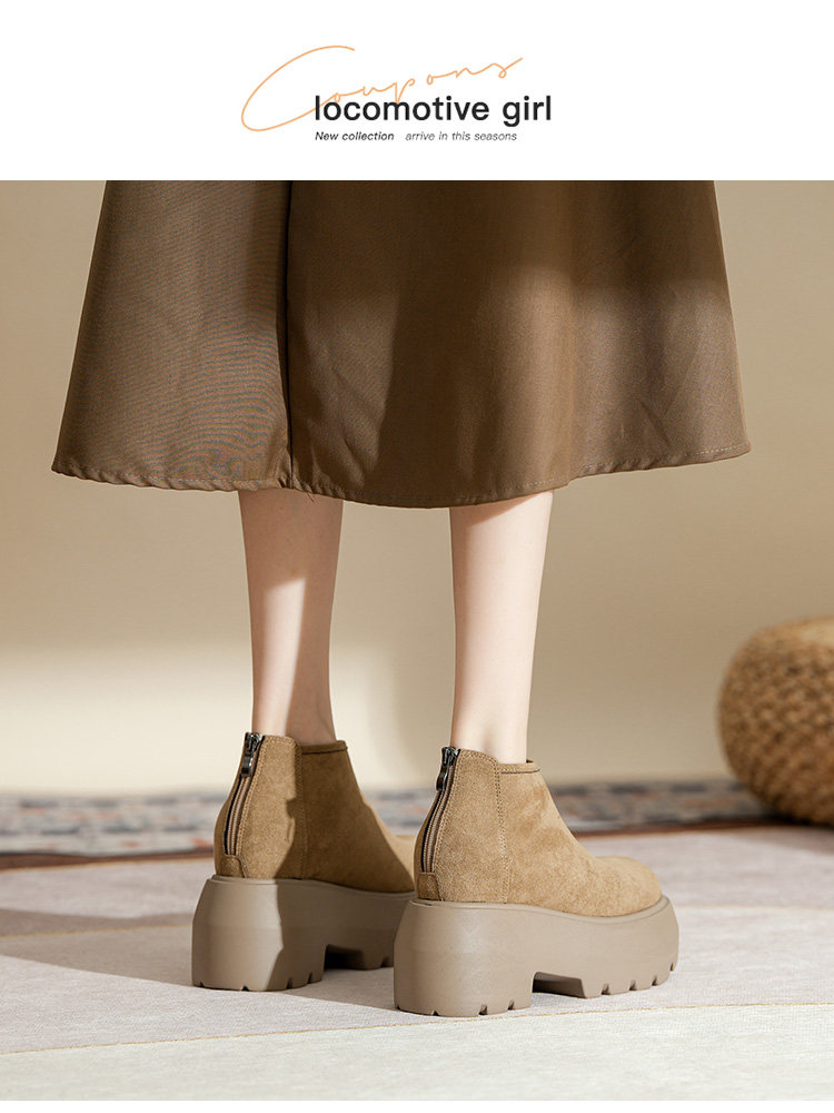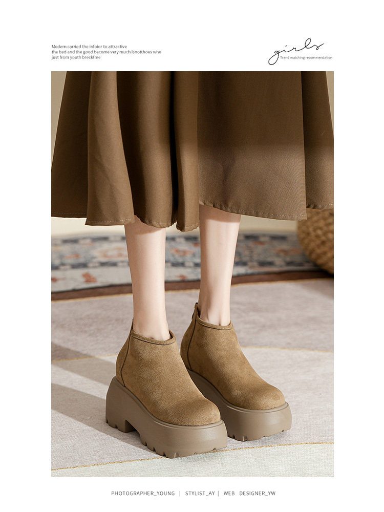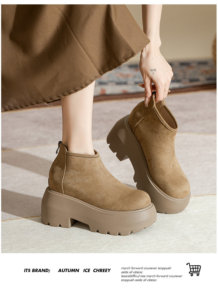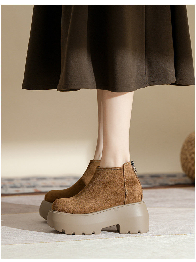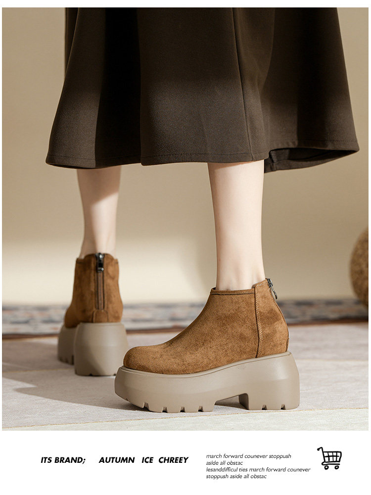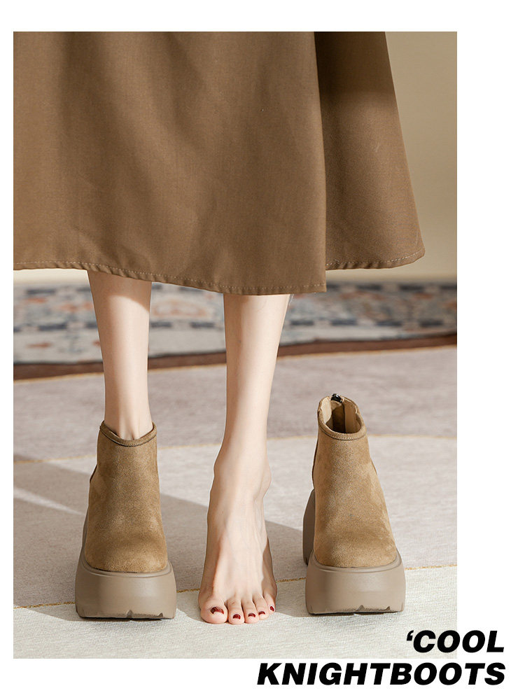 時尚12CM內增高粗跟馬丁靴女瘦瘦靴2025新款爆款復古休閒軟皮短靴