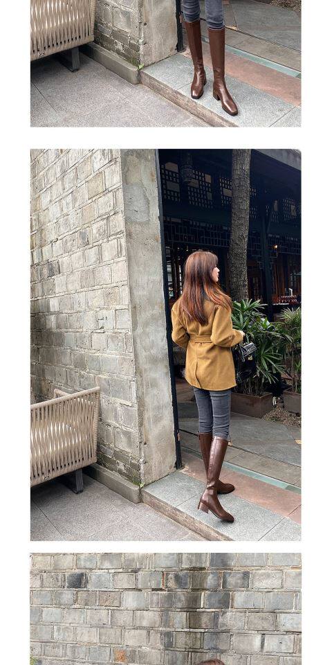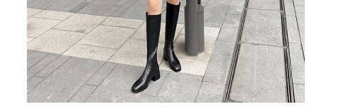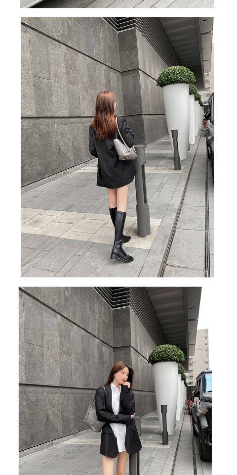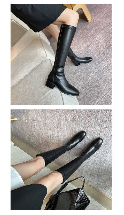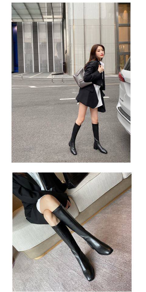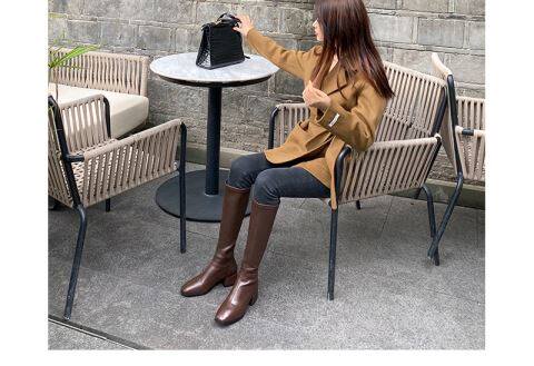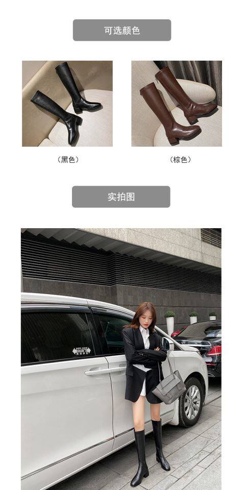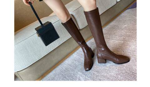 2025年春秋新款騎士靴女跟中筒彈力靴顯瘦長靴棕色百搭長筒靴子