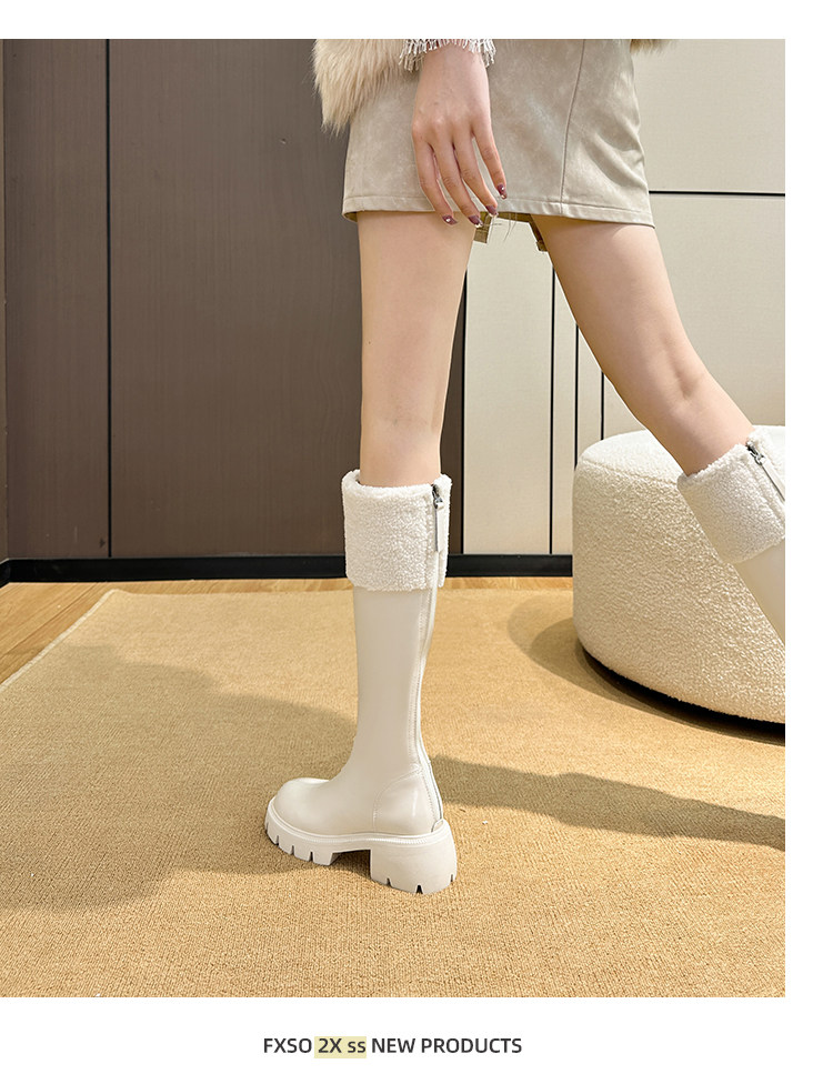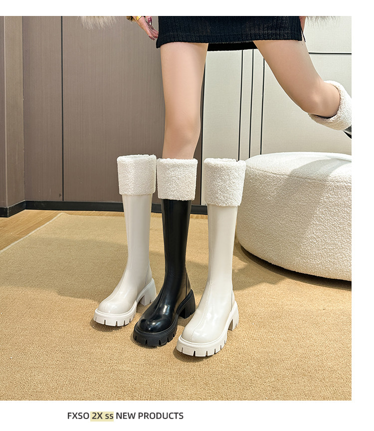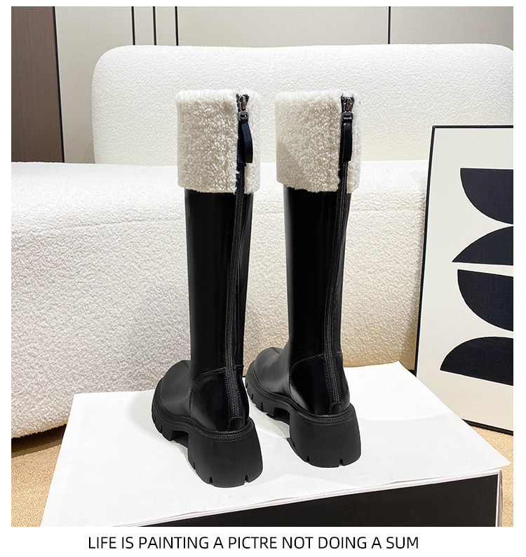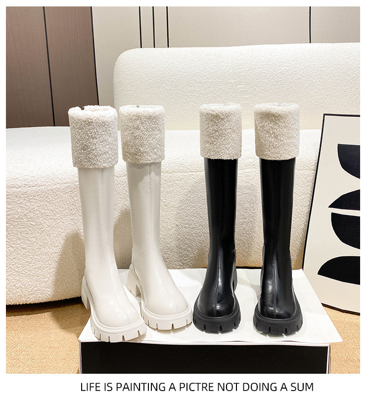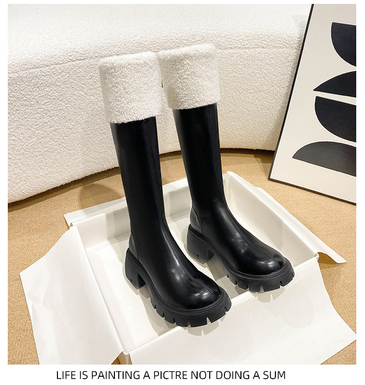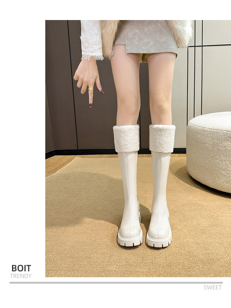 小個子靴子女顯高2025新款秋冬加絨高跟羊羔毛高筒靴內增高長筒靴