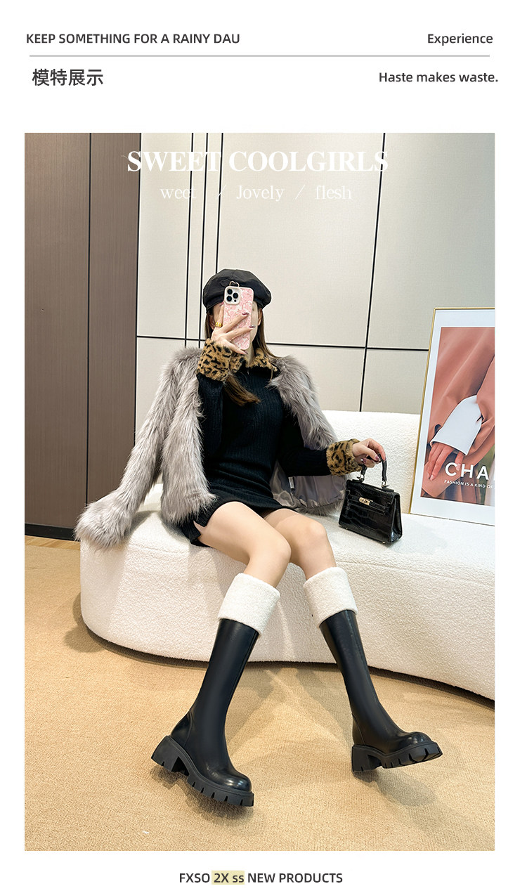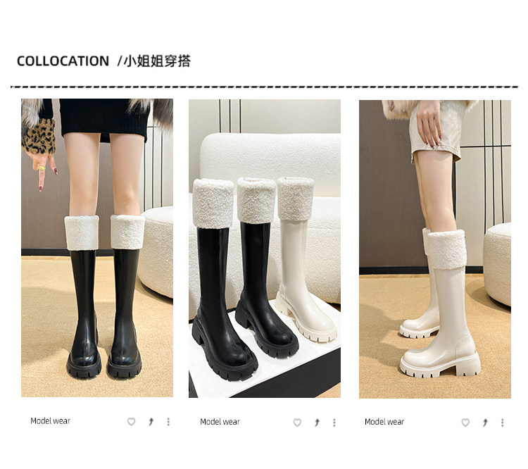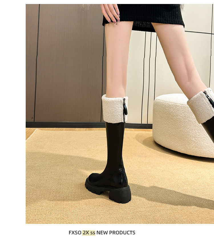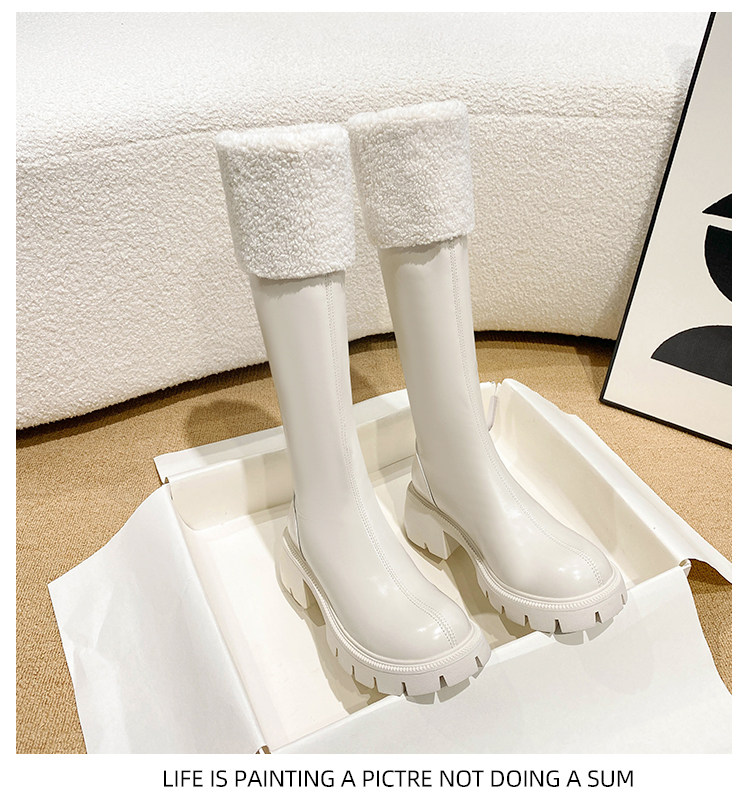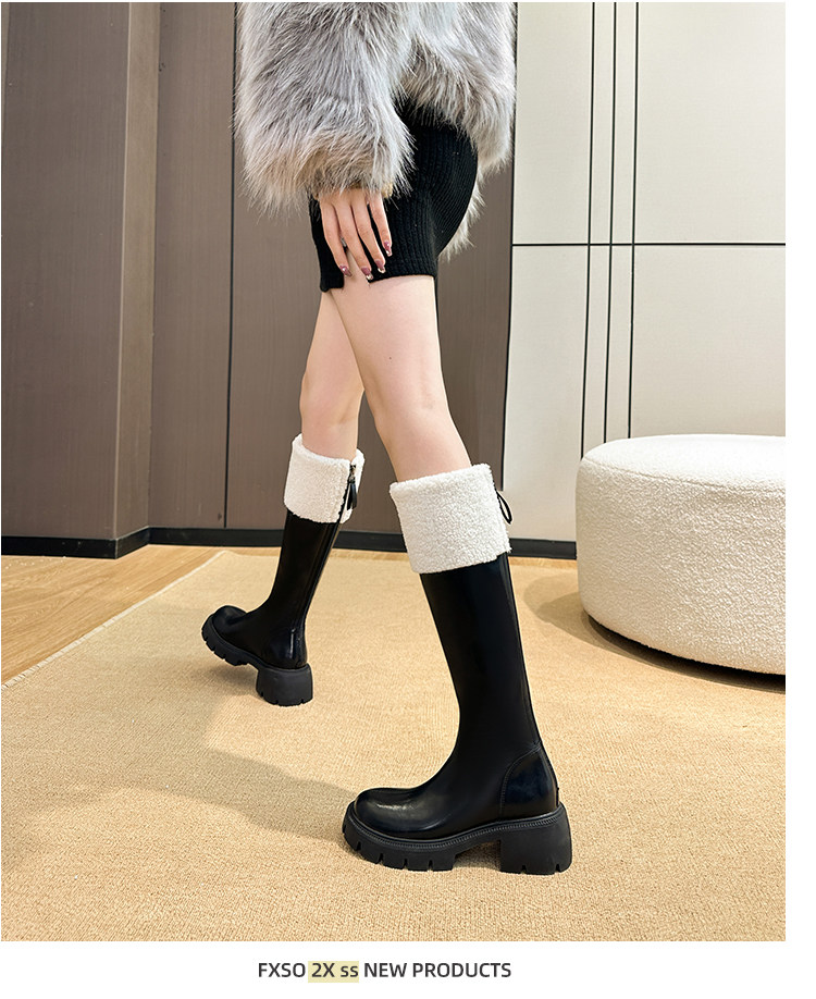 小個子靴子女顯高2025新款秋冬加絨高跟羊羔毛高筒靴內增高長筒靴