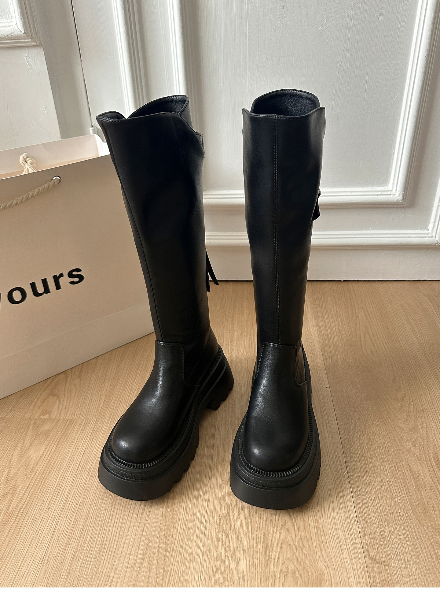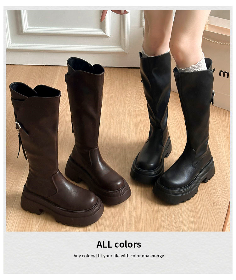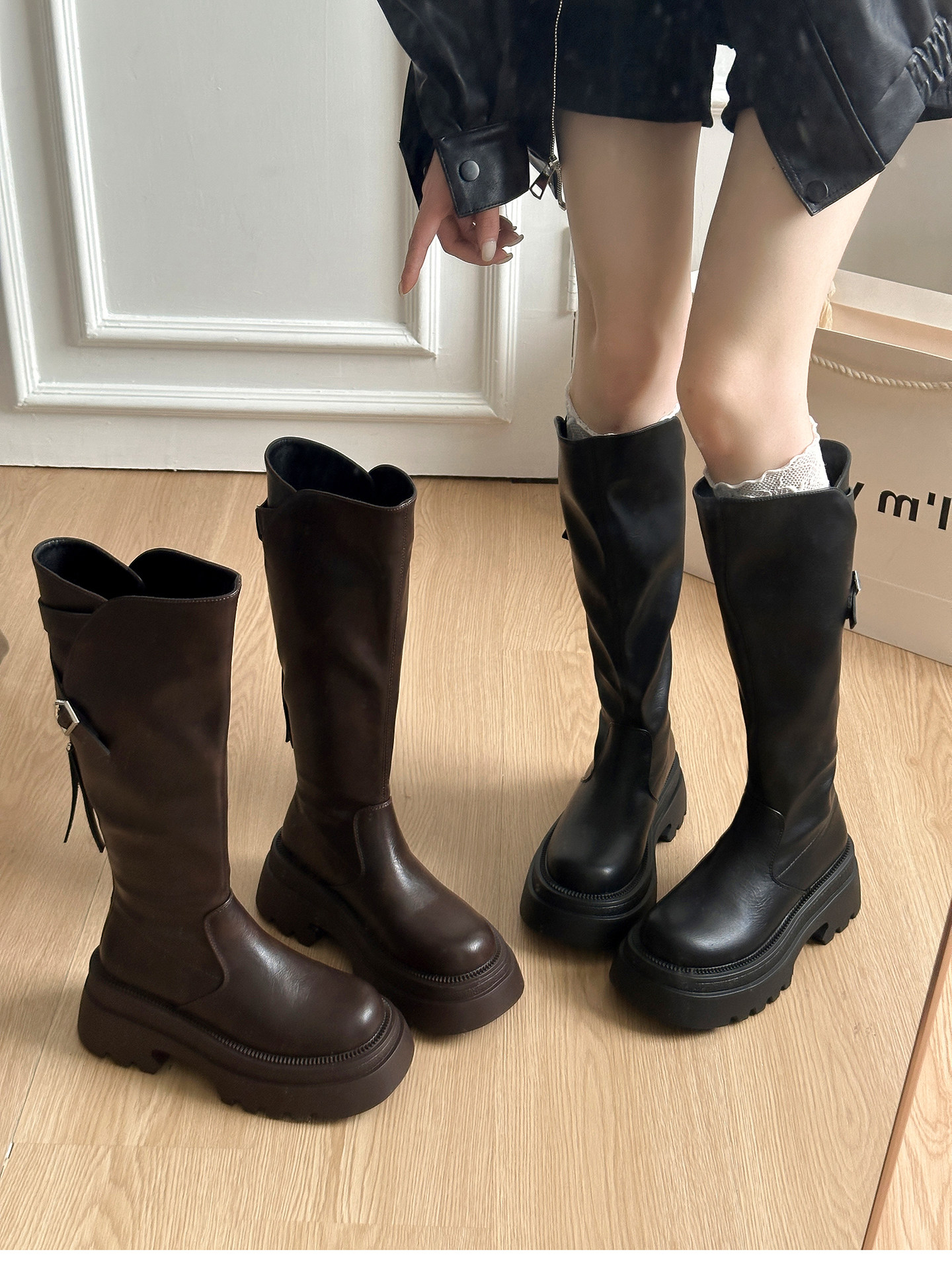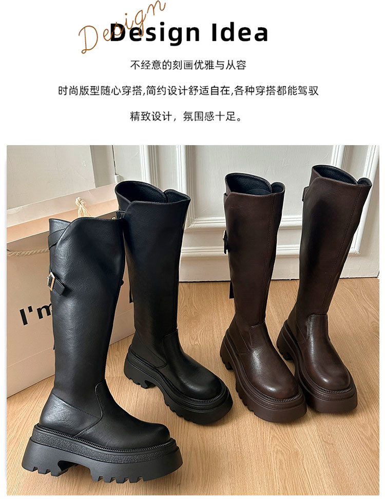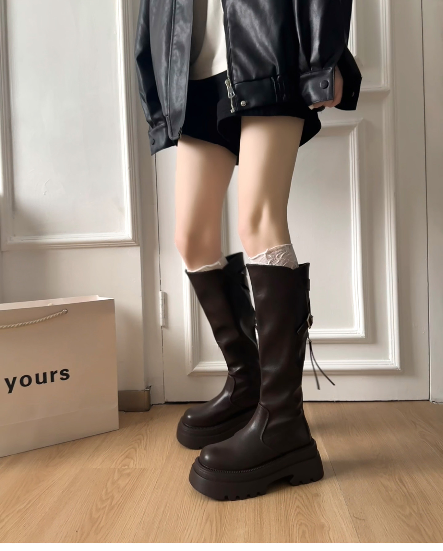 棕色小個子厚底長筒靴女2026年新款春秋顯瘦高筒騎士靴不過膝長靴