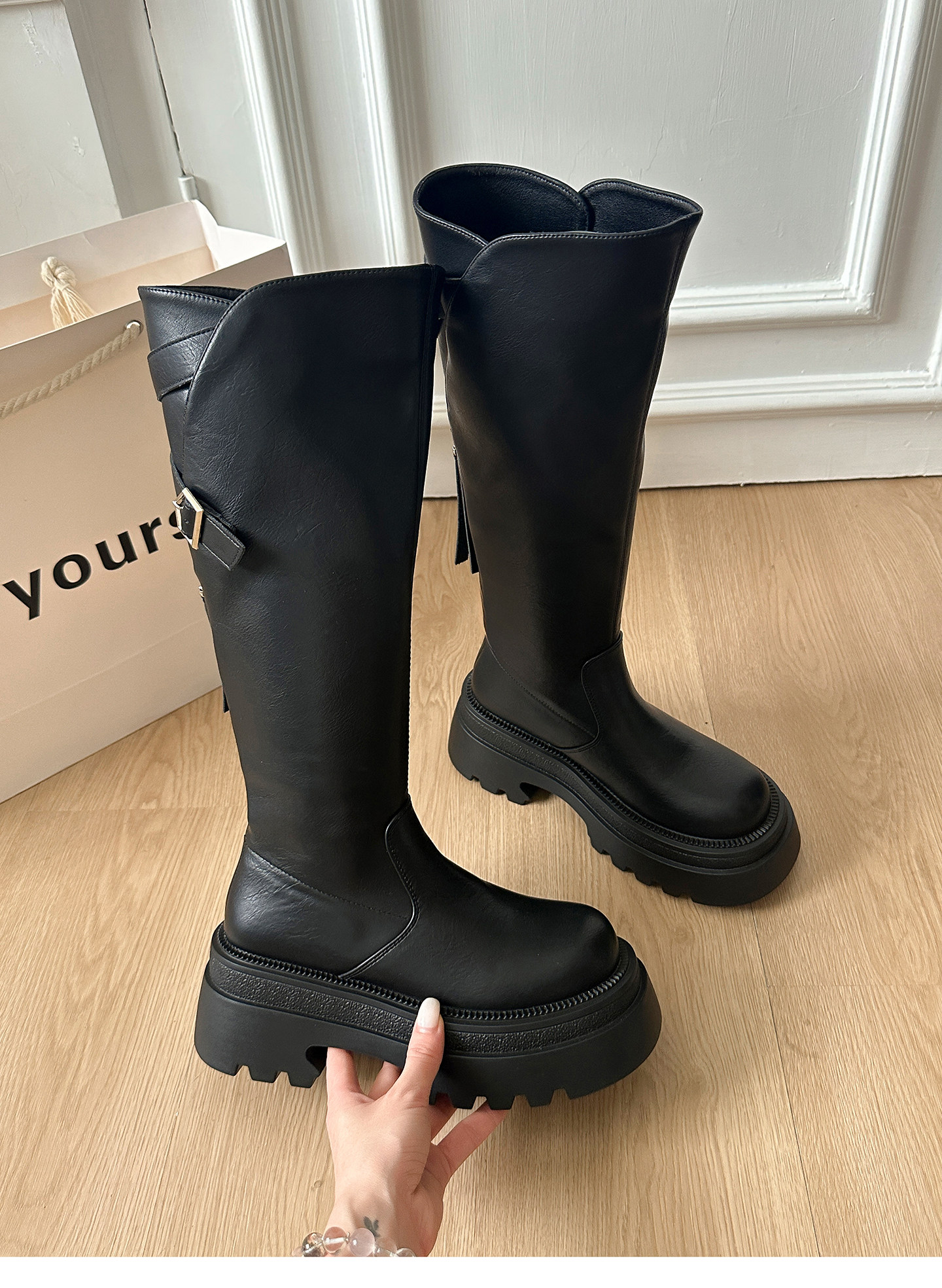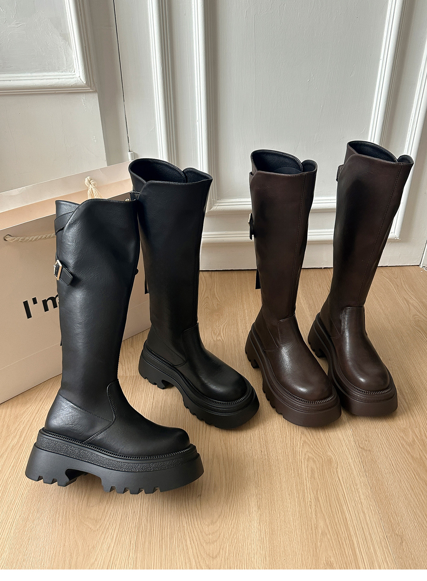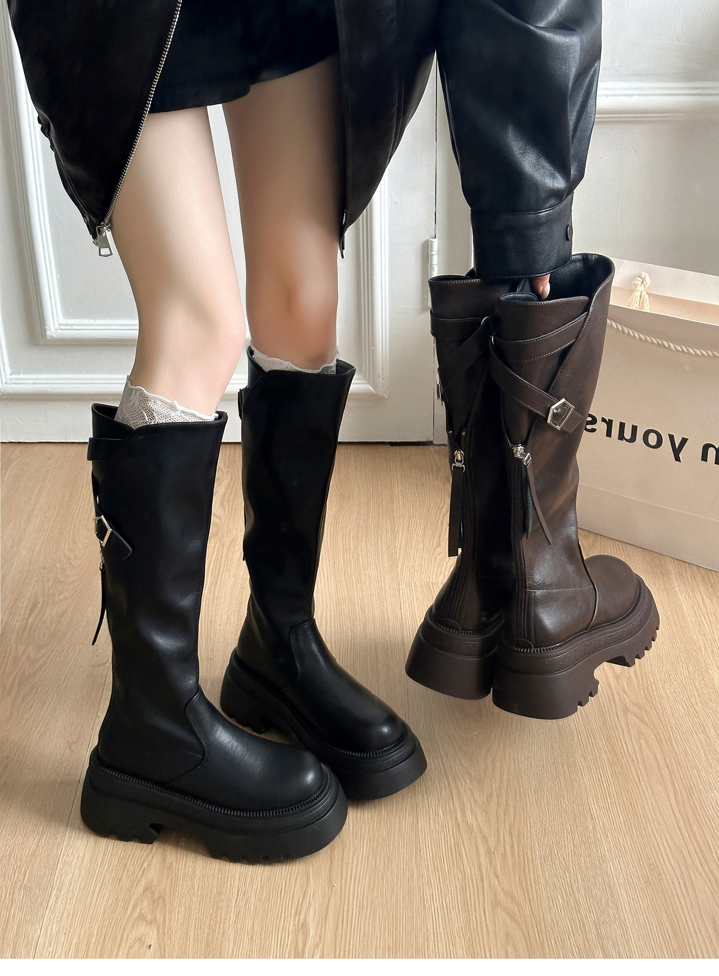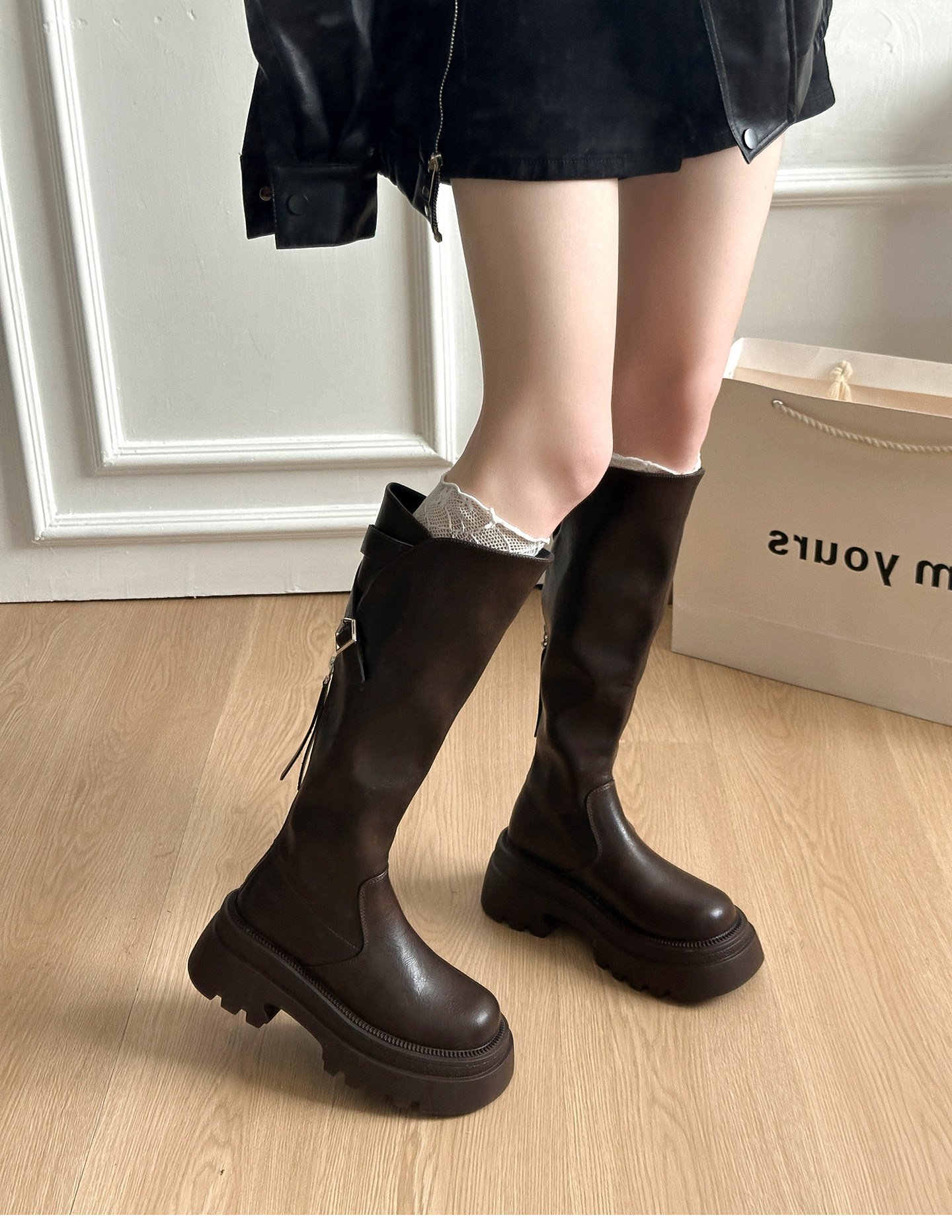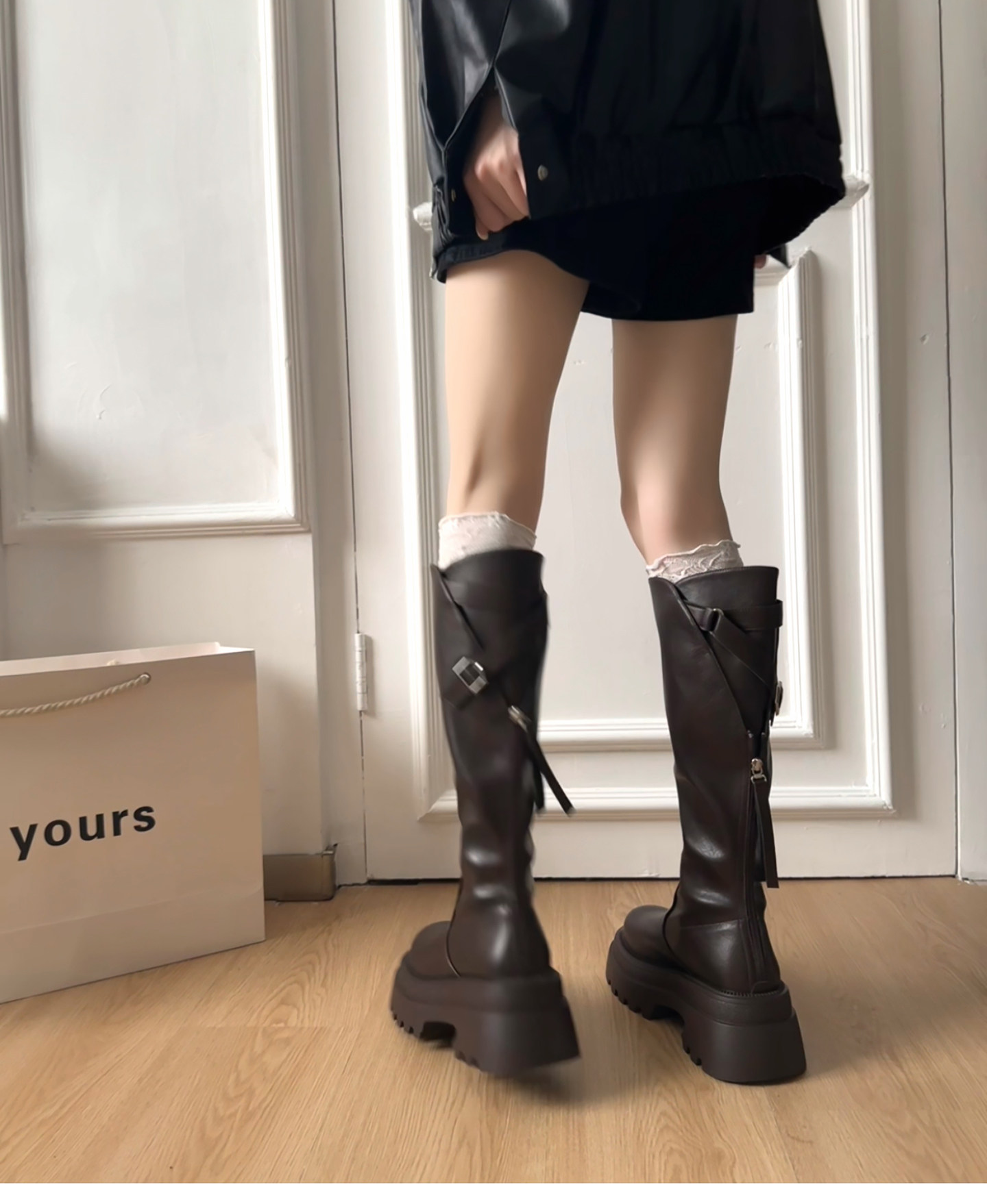 棕色小個子厚底長筒靴女2026年新款春秋顯瘦高筒騎士靴不過膝長靴