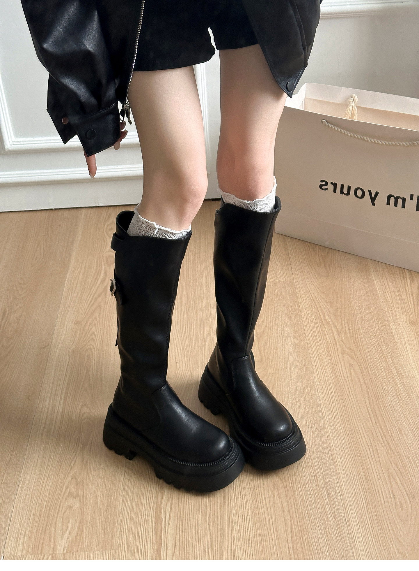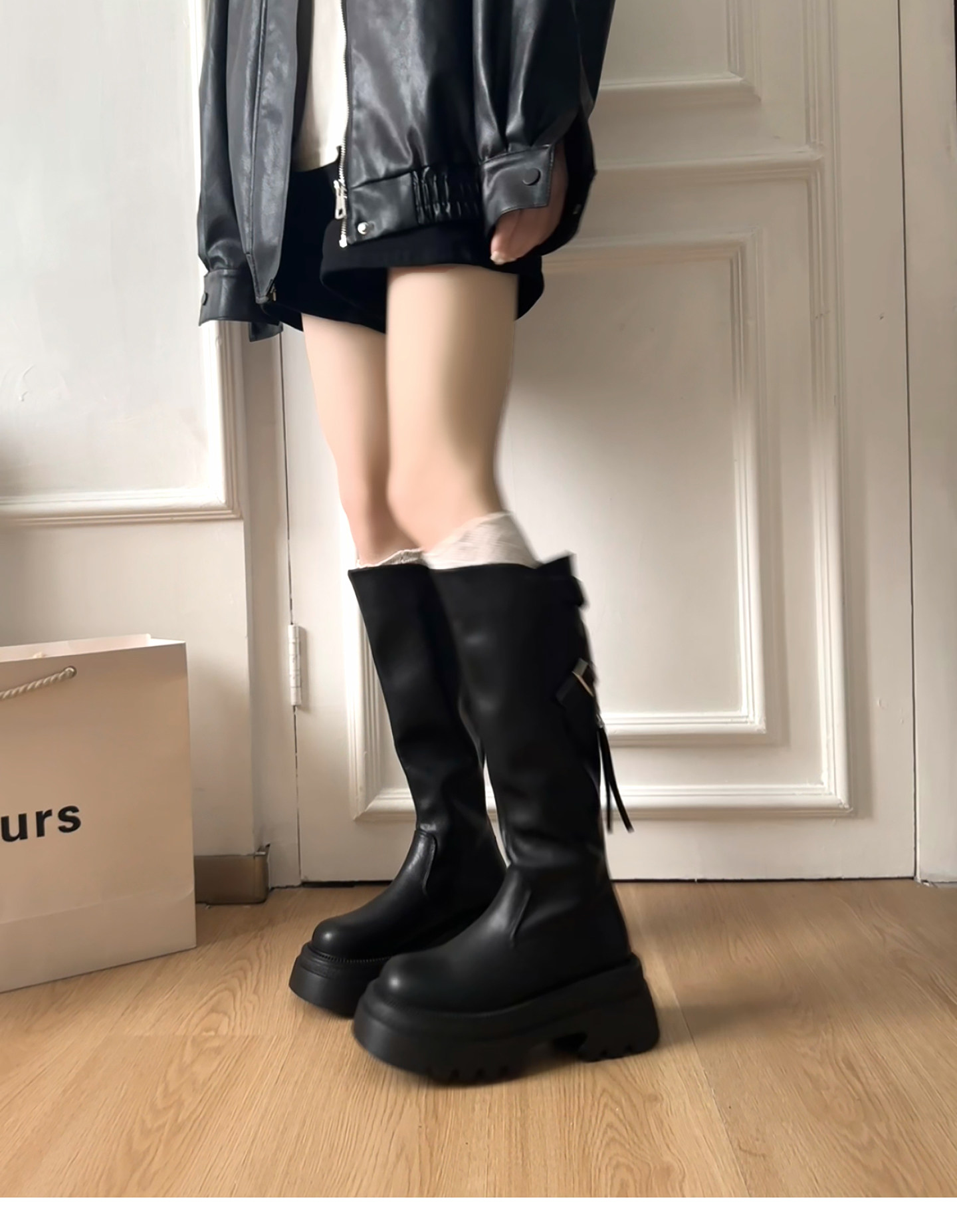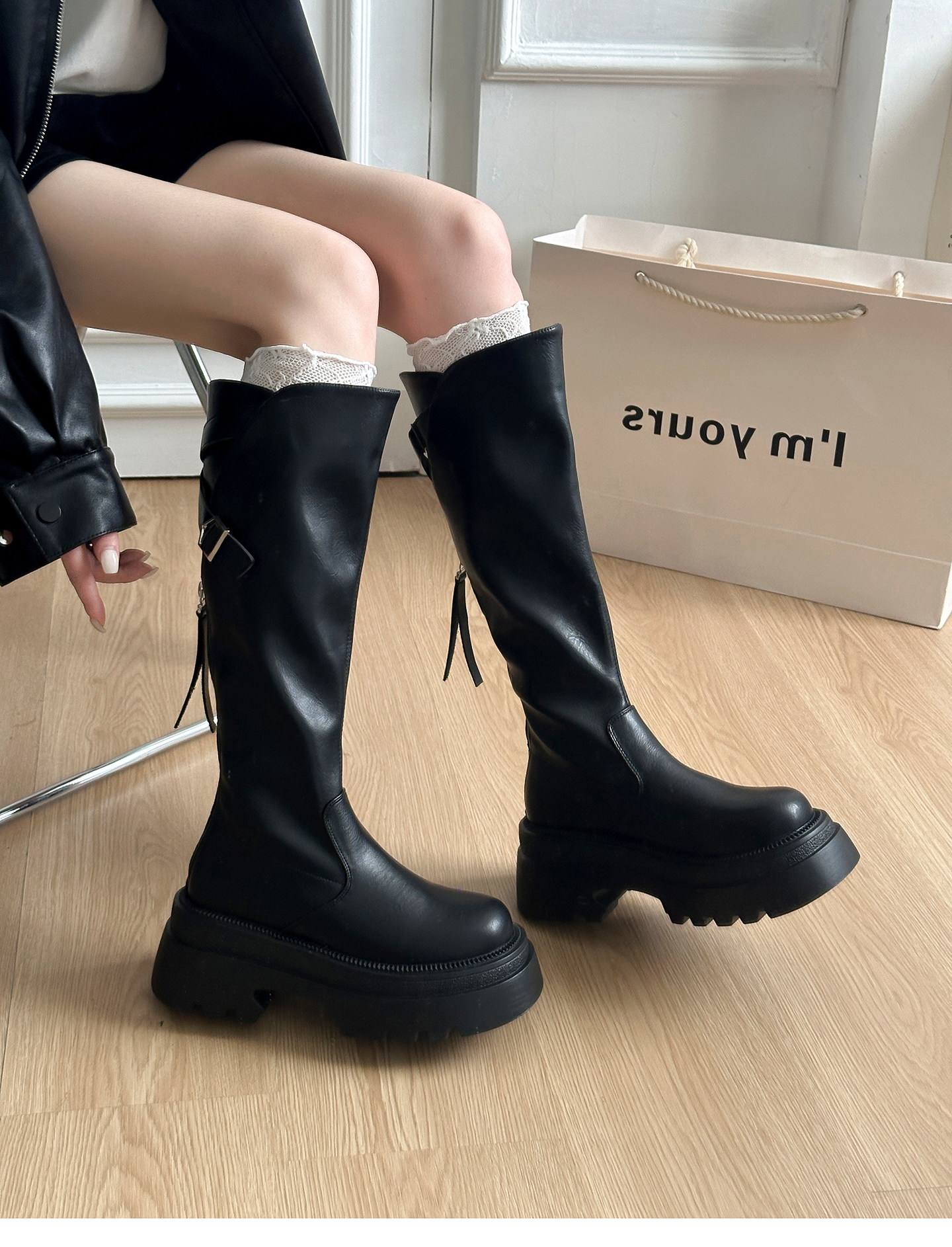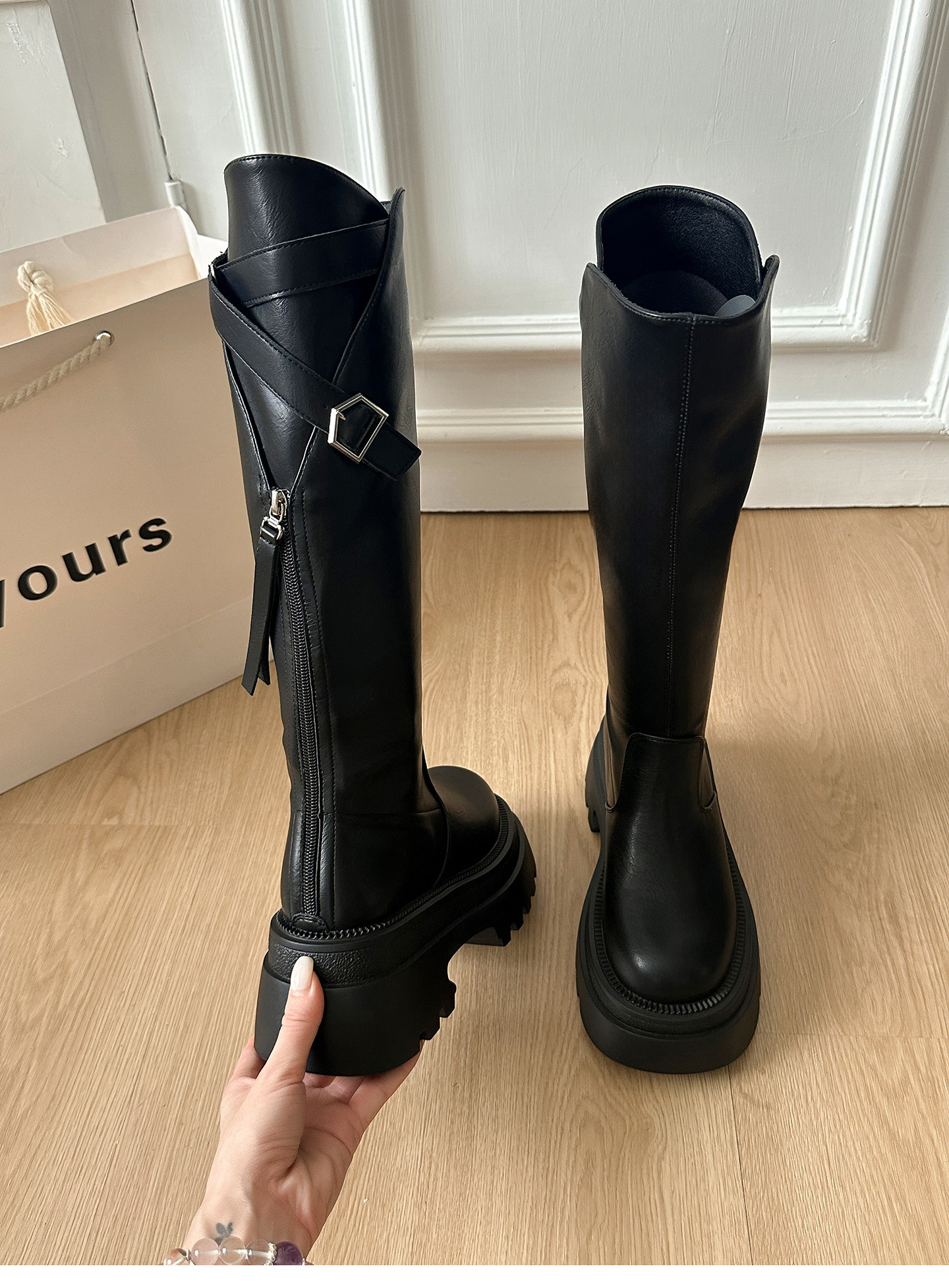 棕色小個子厚底長筒靴女2026年新款春秋顯瘦高筒騎士靴不過膝長靴