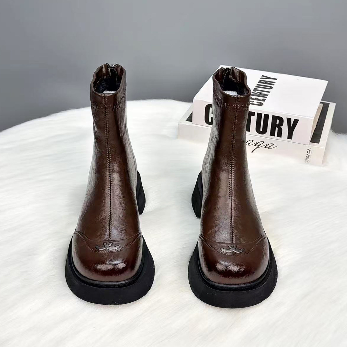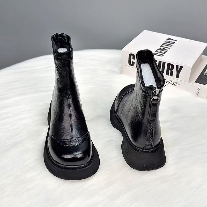 真皮厚底馬丁靴女2026秋冬新款加絨加厚短靴切爾西菸筒靴女瘦瘦靴