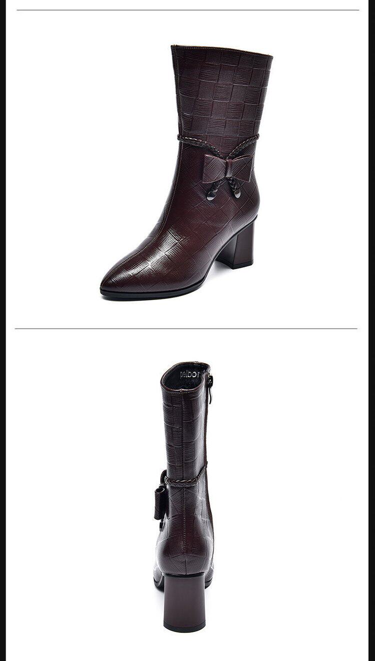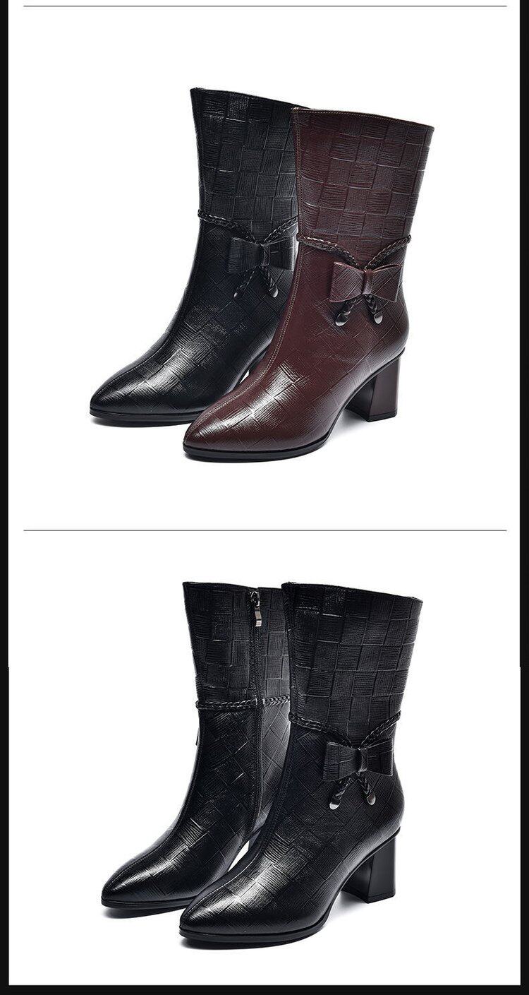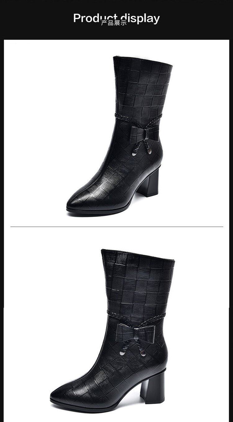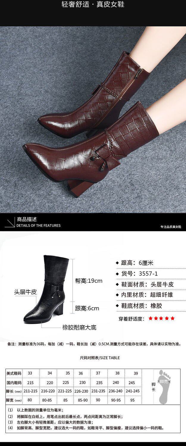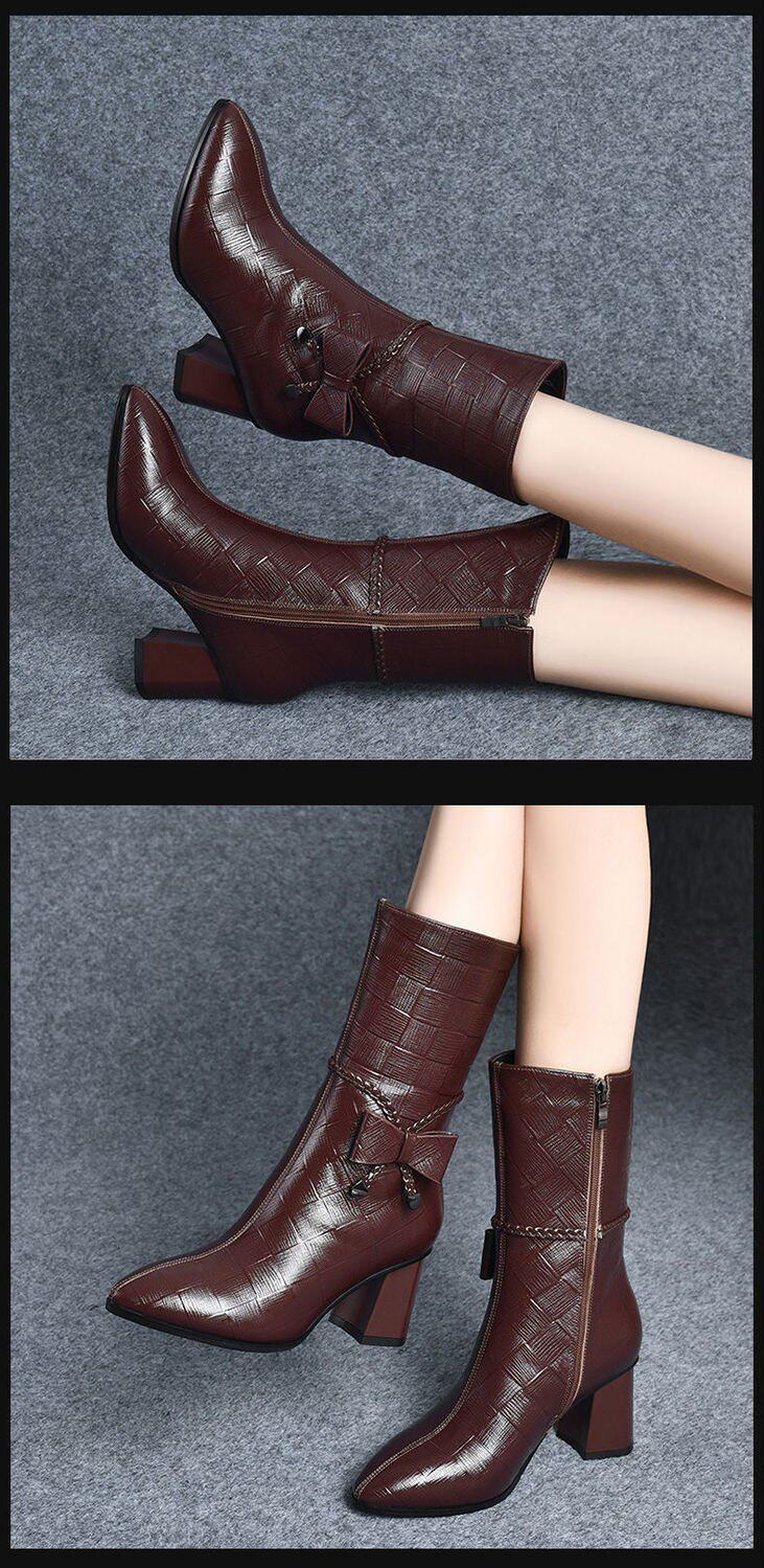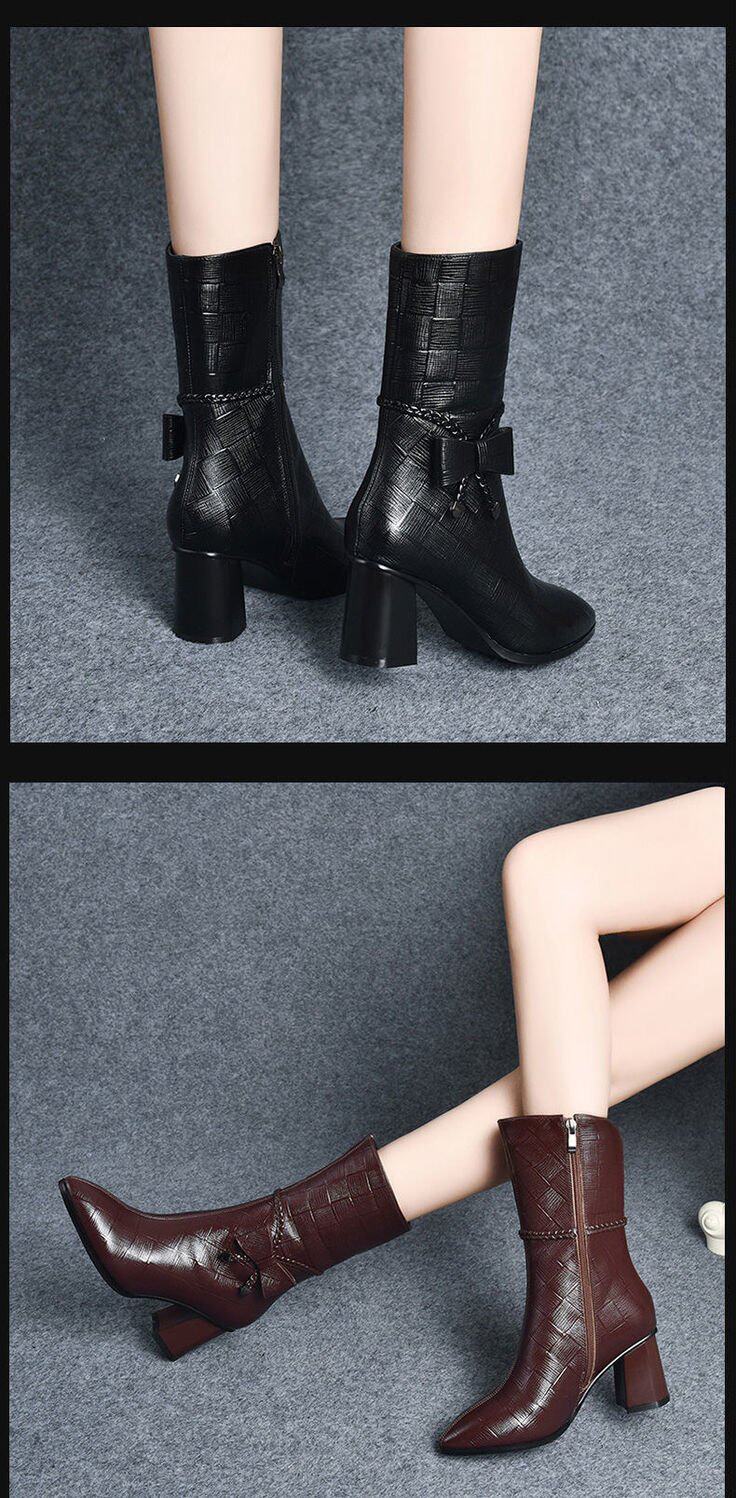 軟皮馬丁靴高跟鞋女2026秋冬新款時尚尖頭拉鍊女靴粗跟媽媽短靴女