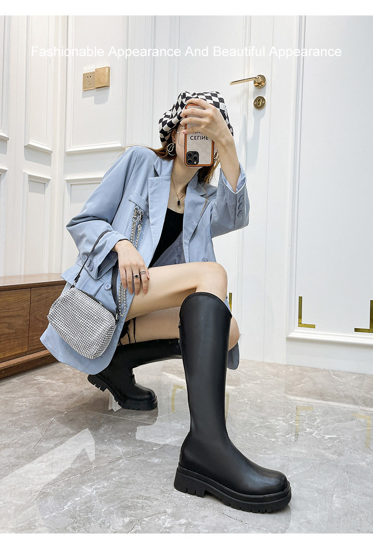150cm小個子不過膝靴2024秋冬新款粗跟騎士靴小碼323334碼長筒靴