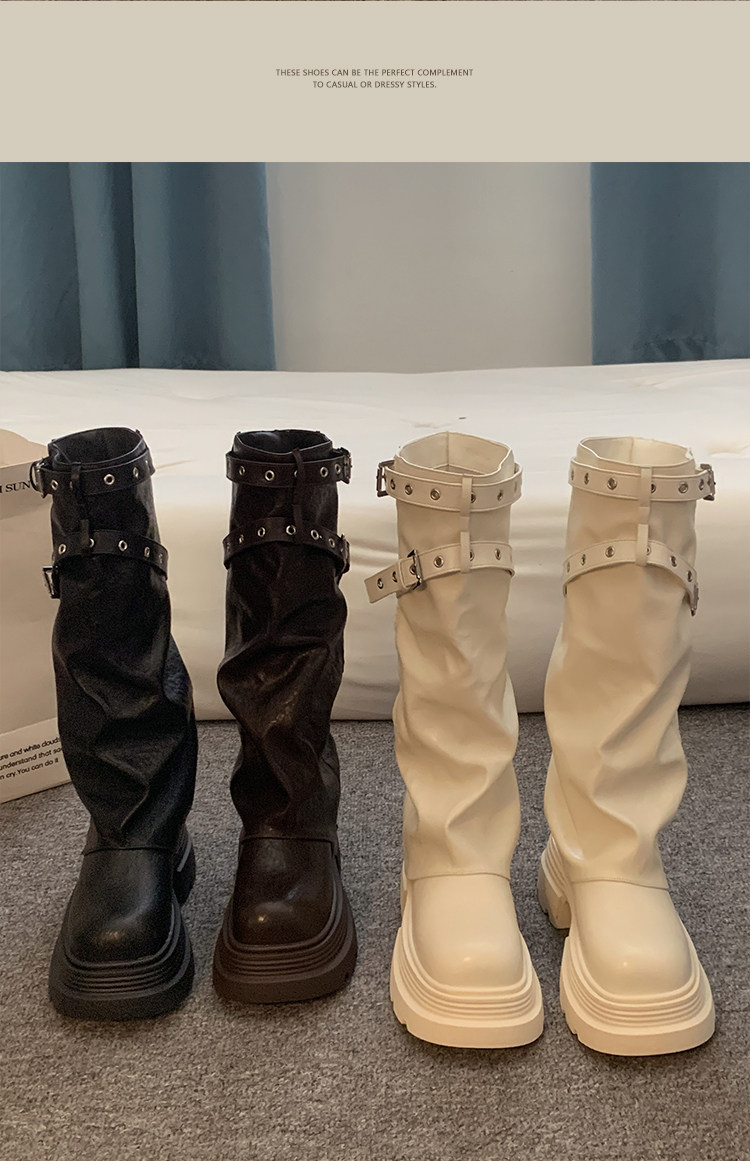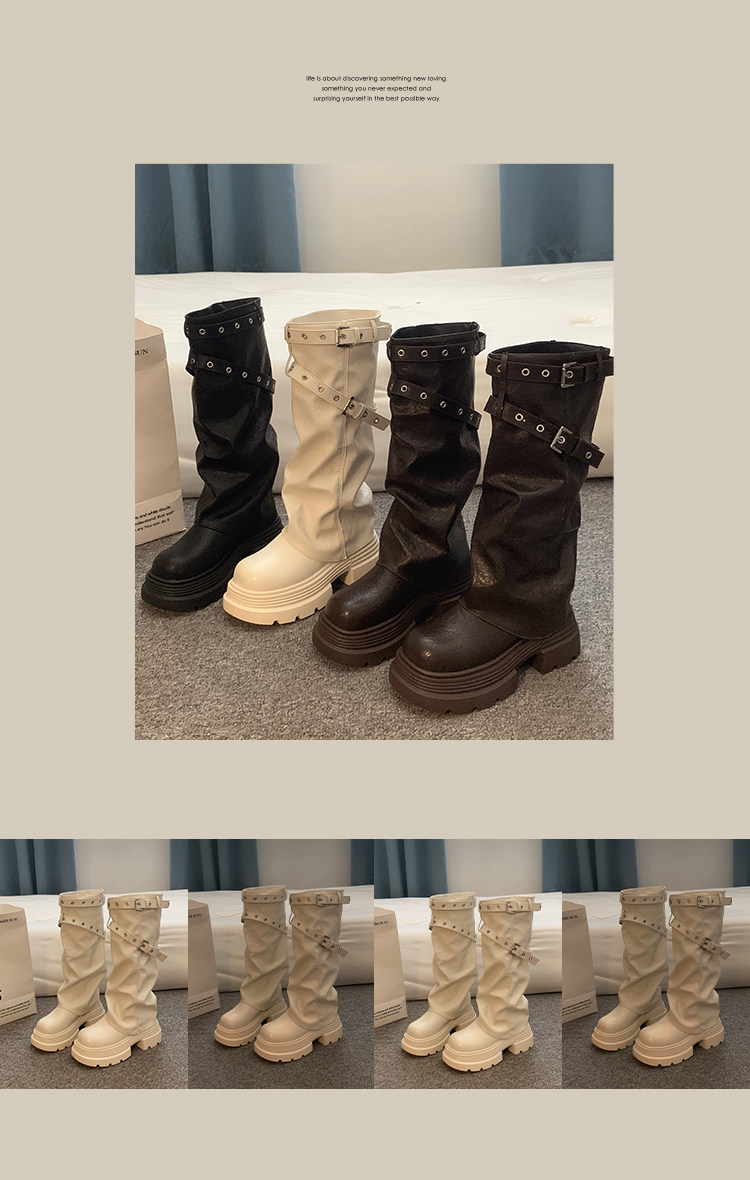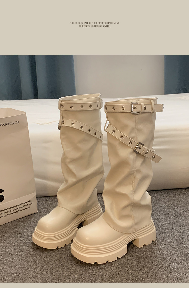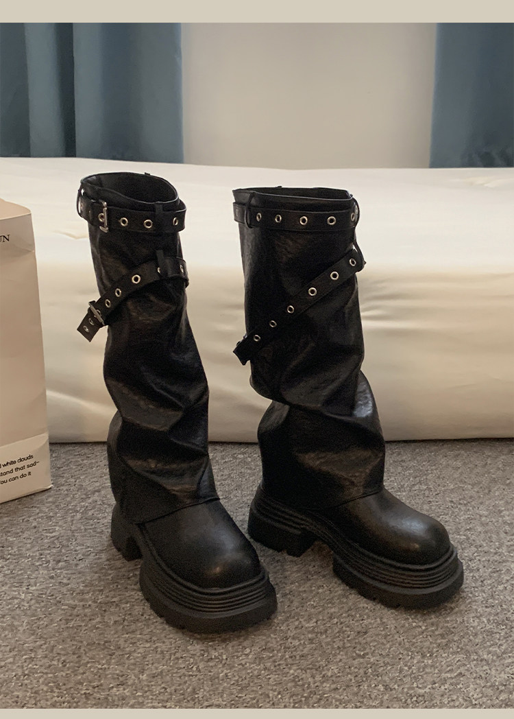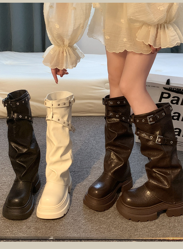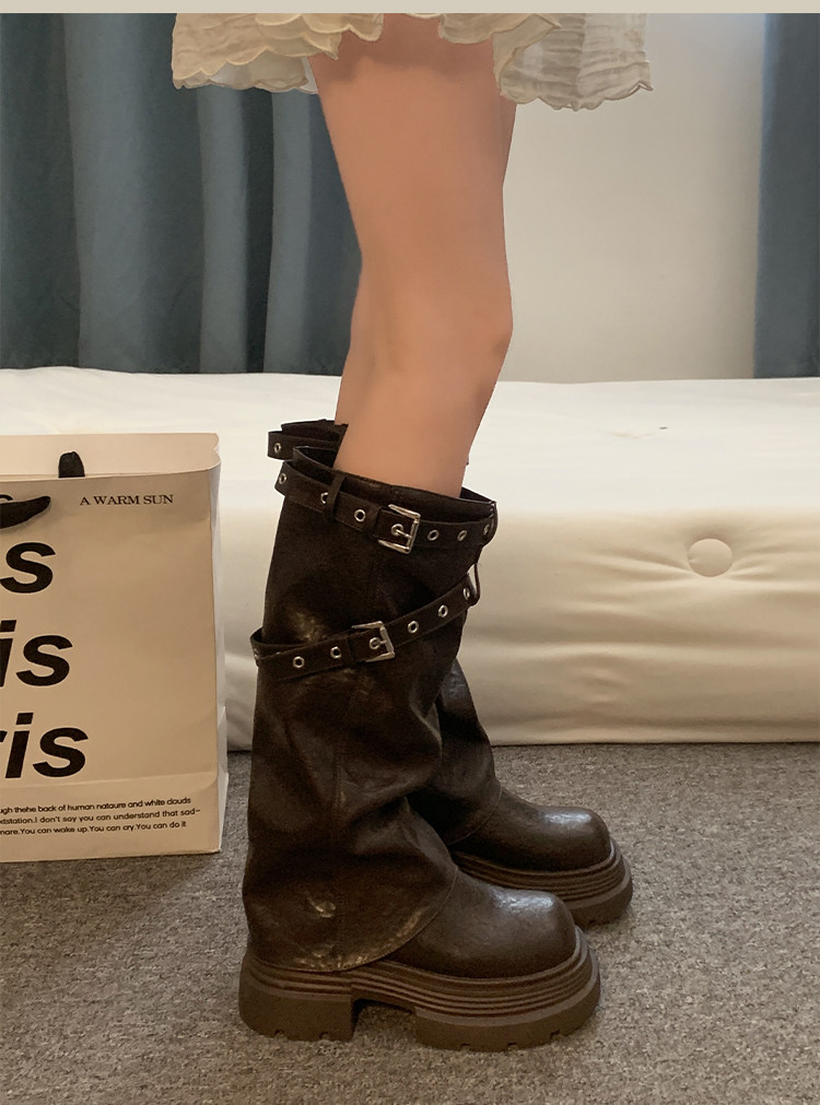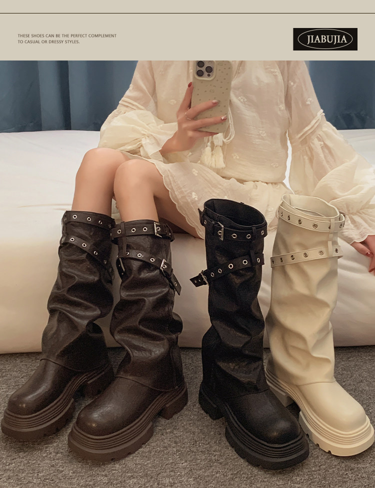 賈不假靴子女長筒靴2026新款春季復古超火粗跟騎士靴高級感褲琯靴