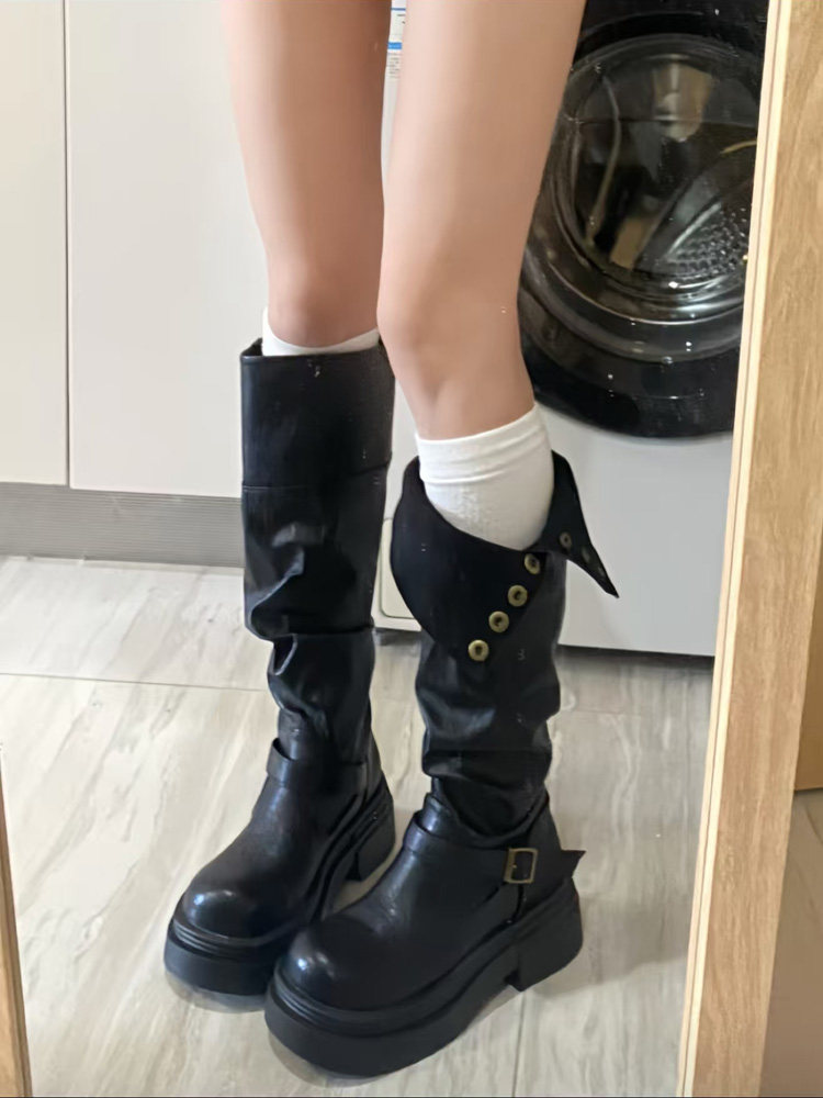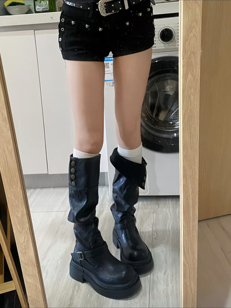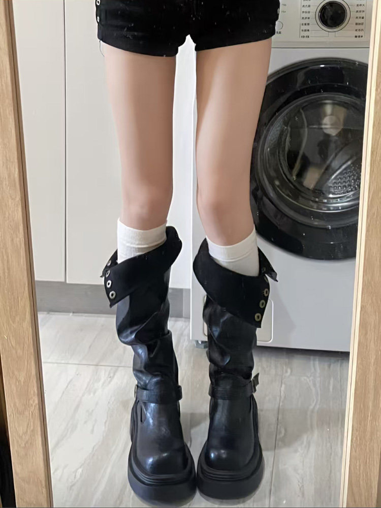 黑色高筒靴子夏季厚底長筒靴女2026新款顯瘦增高小個子粗腿騎士靴