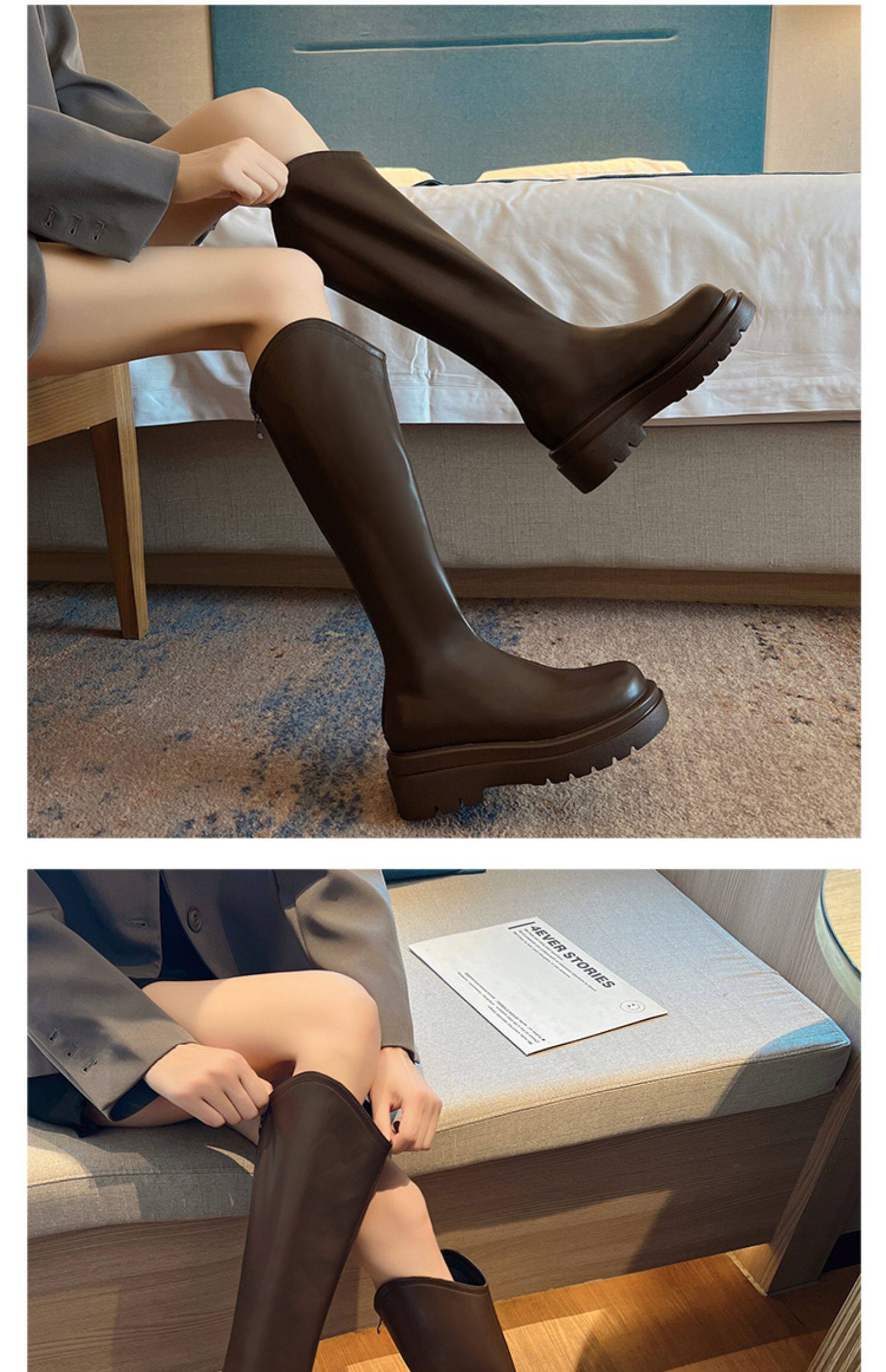 長筒靴女2026新款秋冬胖mm粗腿大碼大筒圍長靴加絨厚底高筒騎士靴