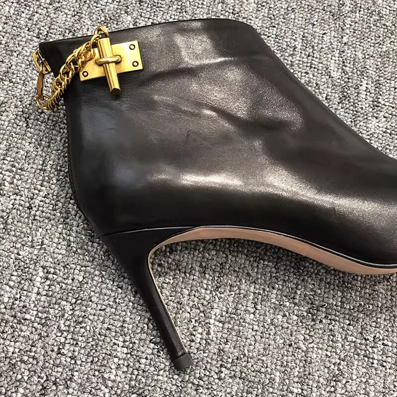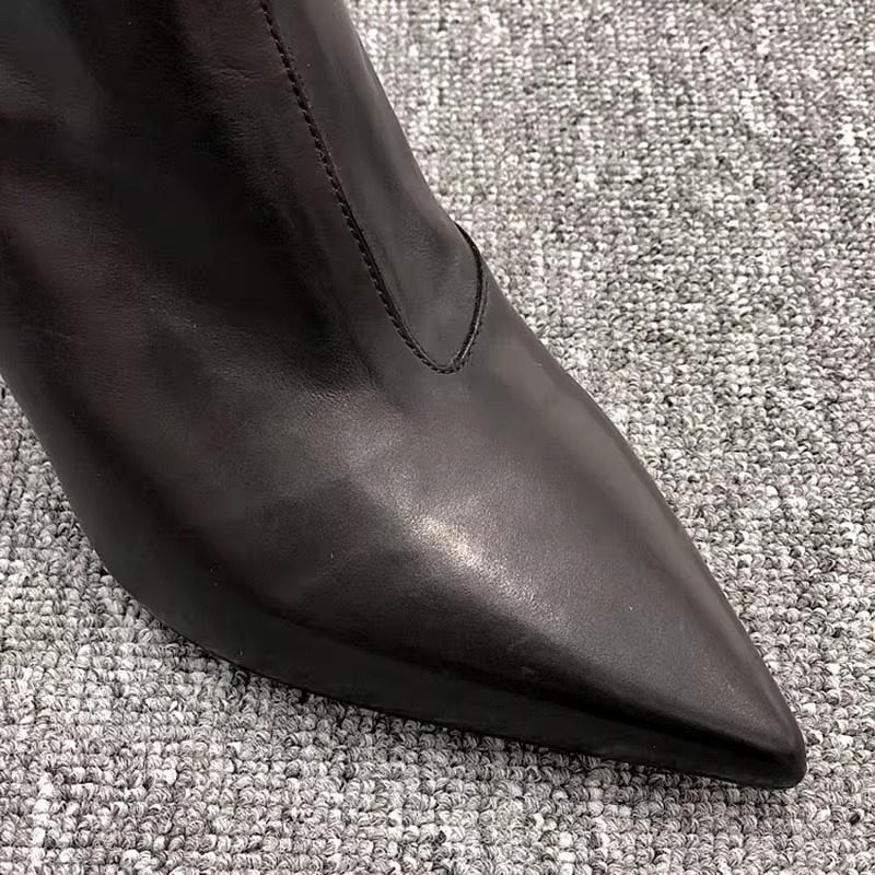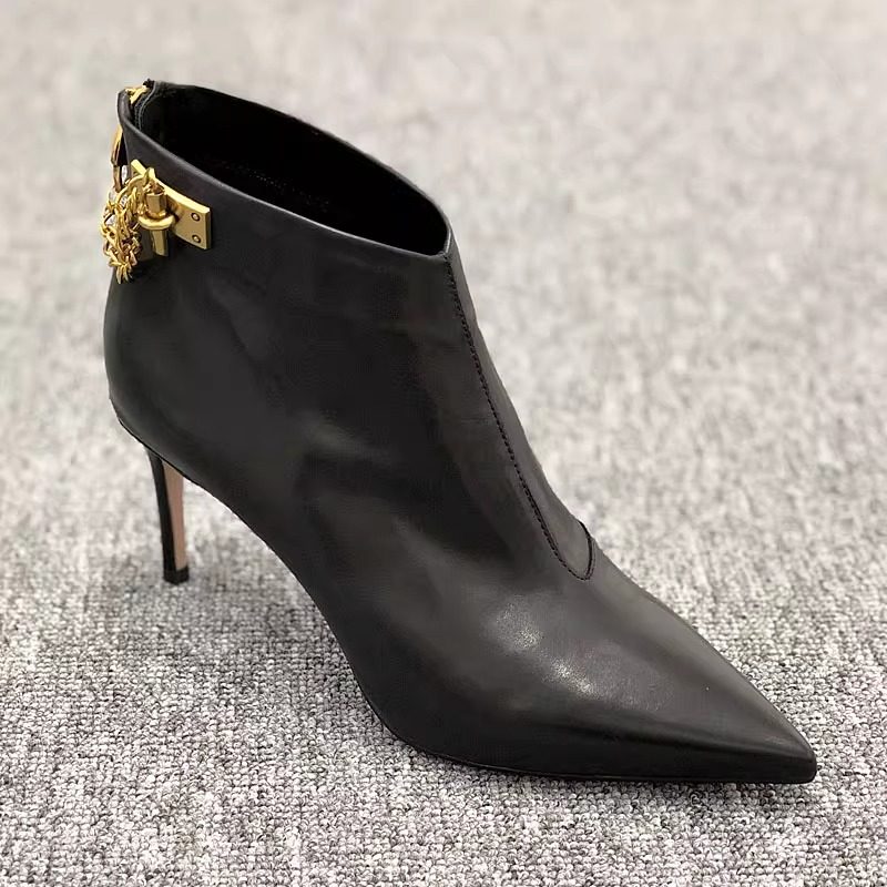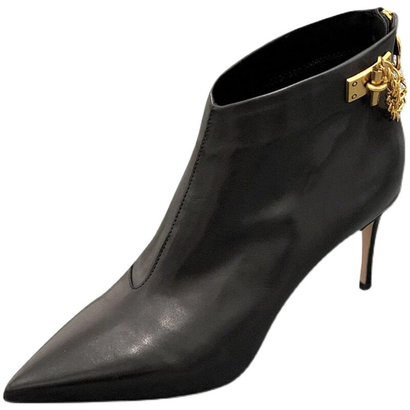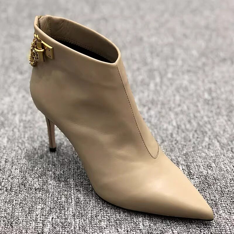 歐洲站尖頭細跟杏色短靴女高跟鞋秋2026年秋冬新款真皮鞋鏈條靴子