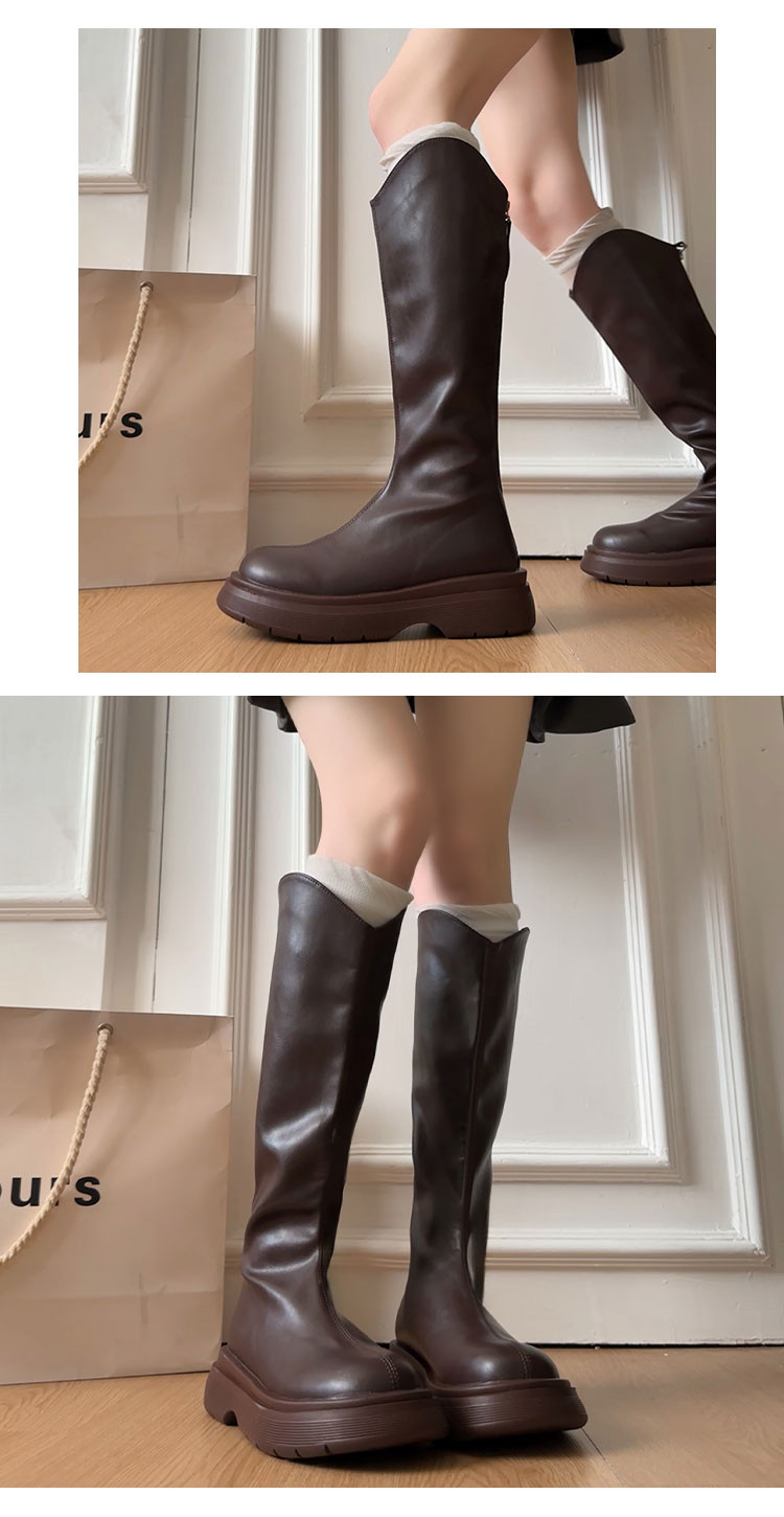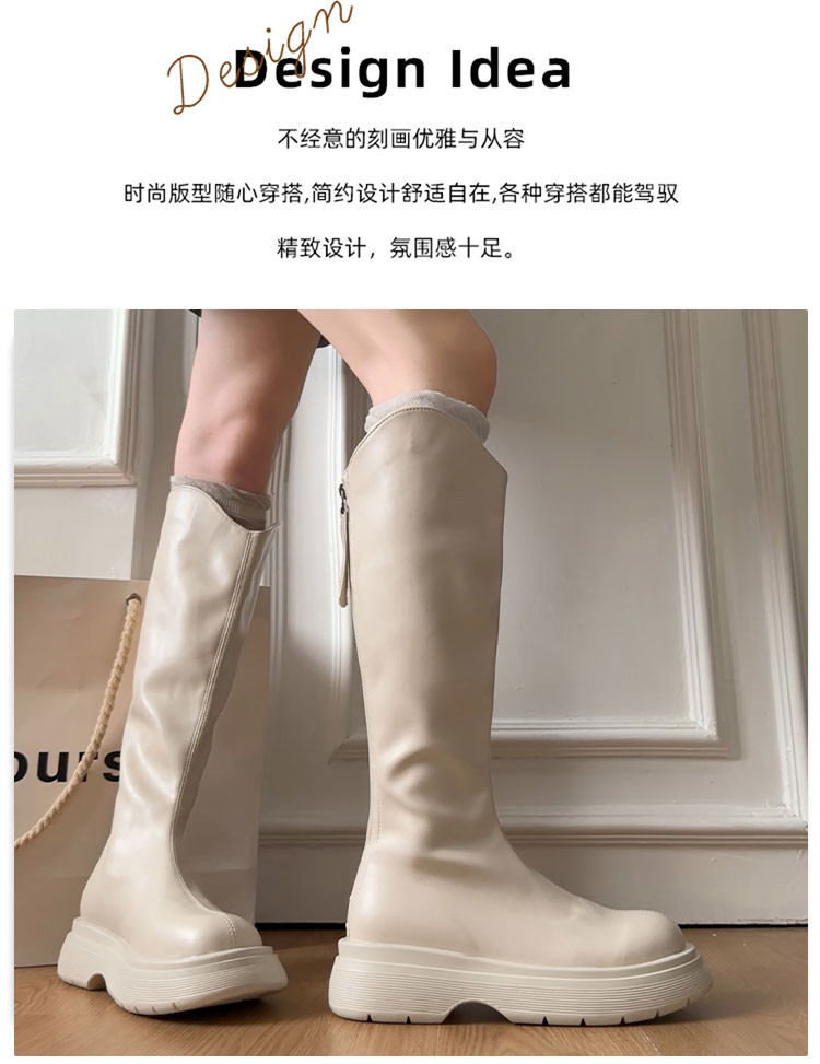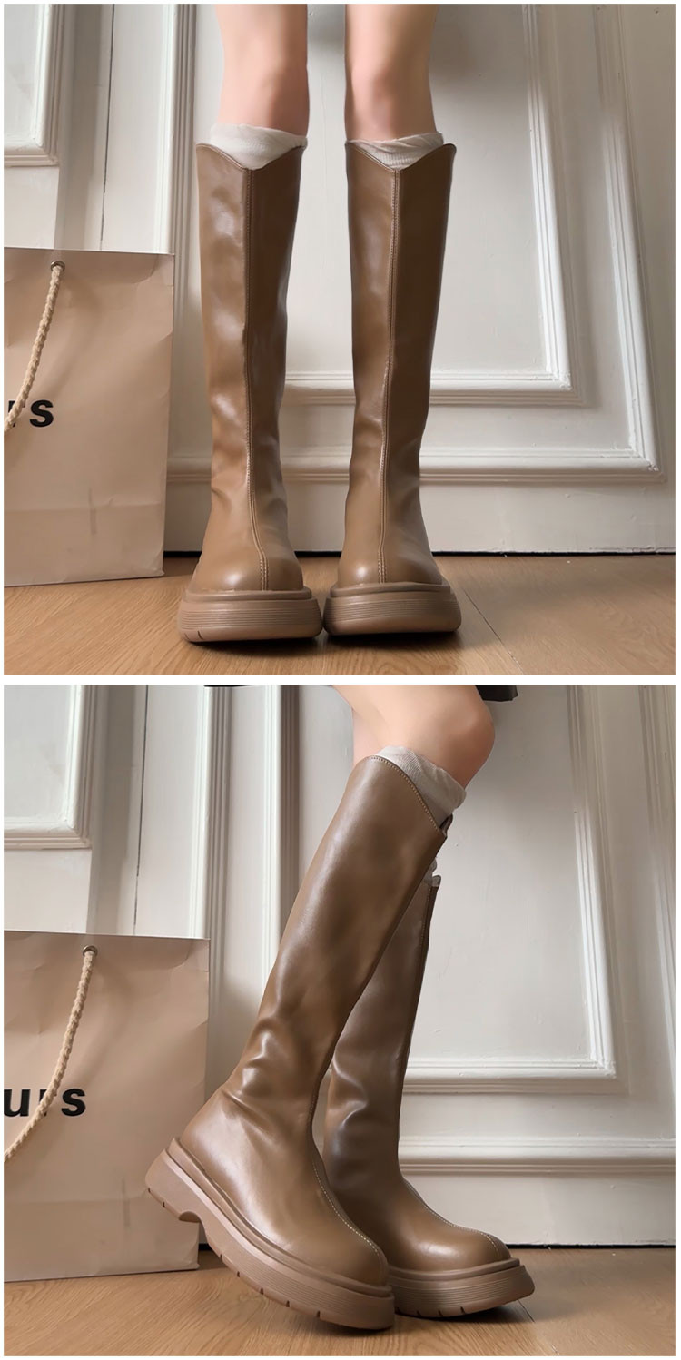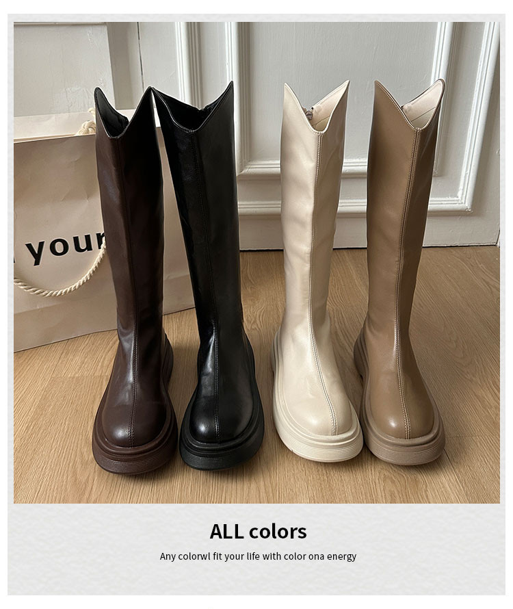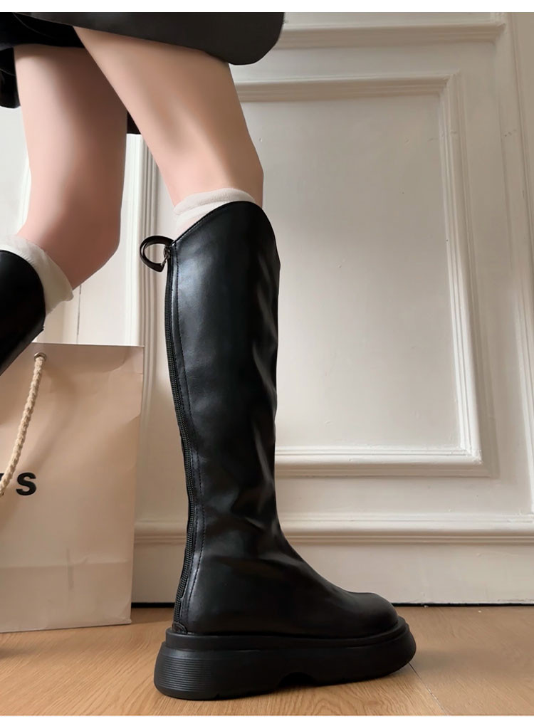 黑色不過膝厚底靴子女長筒靴2026新款春季配裙子增高顯瘦騎士長靴