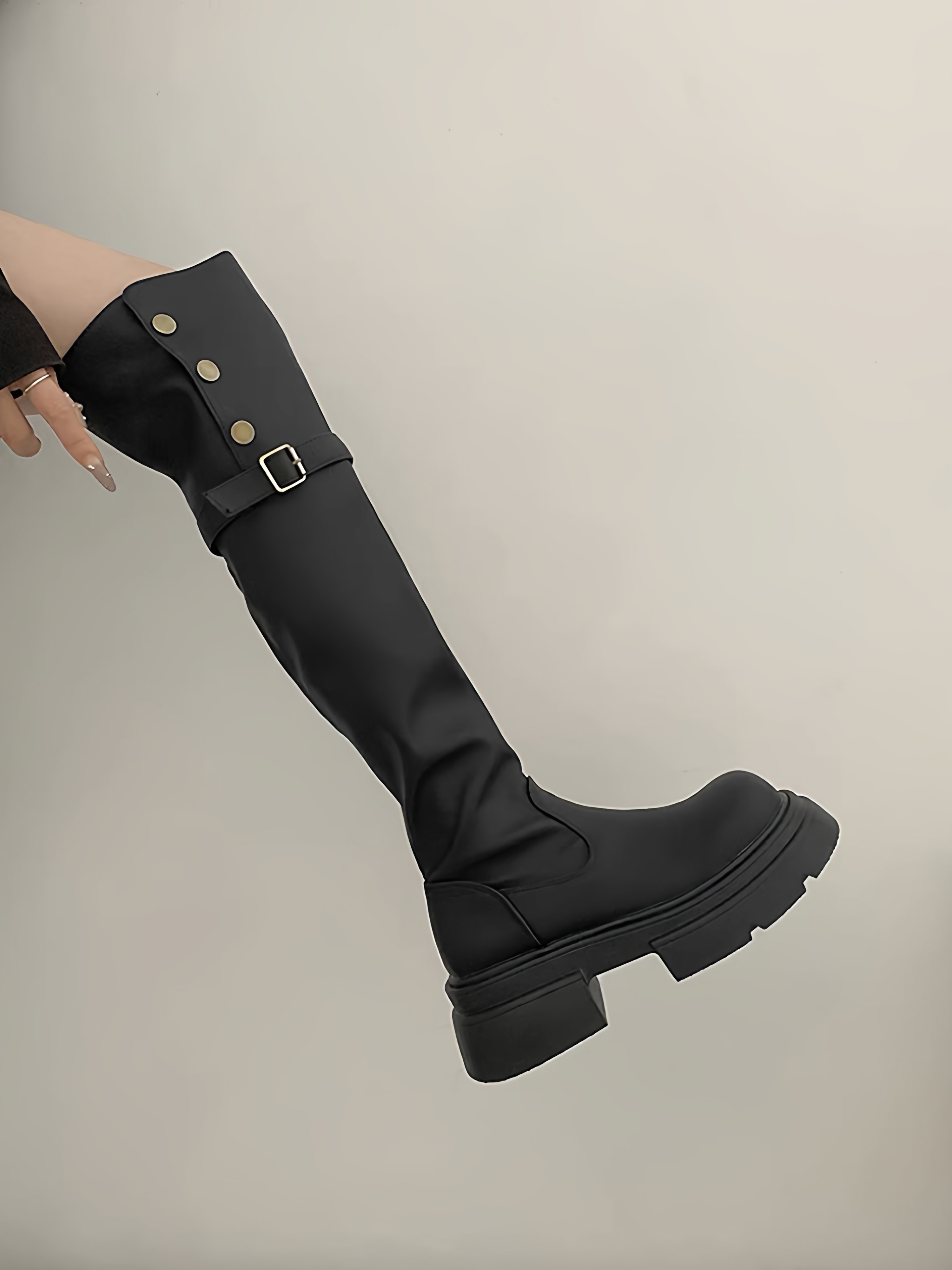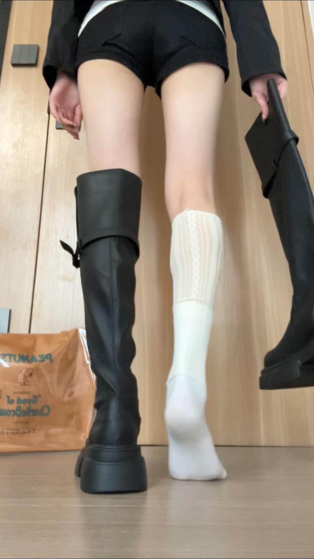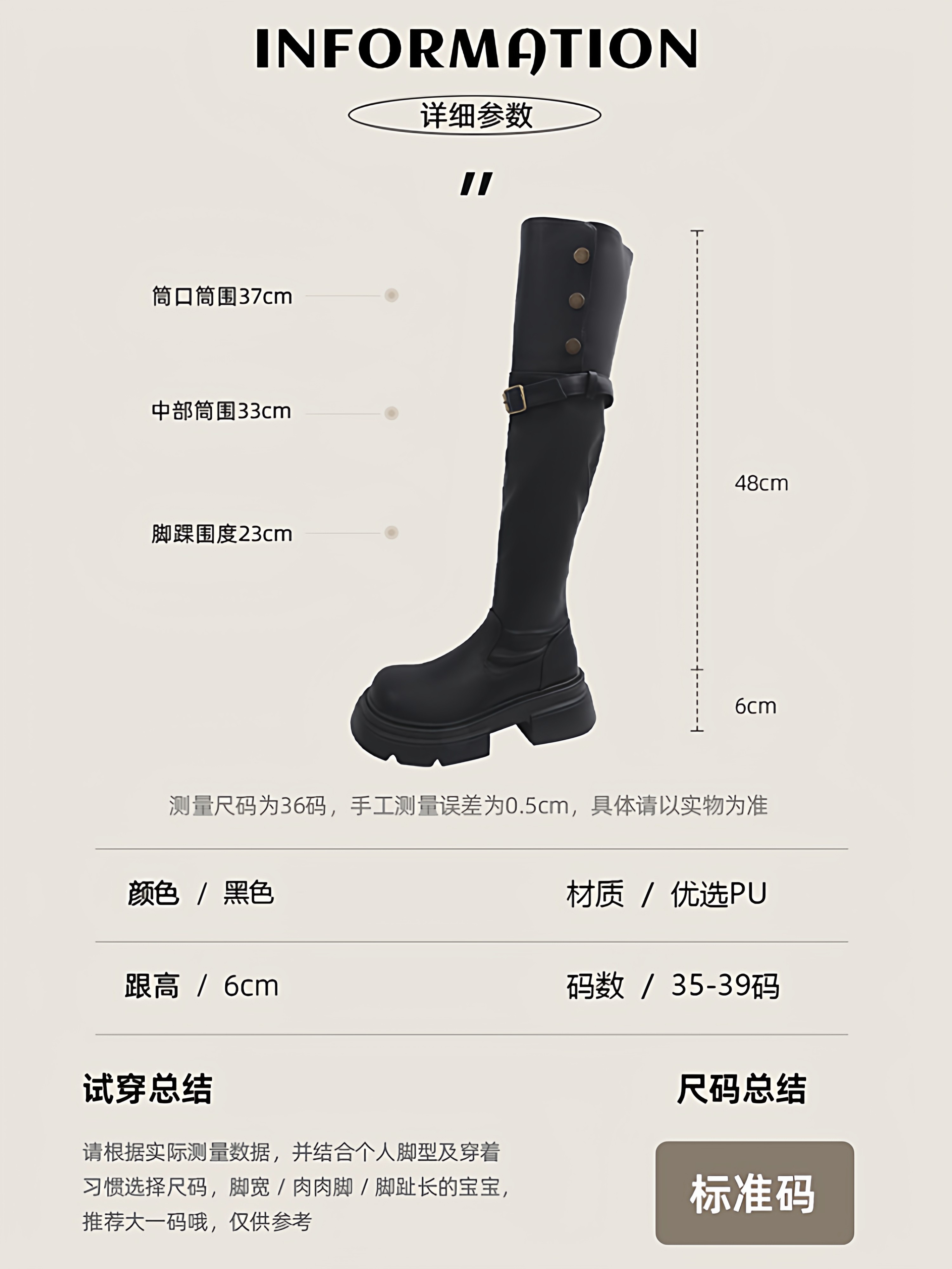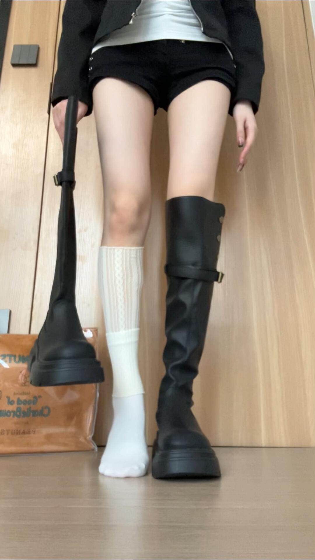 黑色兩穿厚底過膝長筒靴女2026春季新款粗跟增高靴子顯瘦騎士靴