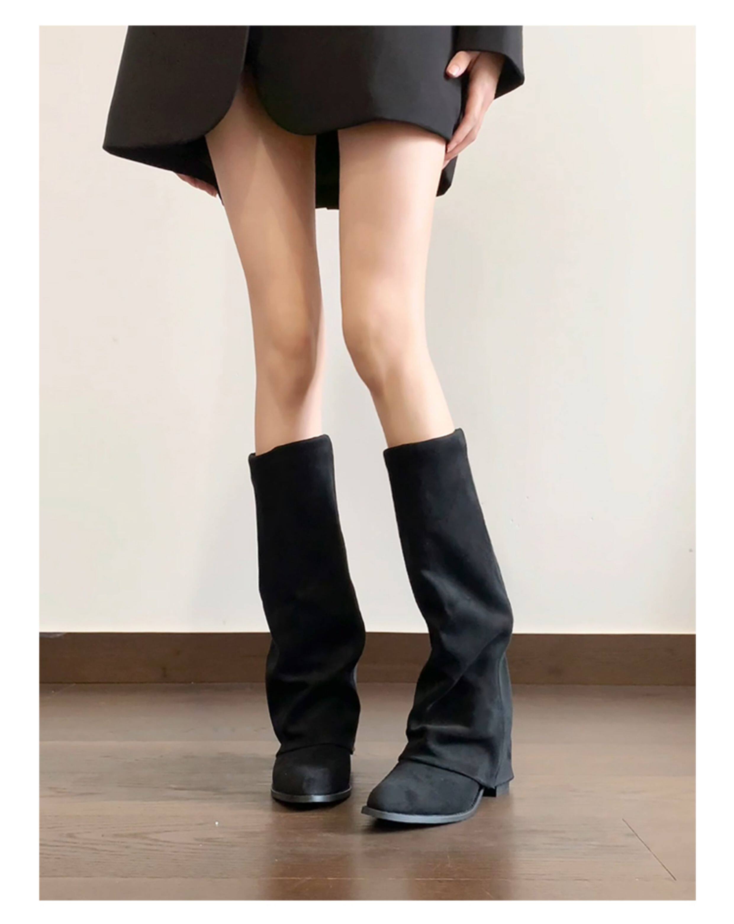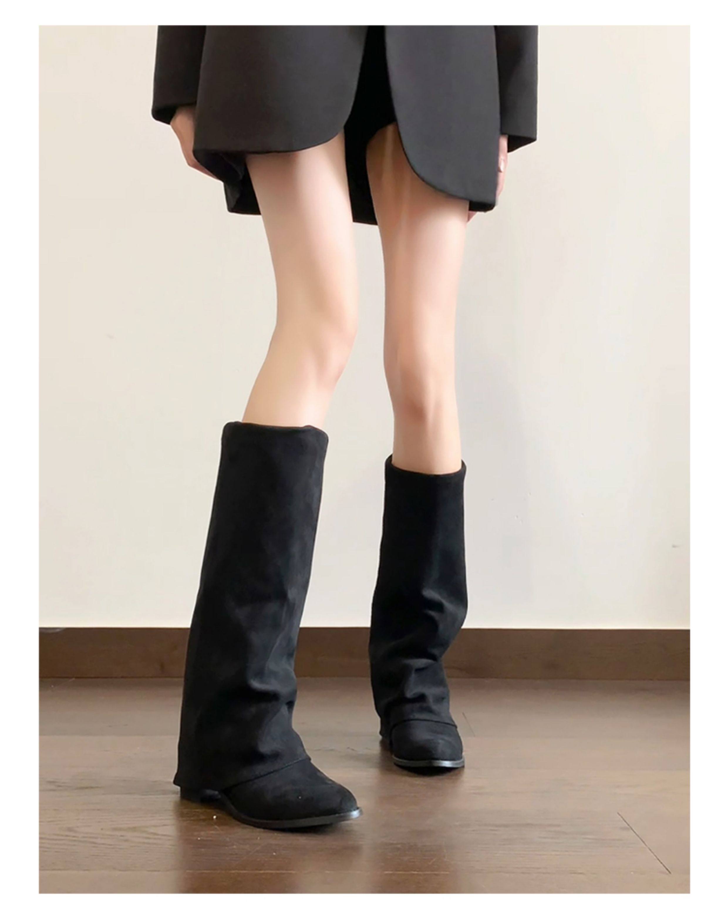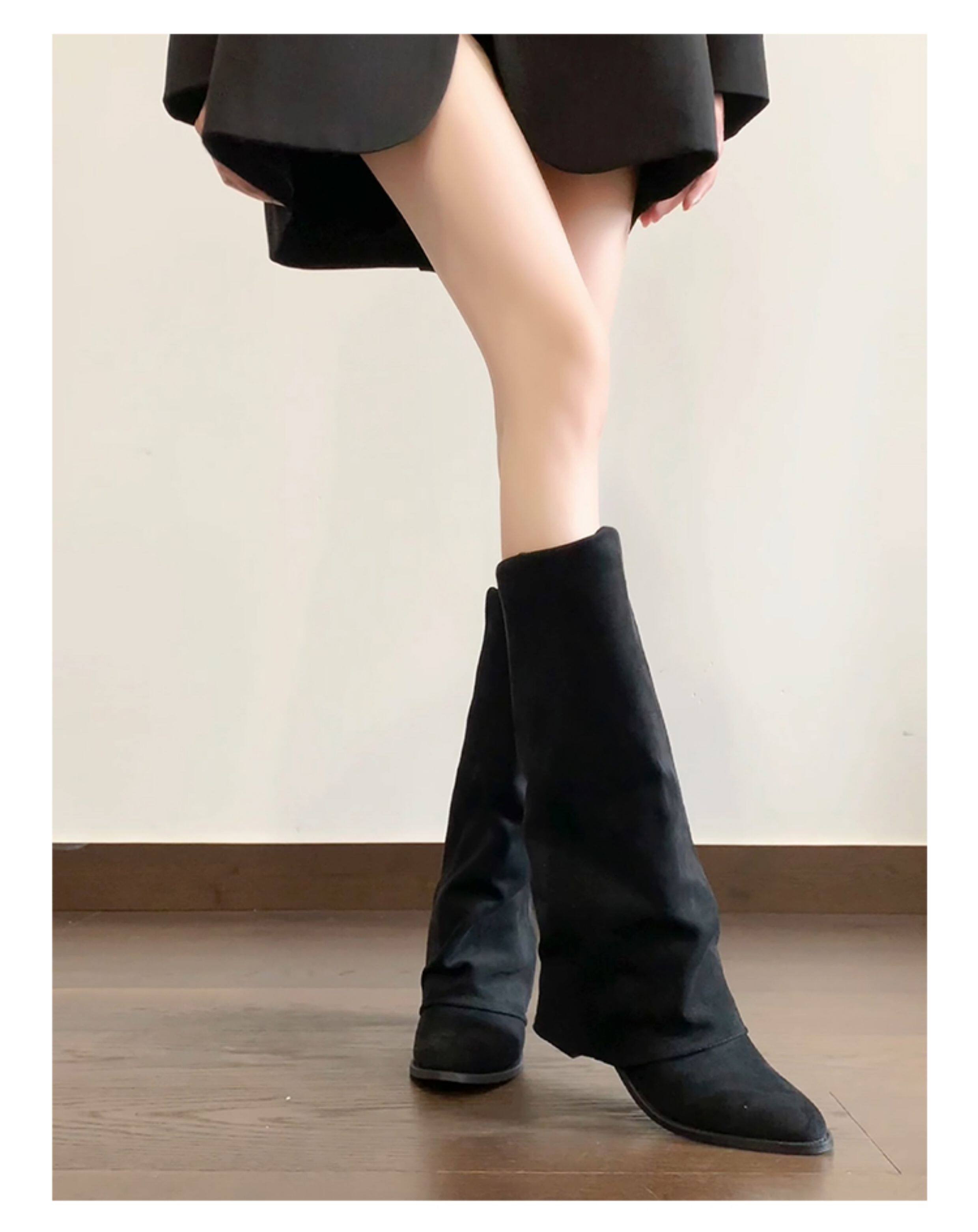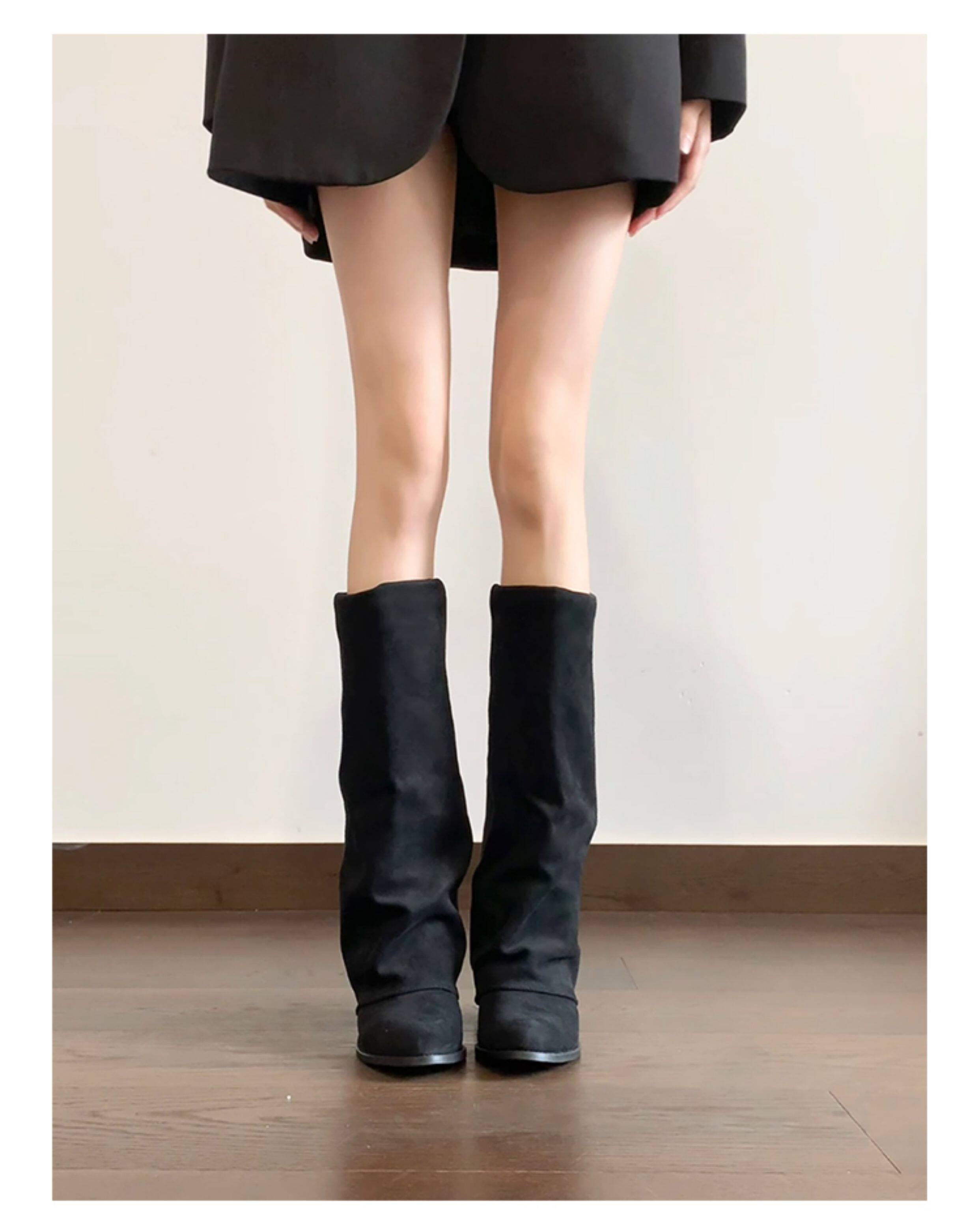 牛皮版~小衆復古絨面粗跟長靴女2025新款氣質百搭顯瘦時尚褲琯靴