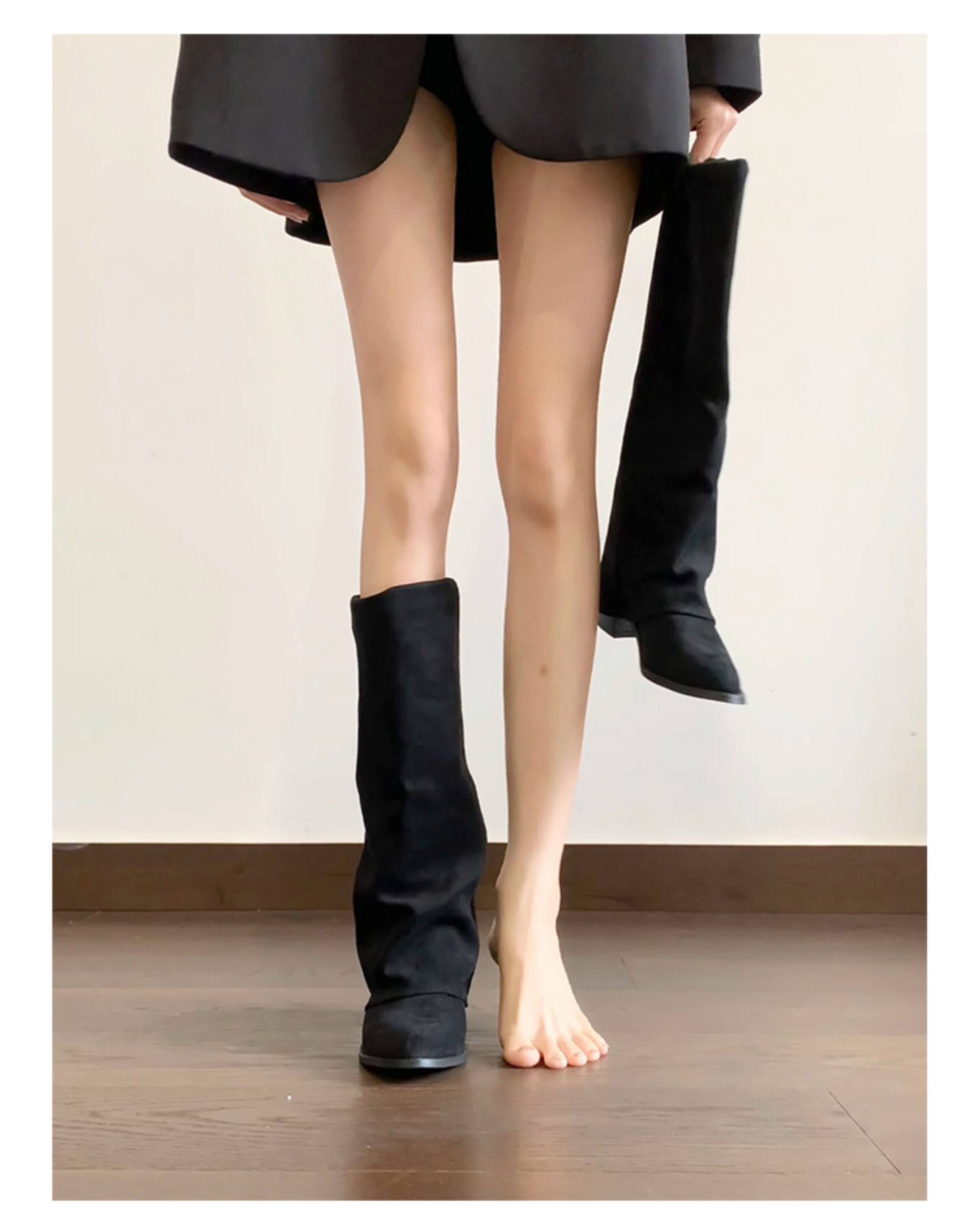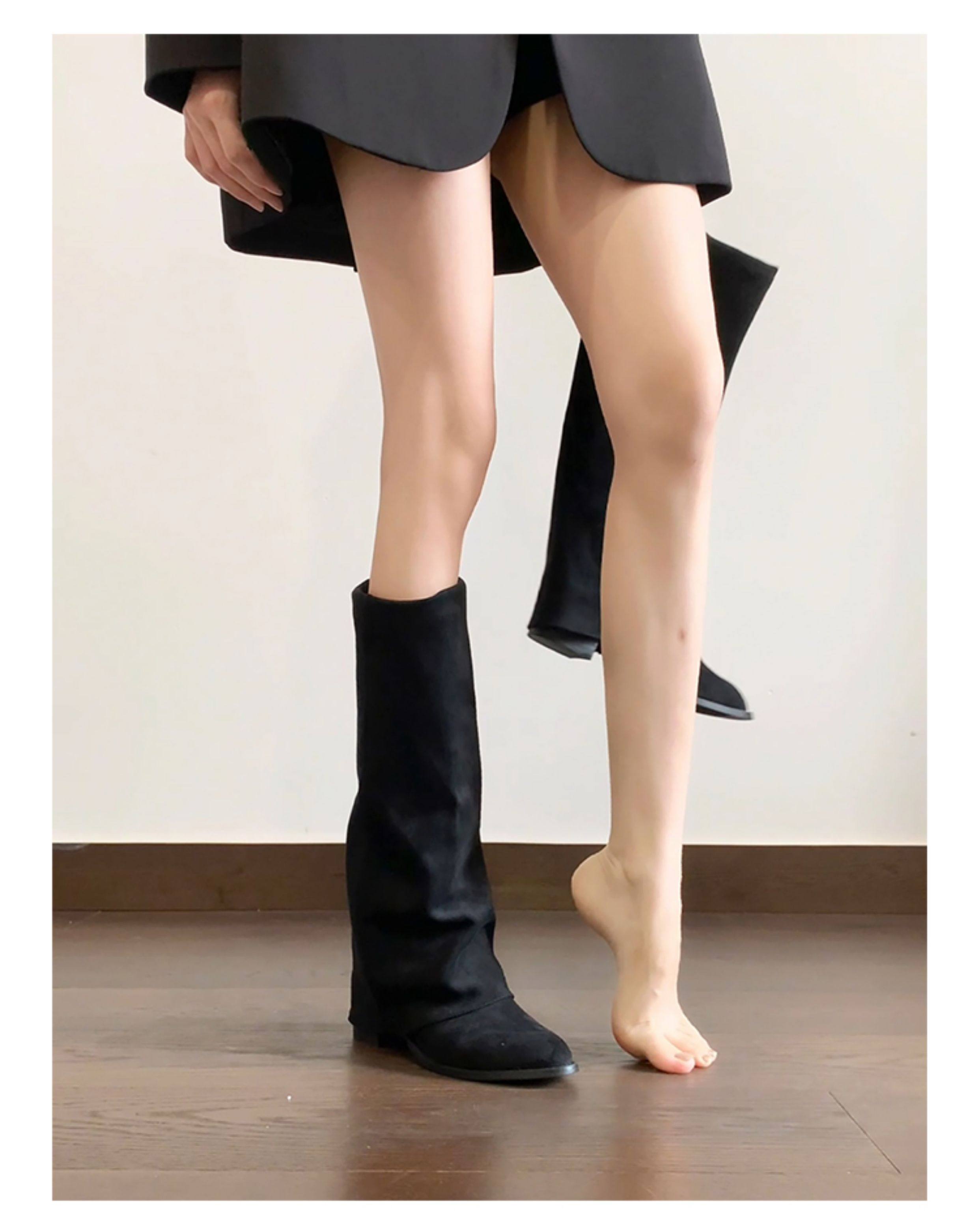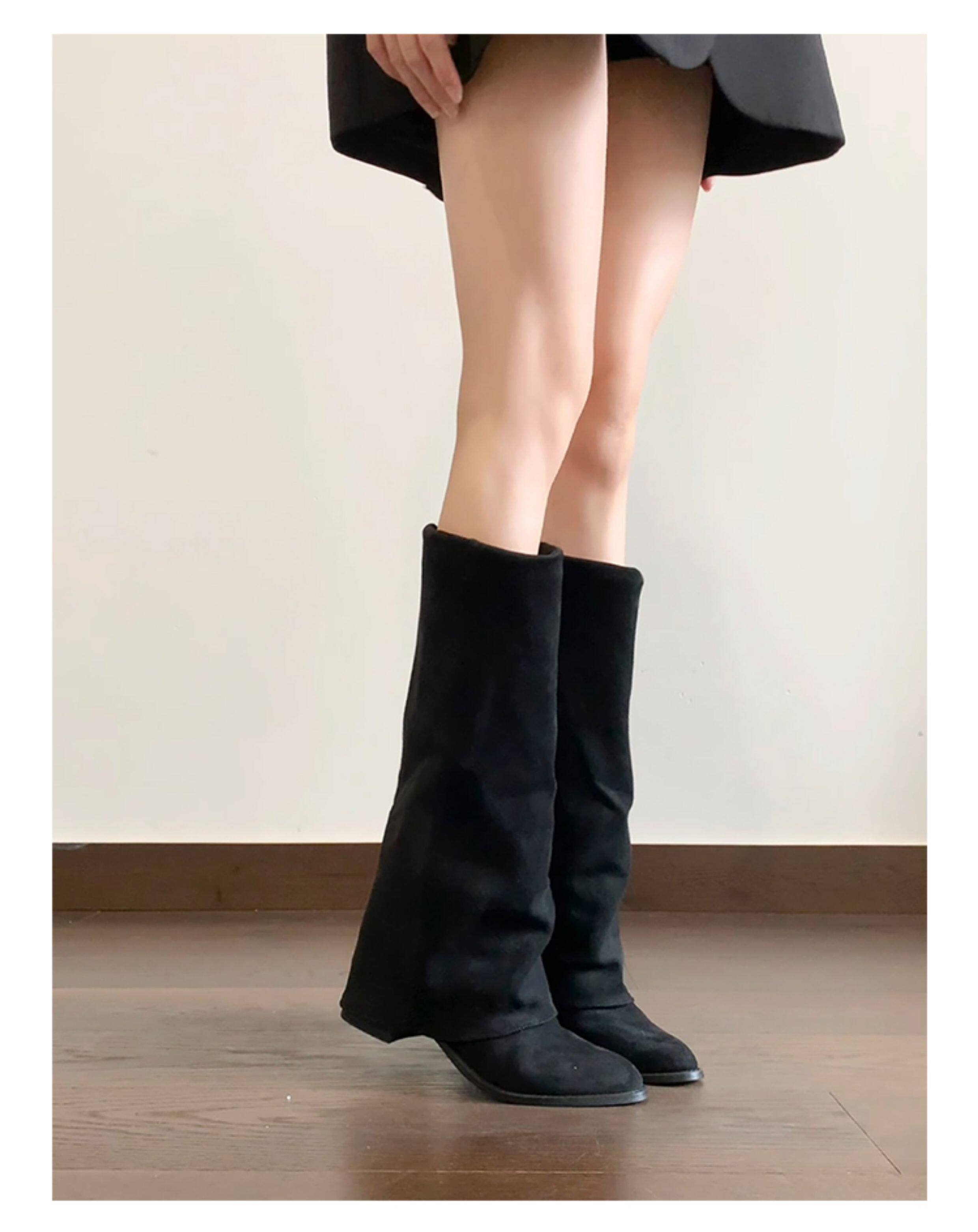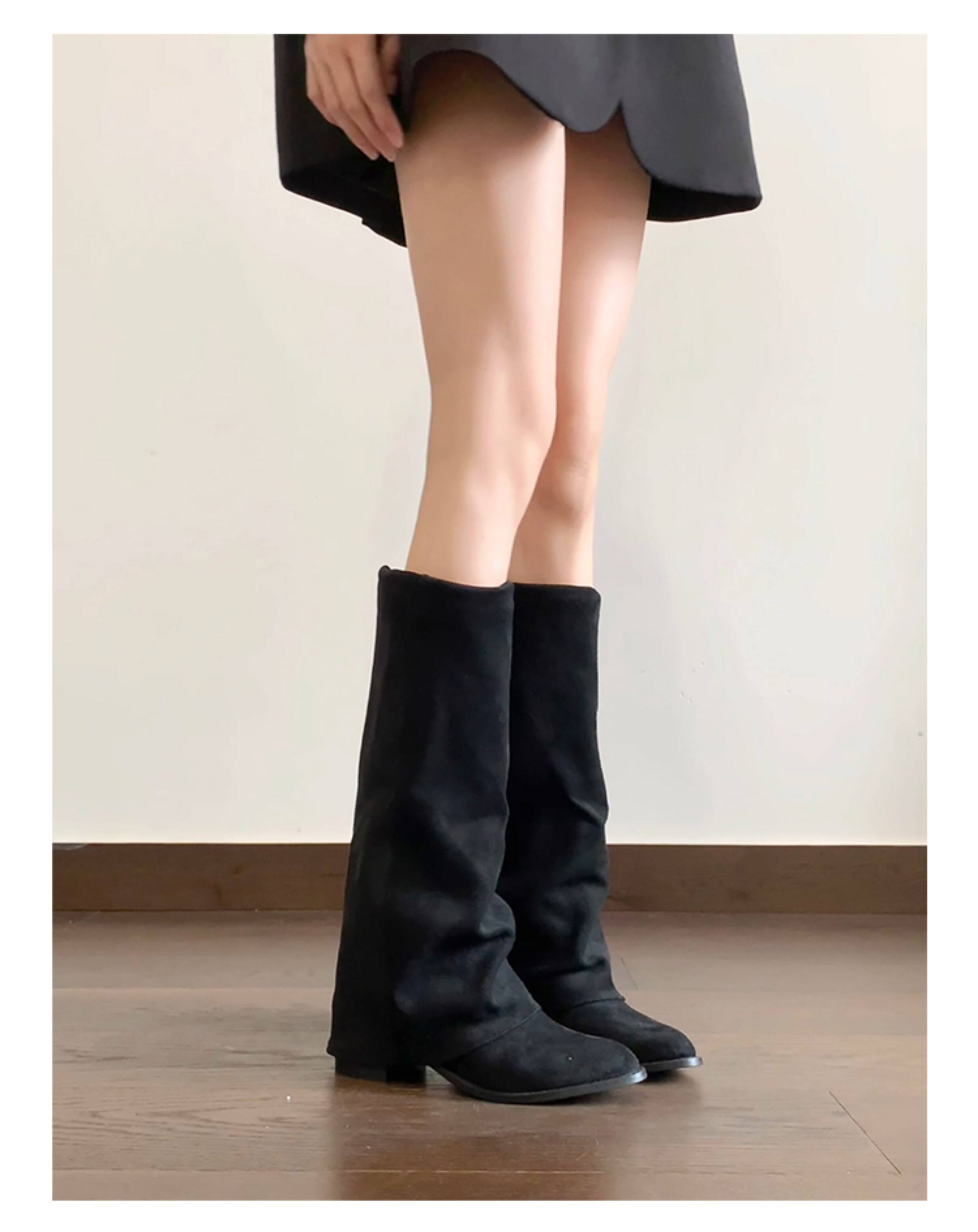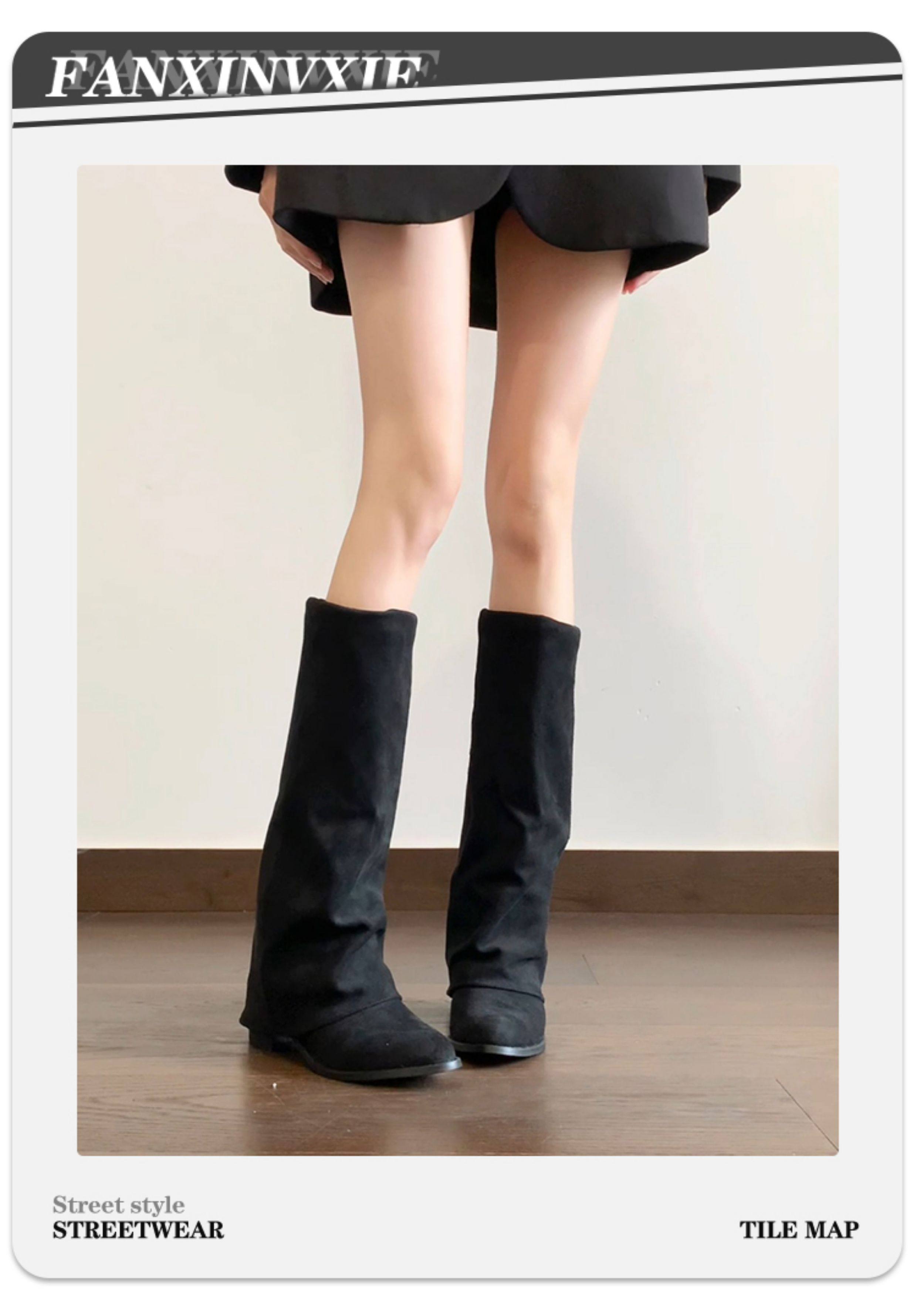 牛皮版~小衆復古絨面粗跟長靴女2025新款氣質百搭顯瘦時尚褲琯靴