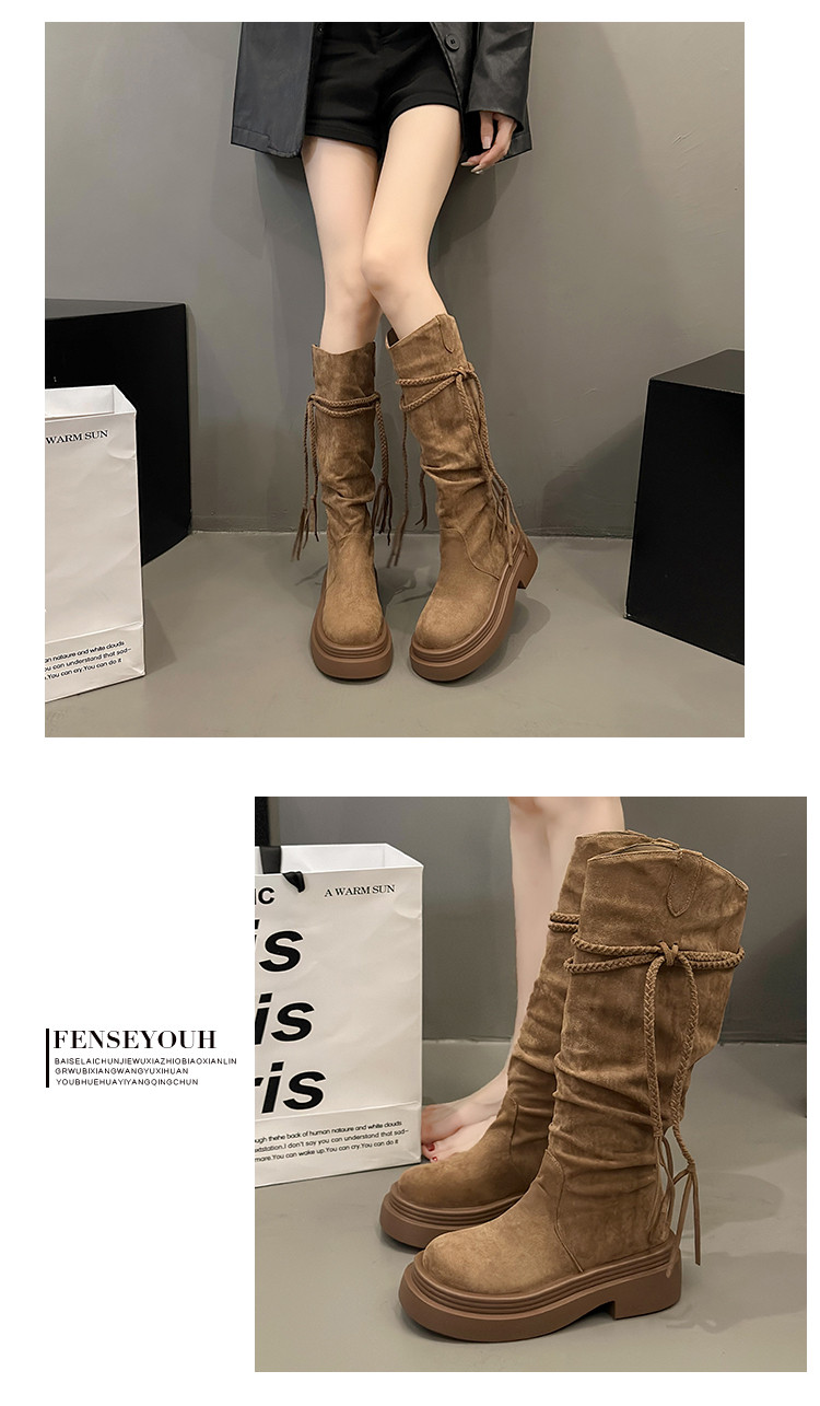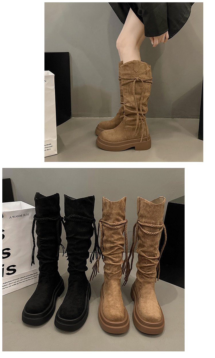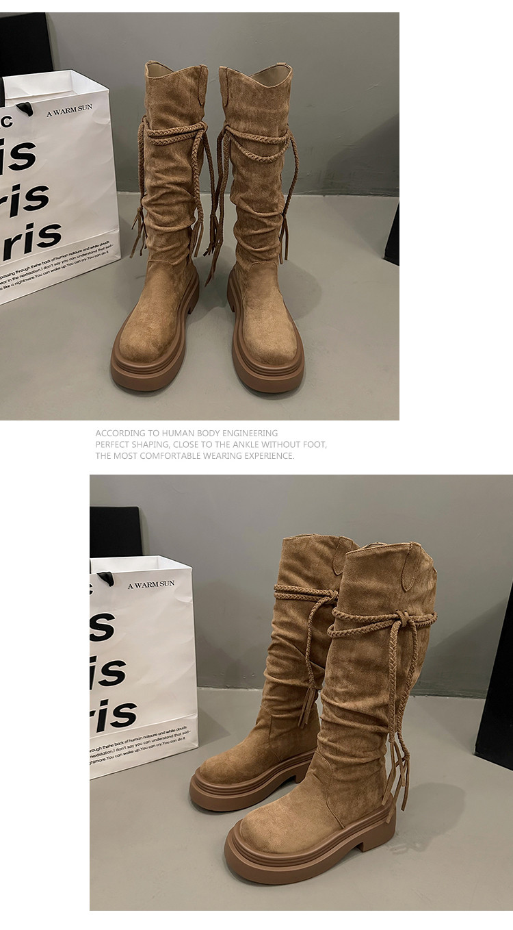 厚底棕色美拉德長靴女2025新款秋冬季廢土風堆堆靴高筒騎士長筒靴