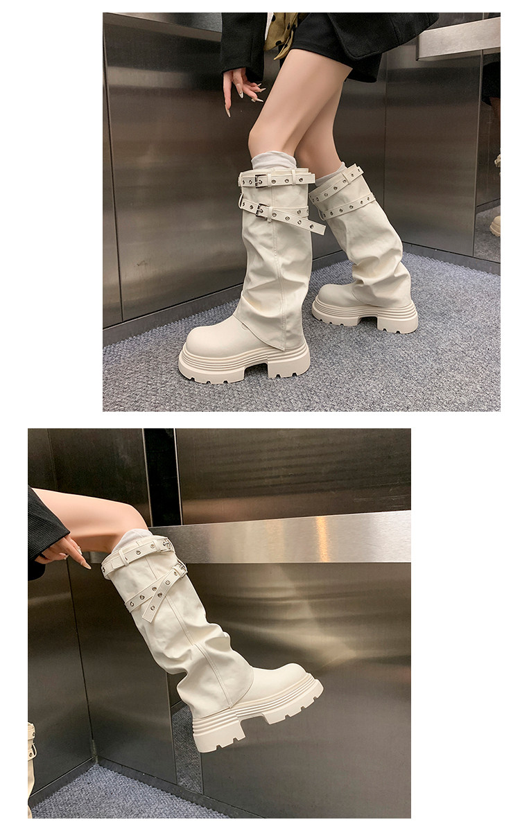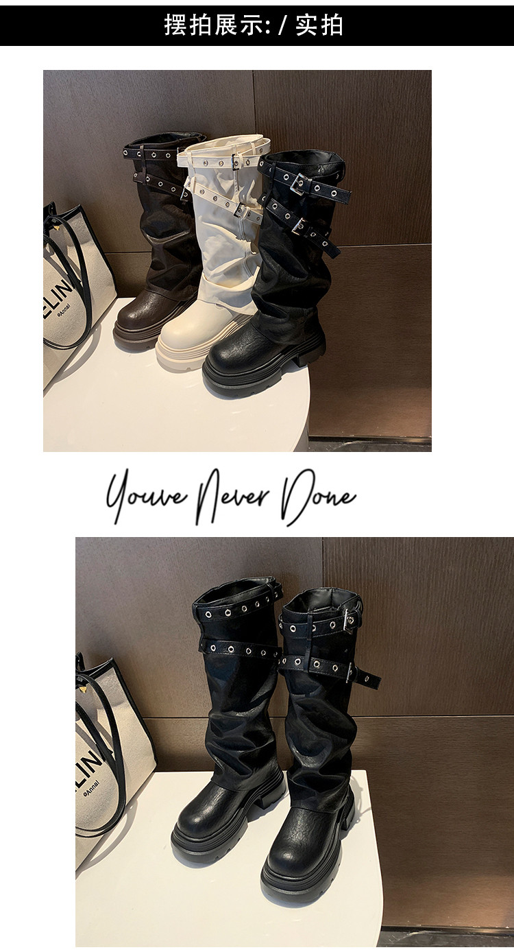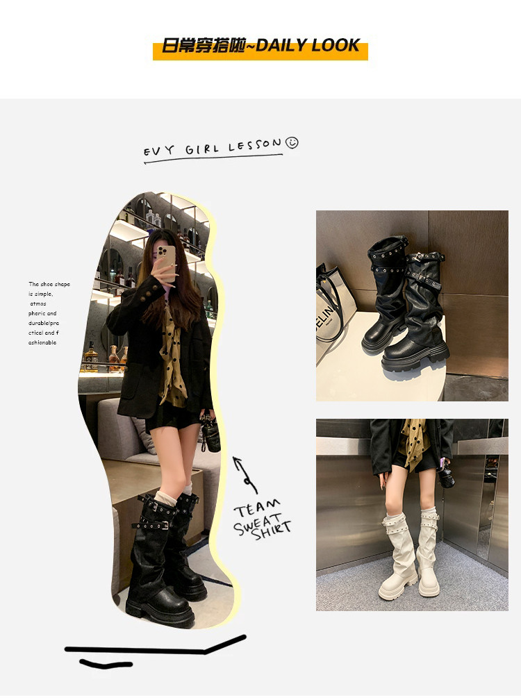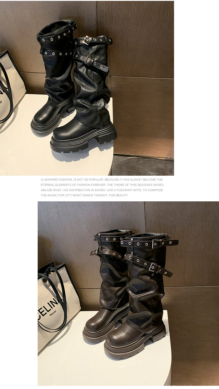 黑色復古英倫風厚底靴子女長筒靴2025新款秋冬配裙子顯瘦騎士長靴