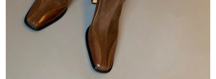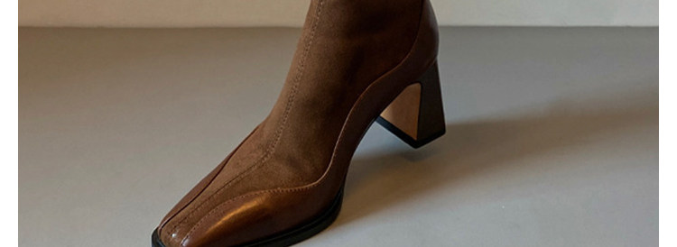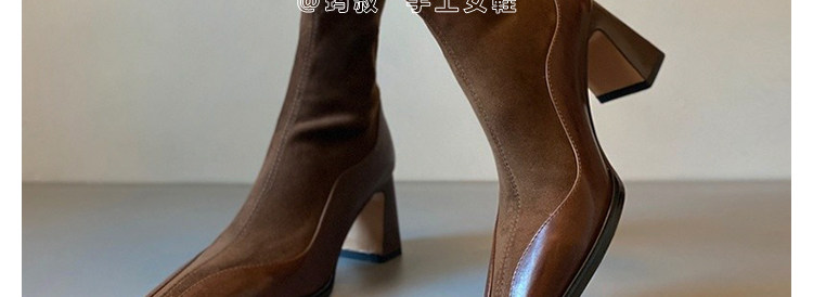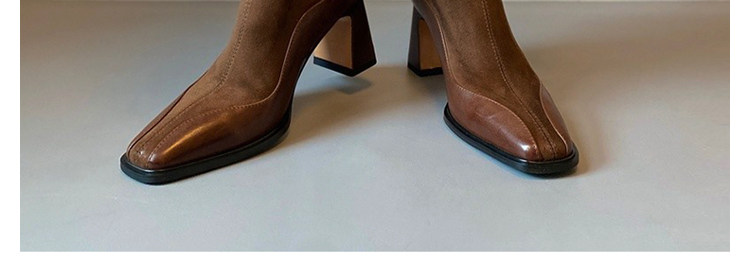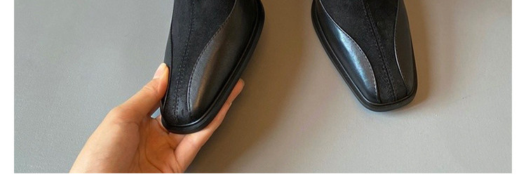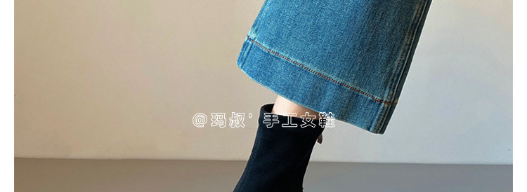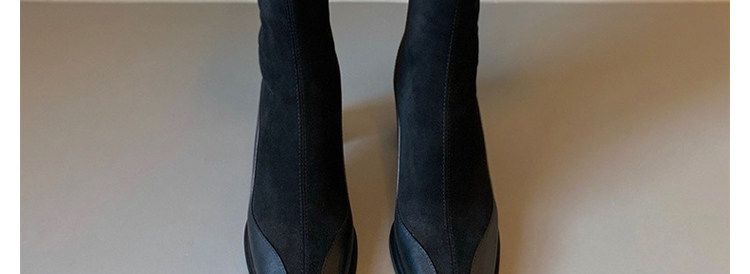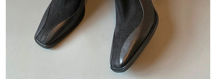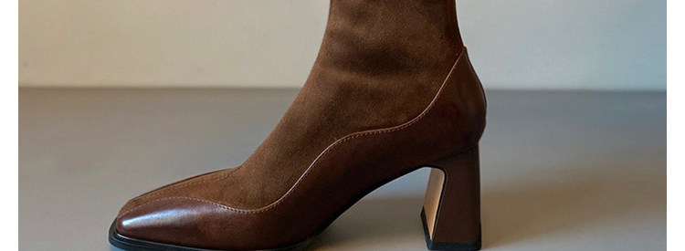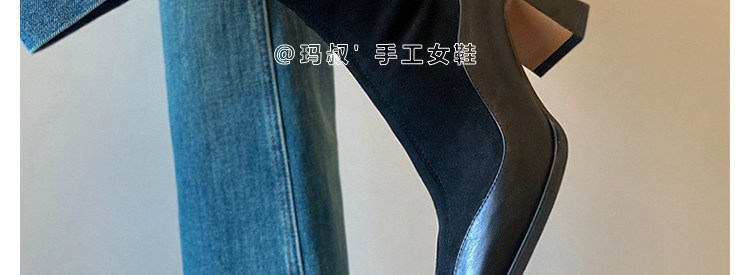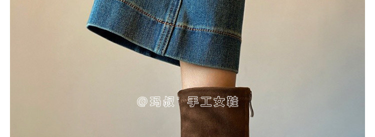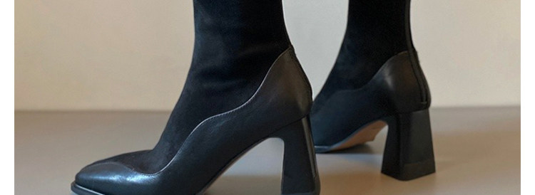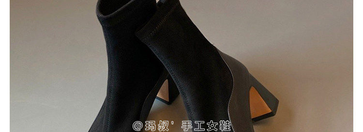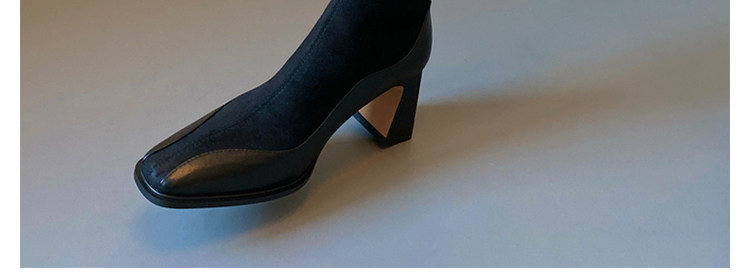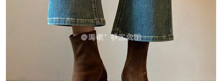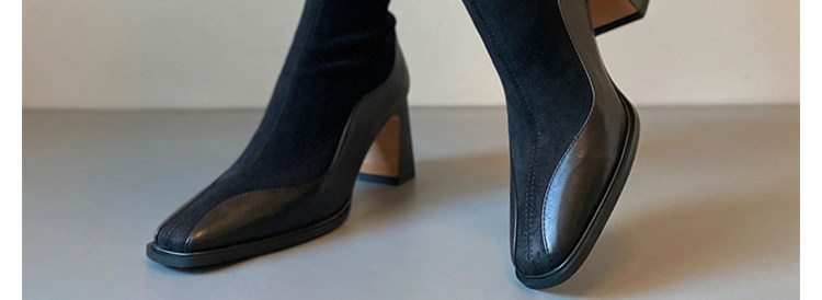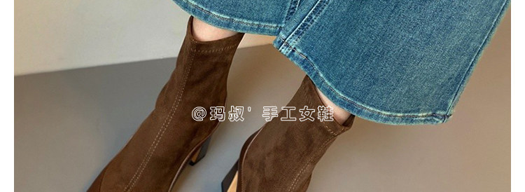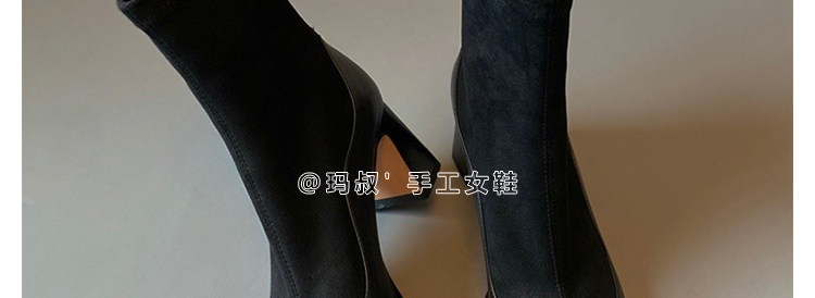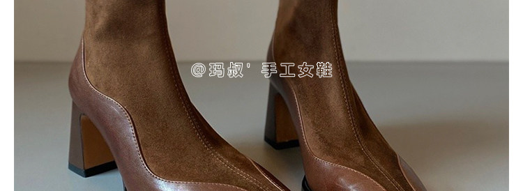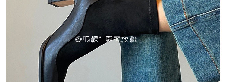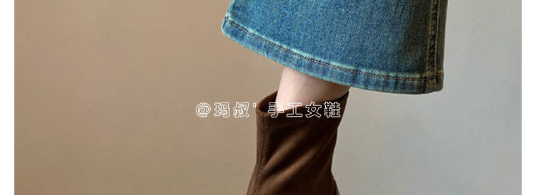 牛皮~短靴女2025新款真皮高跟鞋秋冬方頭彈力襪靴粗跟法式瘦瘦靴