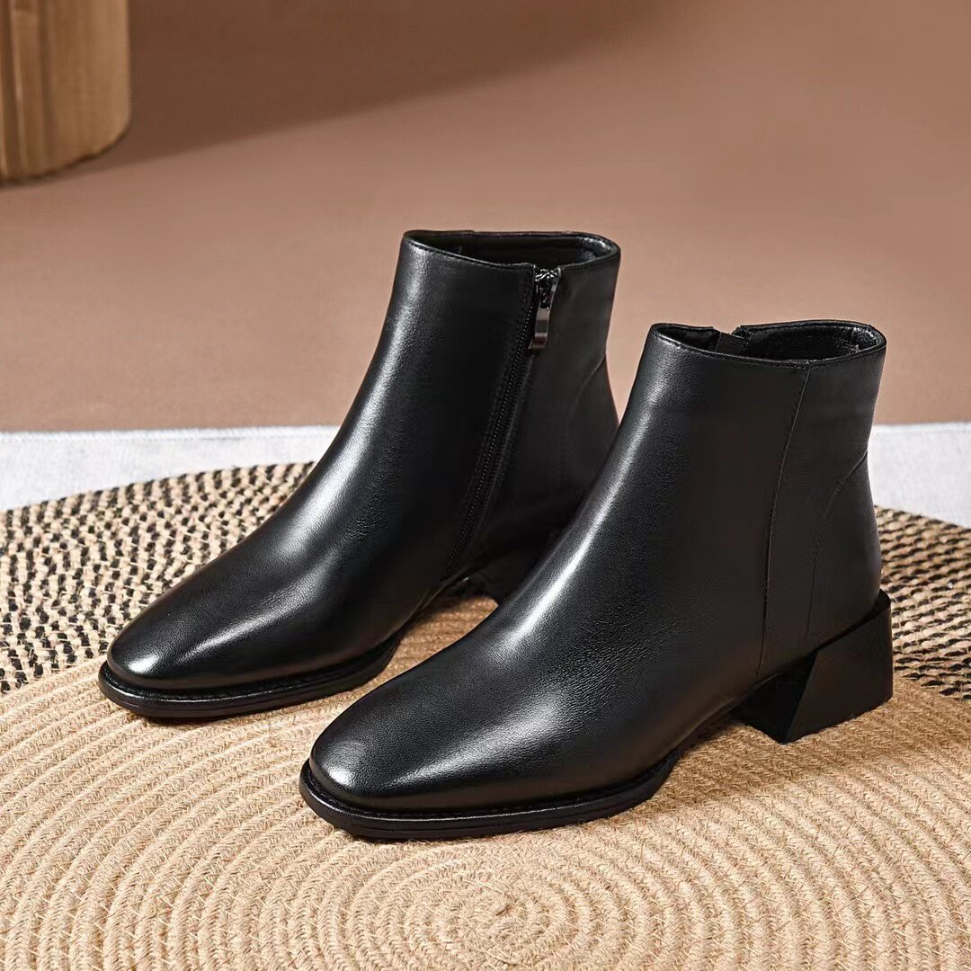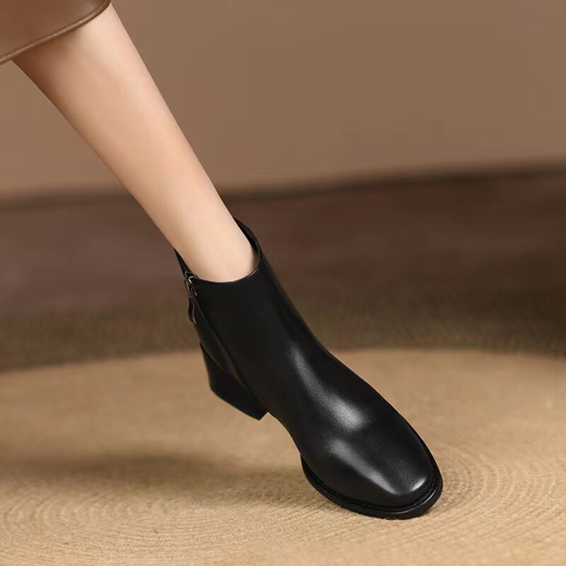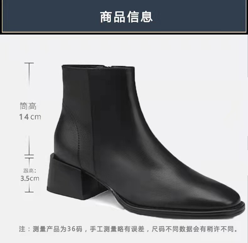 真皮小短靴女軟皮2025新款粗跟真皮方頭切爾西靴百搭裸靴春秋單靴
