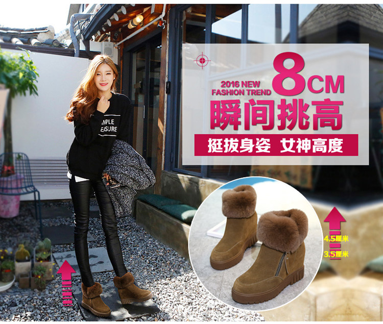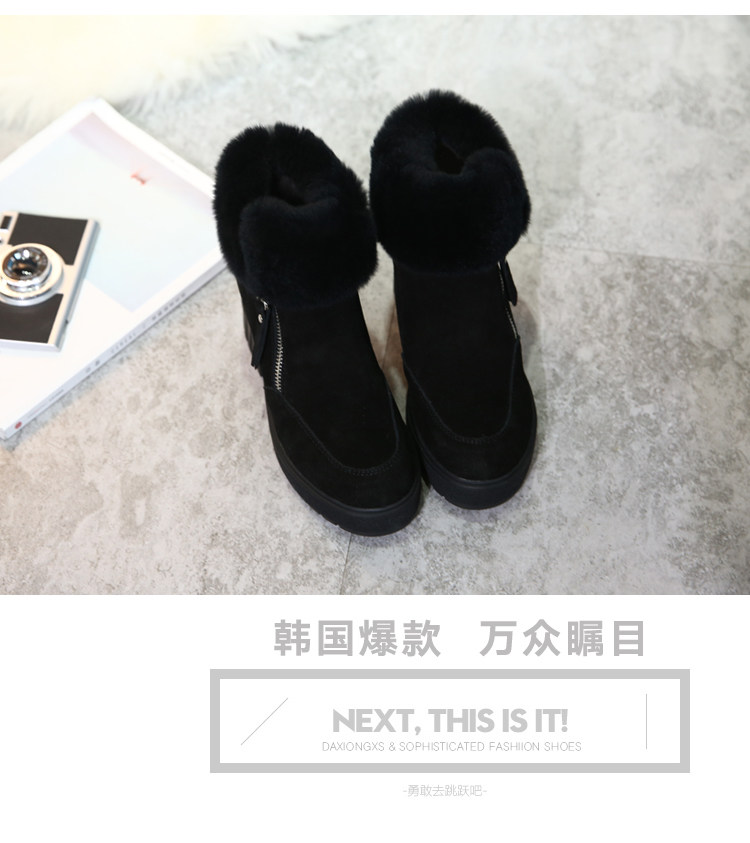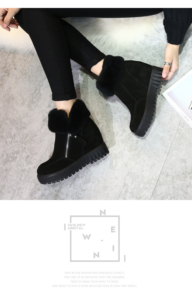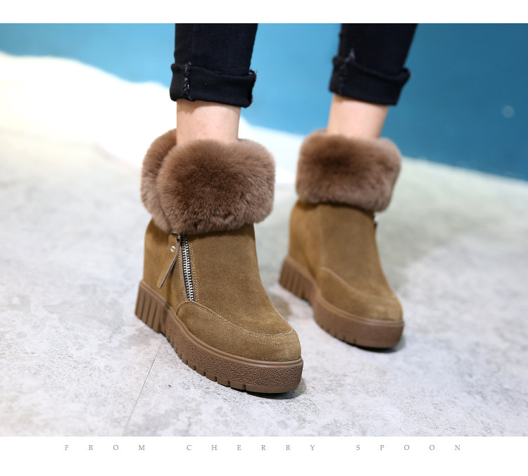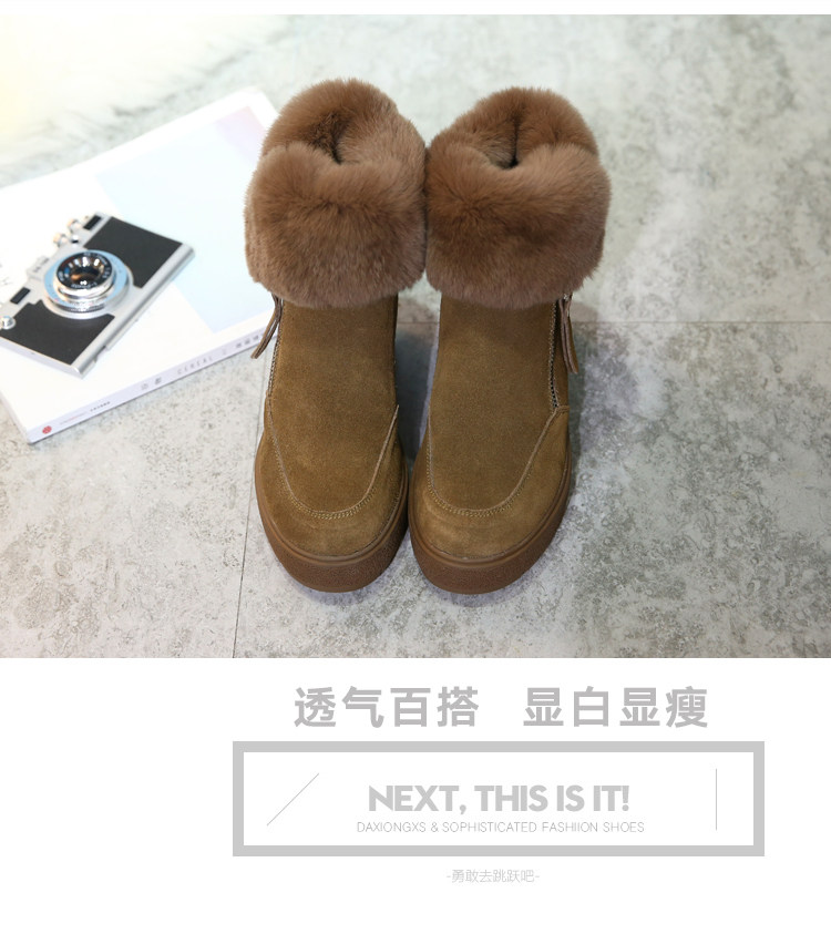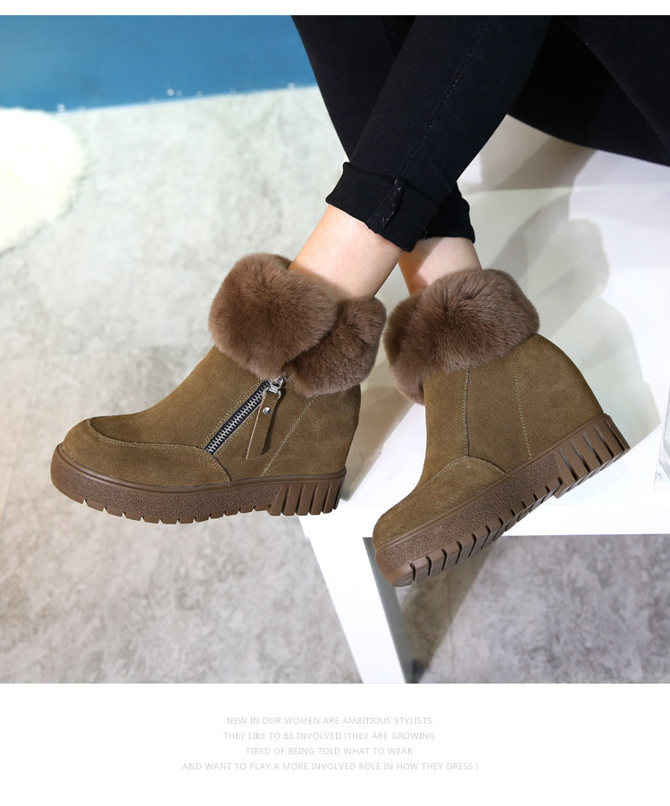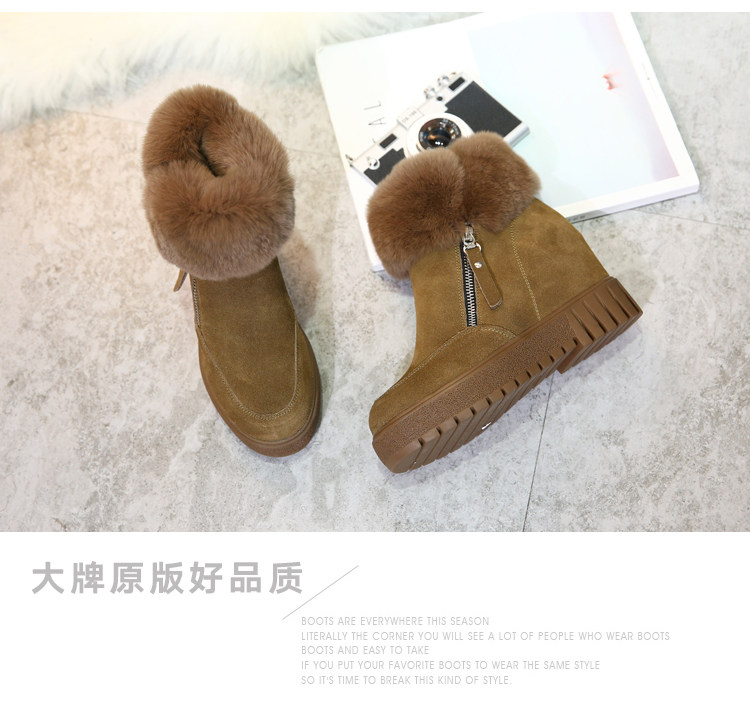 真皮加絨厚底內增高兔毛雪地靴女短筒毛毛短靴子冬季2025新款棉鞋