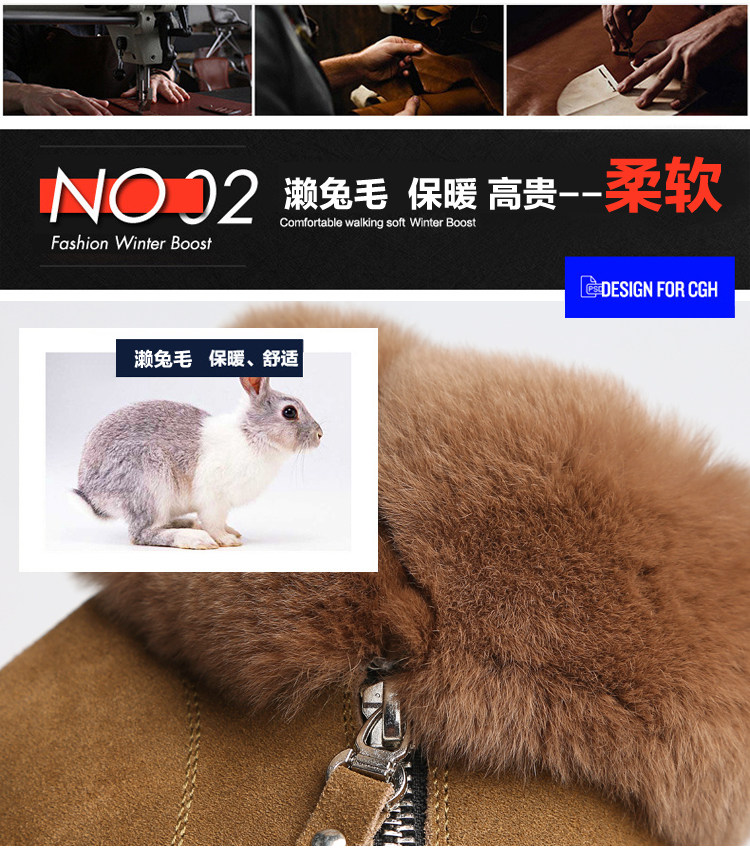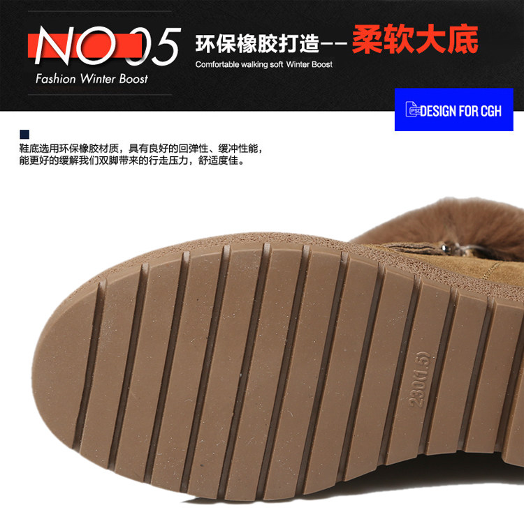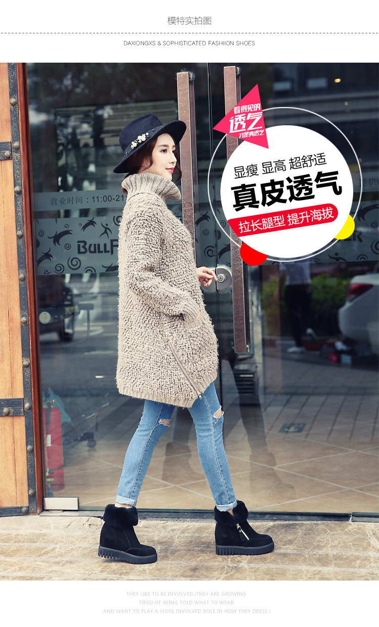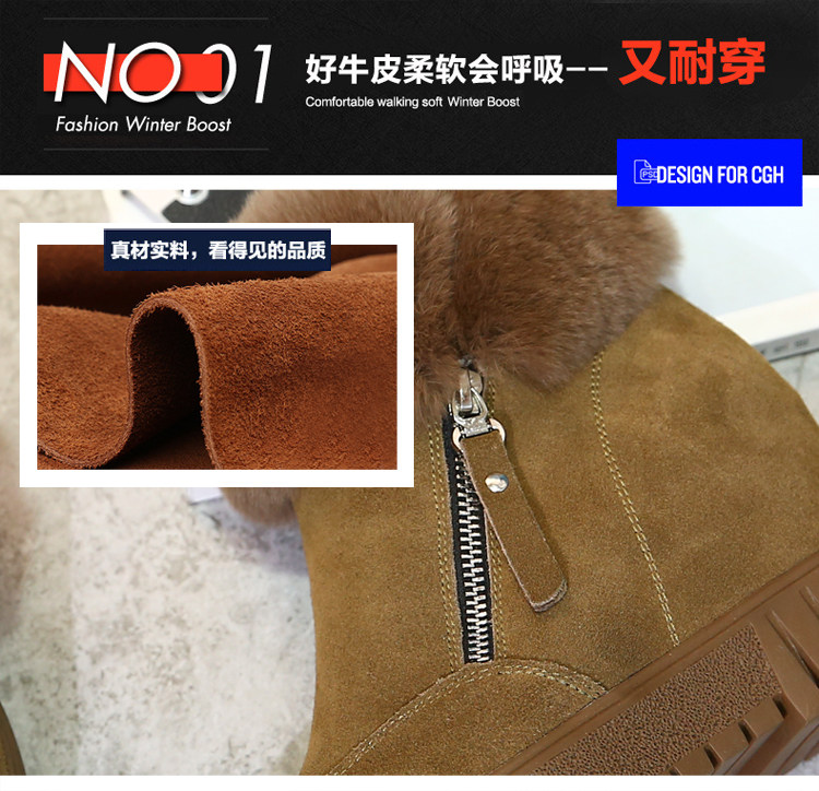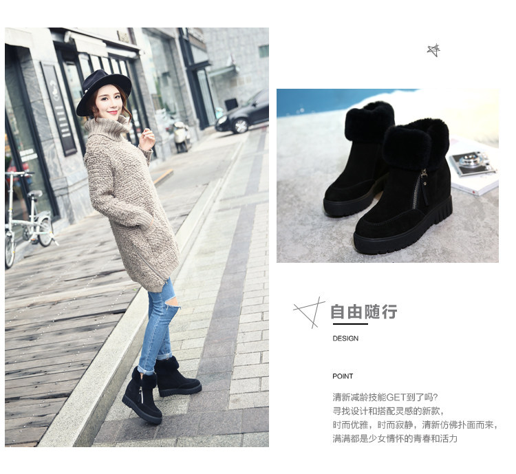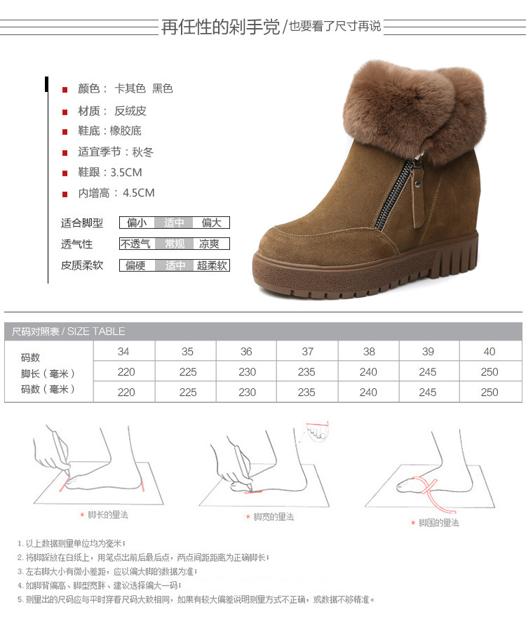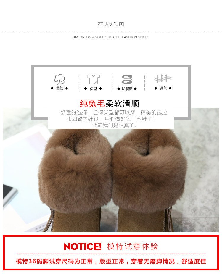 真皮加絨厚底內增高兔毛雪地靴女短筒毛毛短靴子冬季2025新款棉鞋