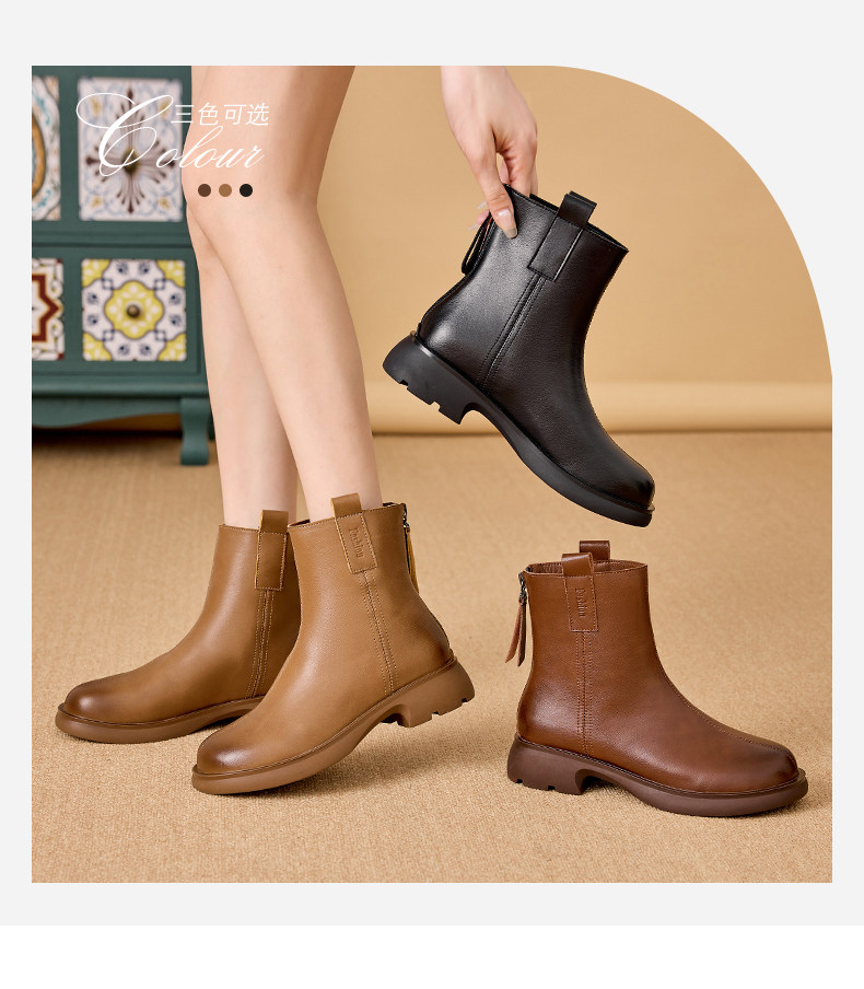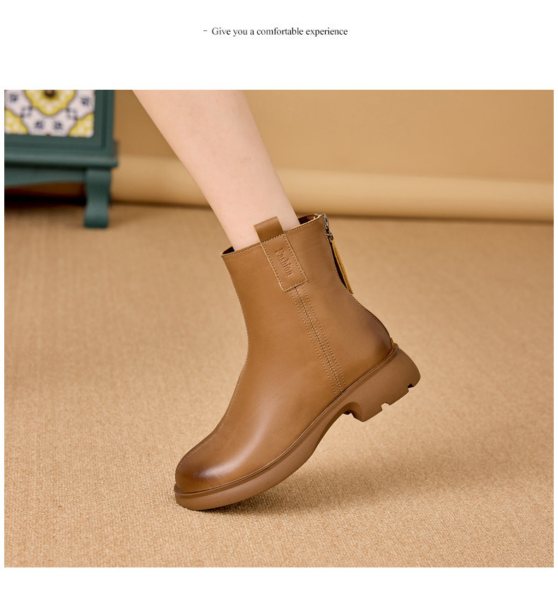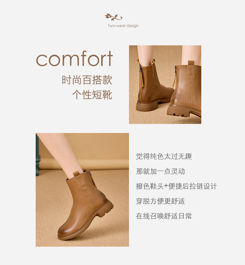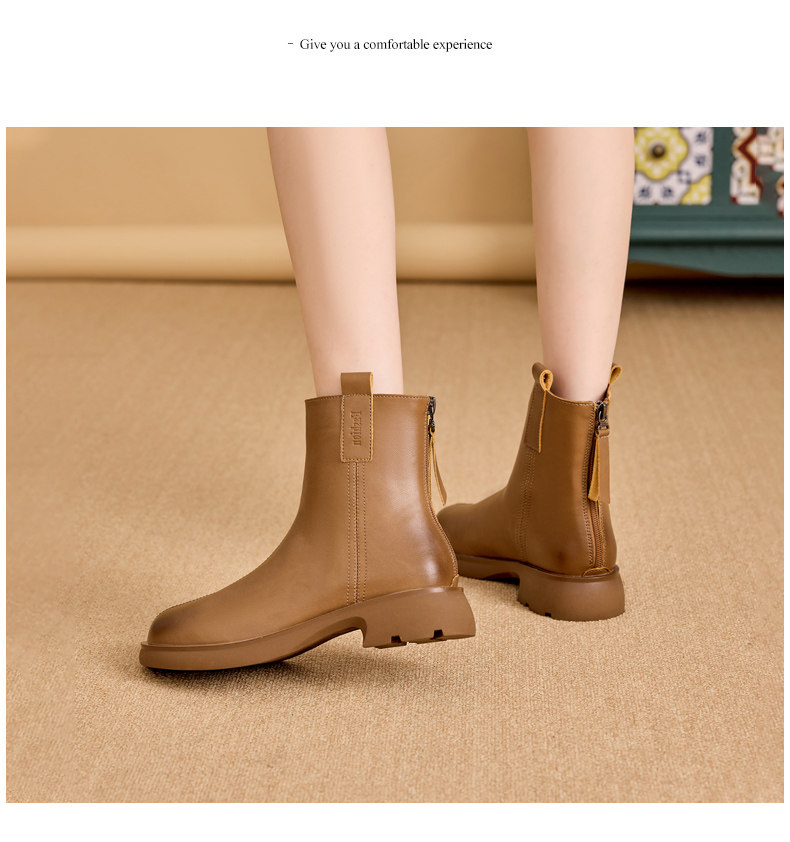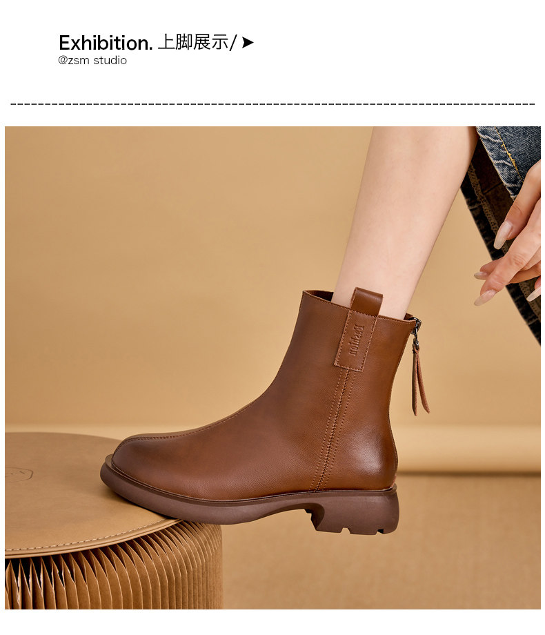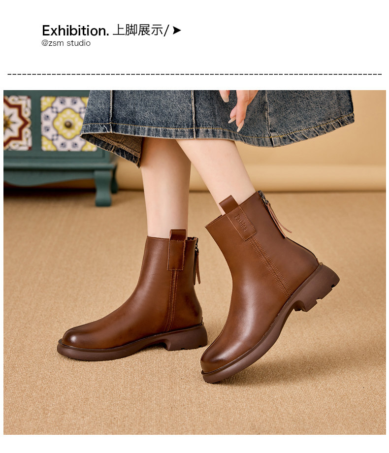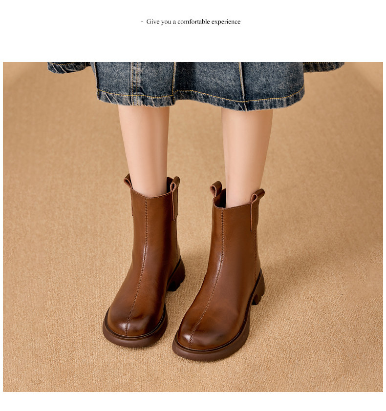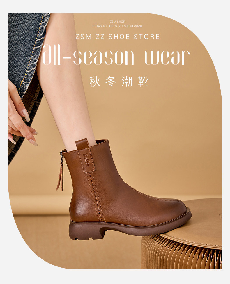 真皮馬丁靴女2025新款平跟春秋單靴休閒棕色女士大碼軟底菸筒短靴