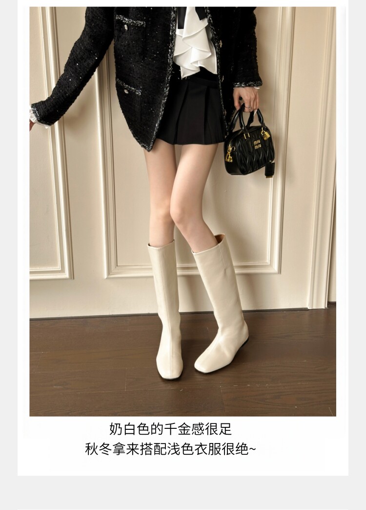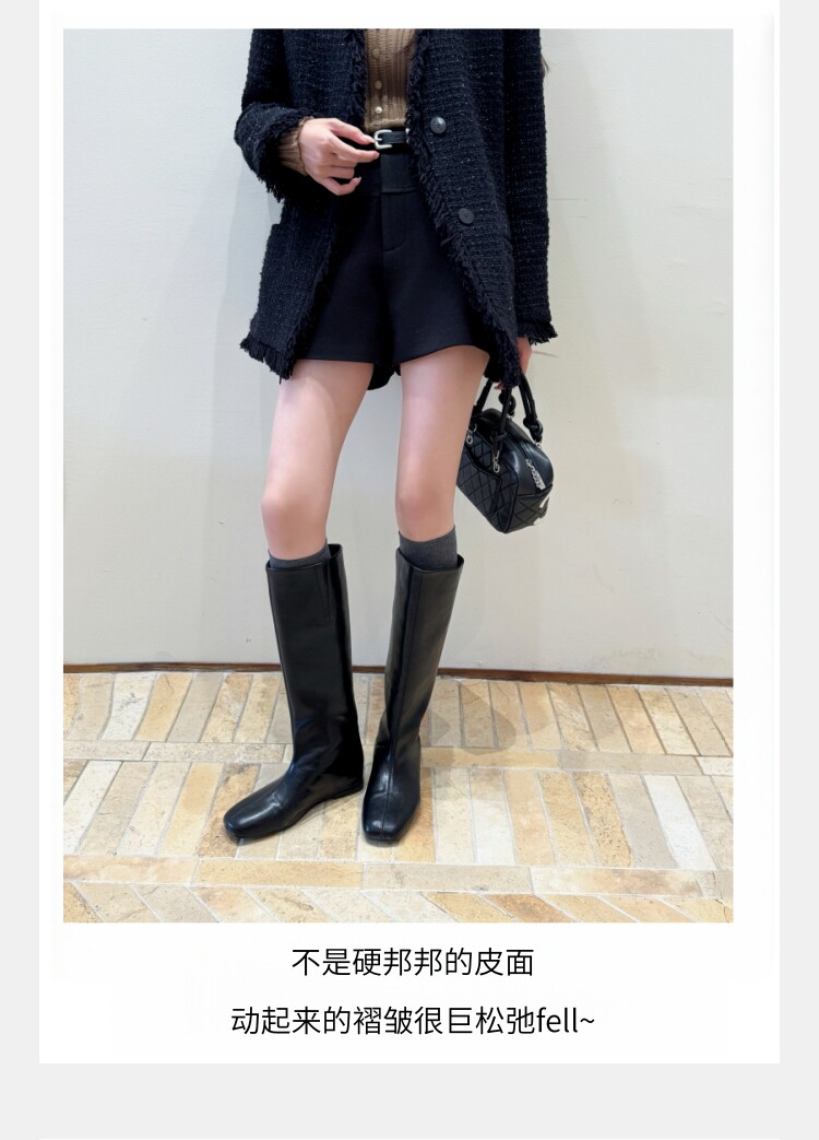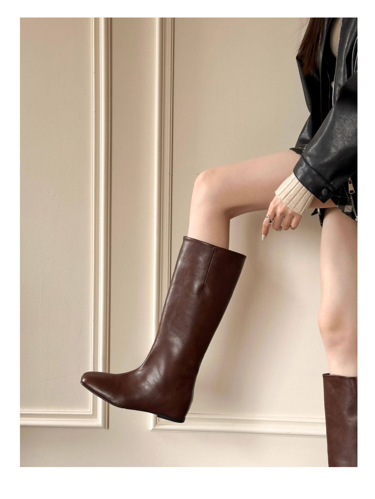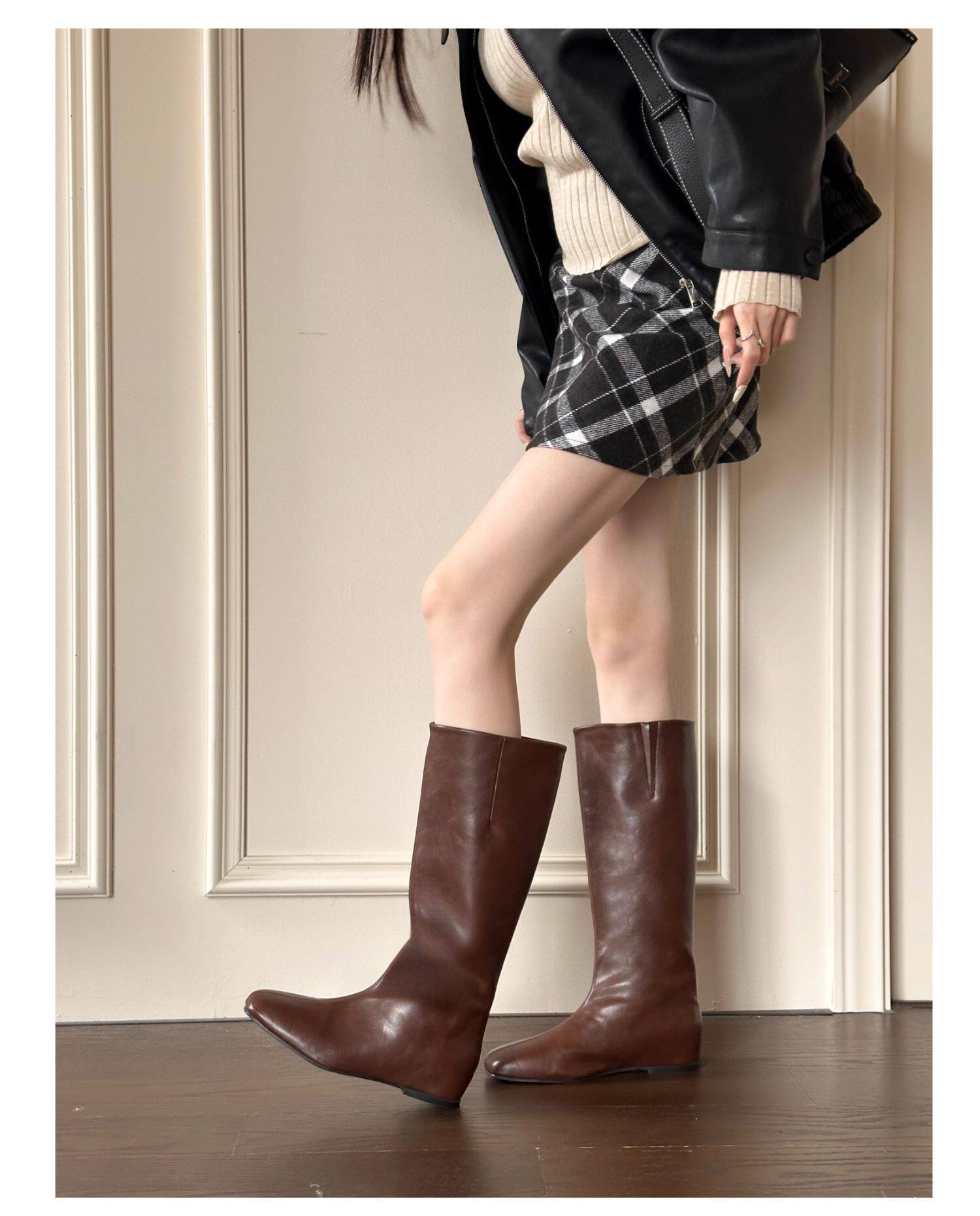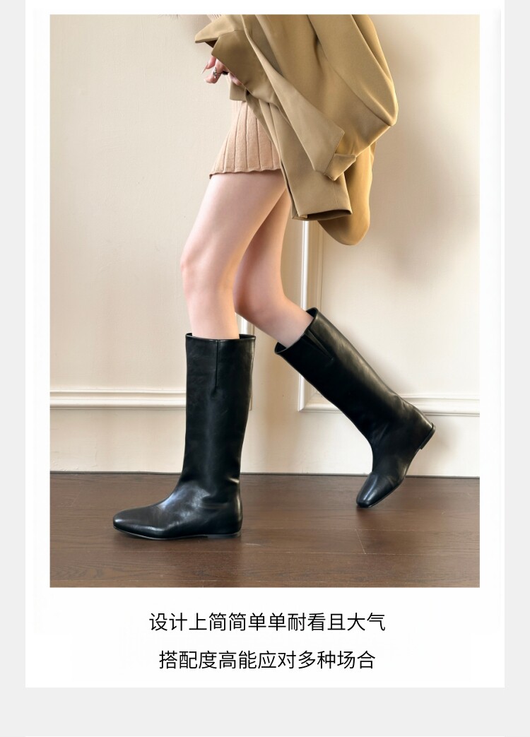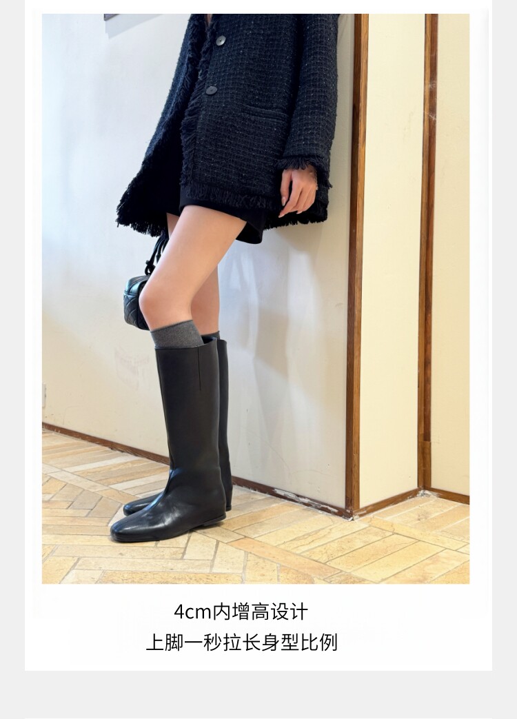 2026早春新款直筒騎士靴方頭內增高4cm不過膝高筒長靴西部牛仔靴
