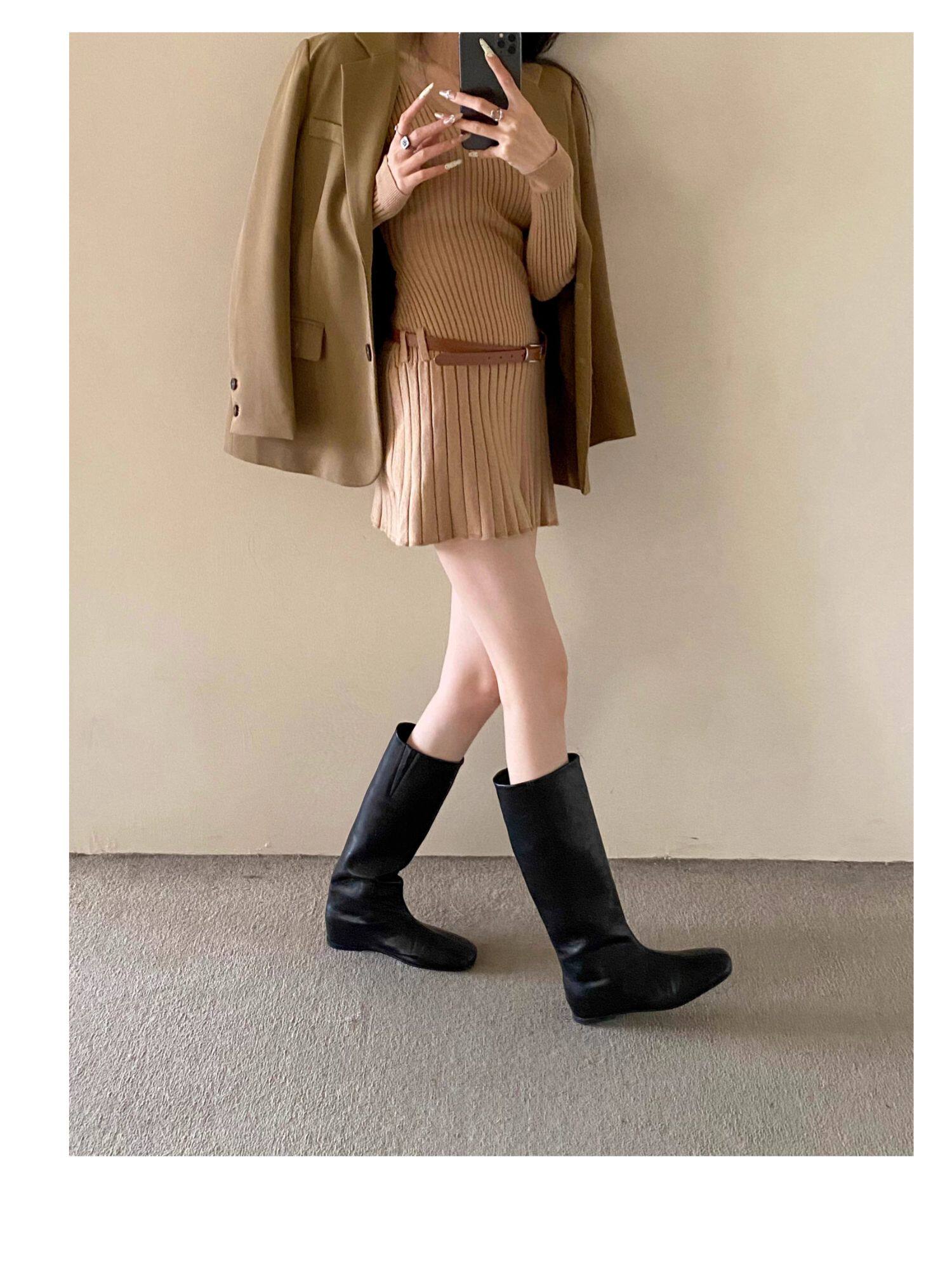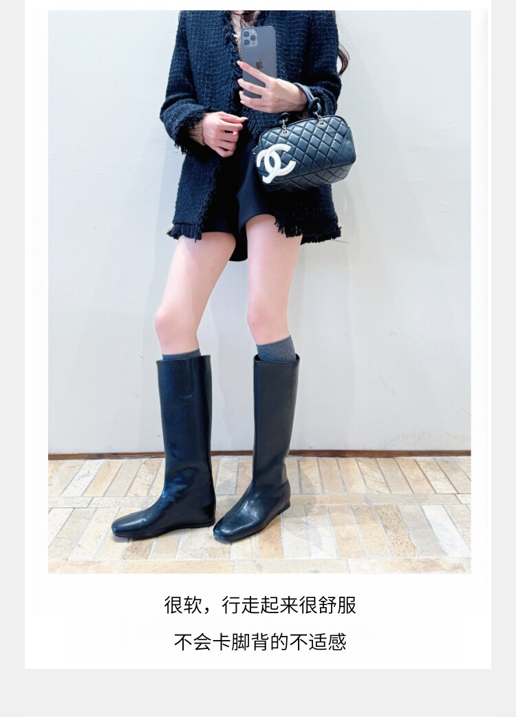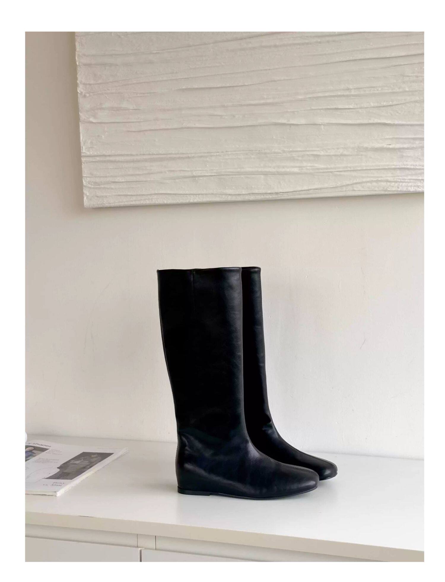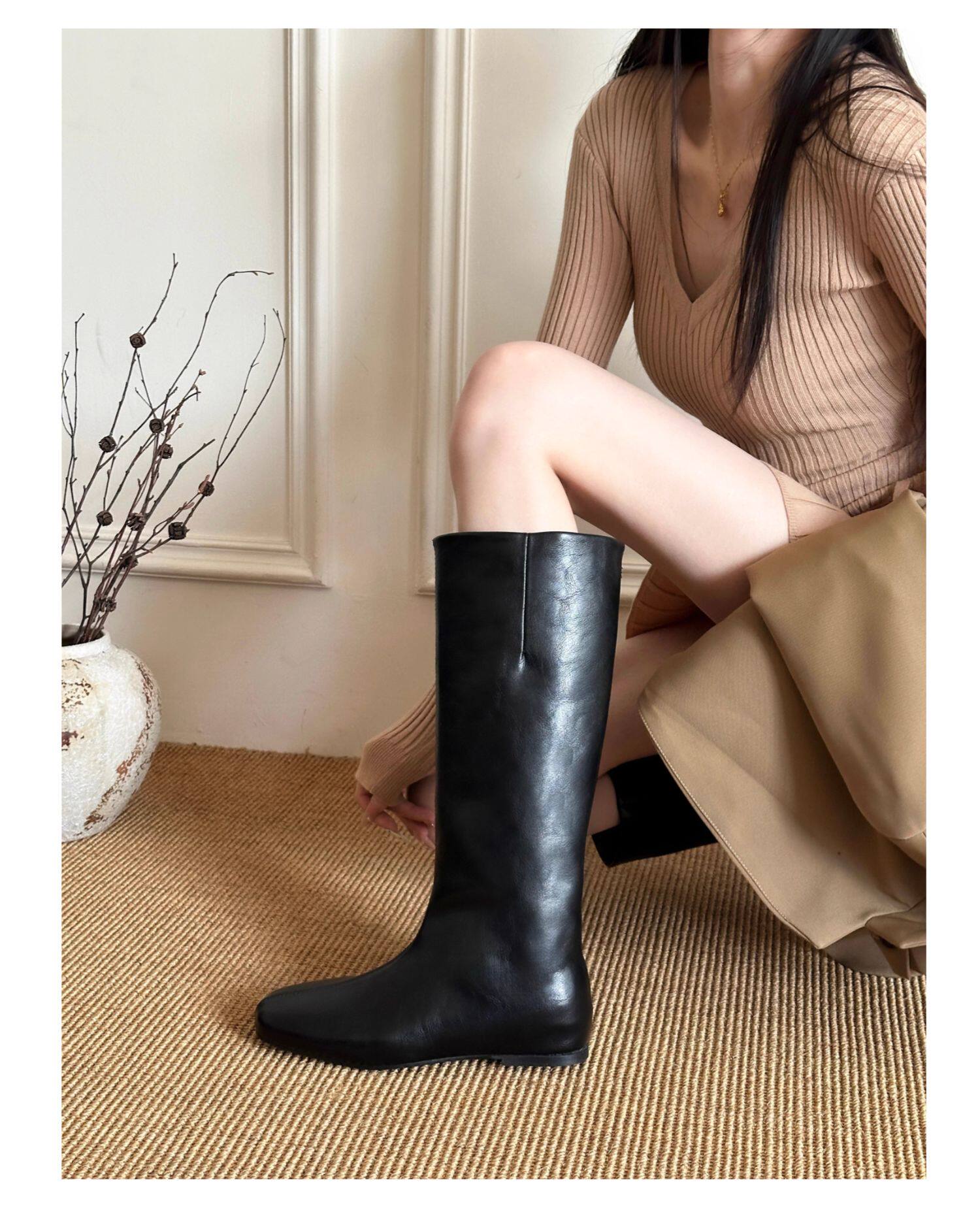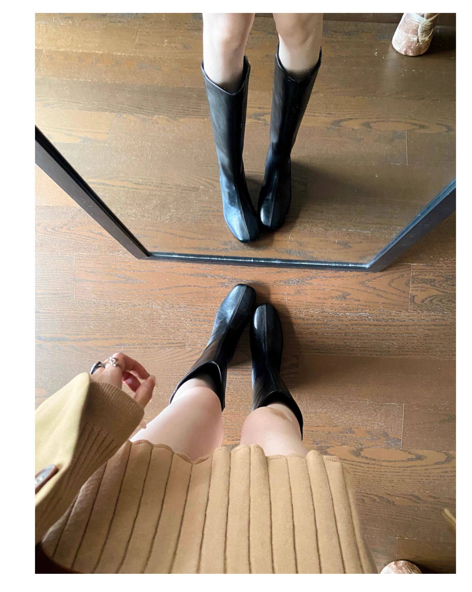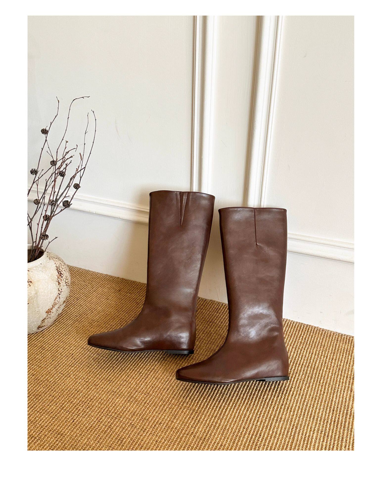 2026早春新款直筒騎士靴方頭內增高4cm不過膝高筒長靴西部牛仔靴