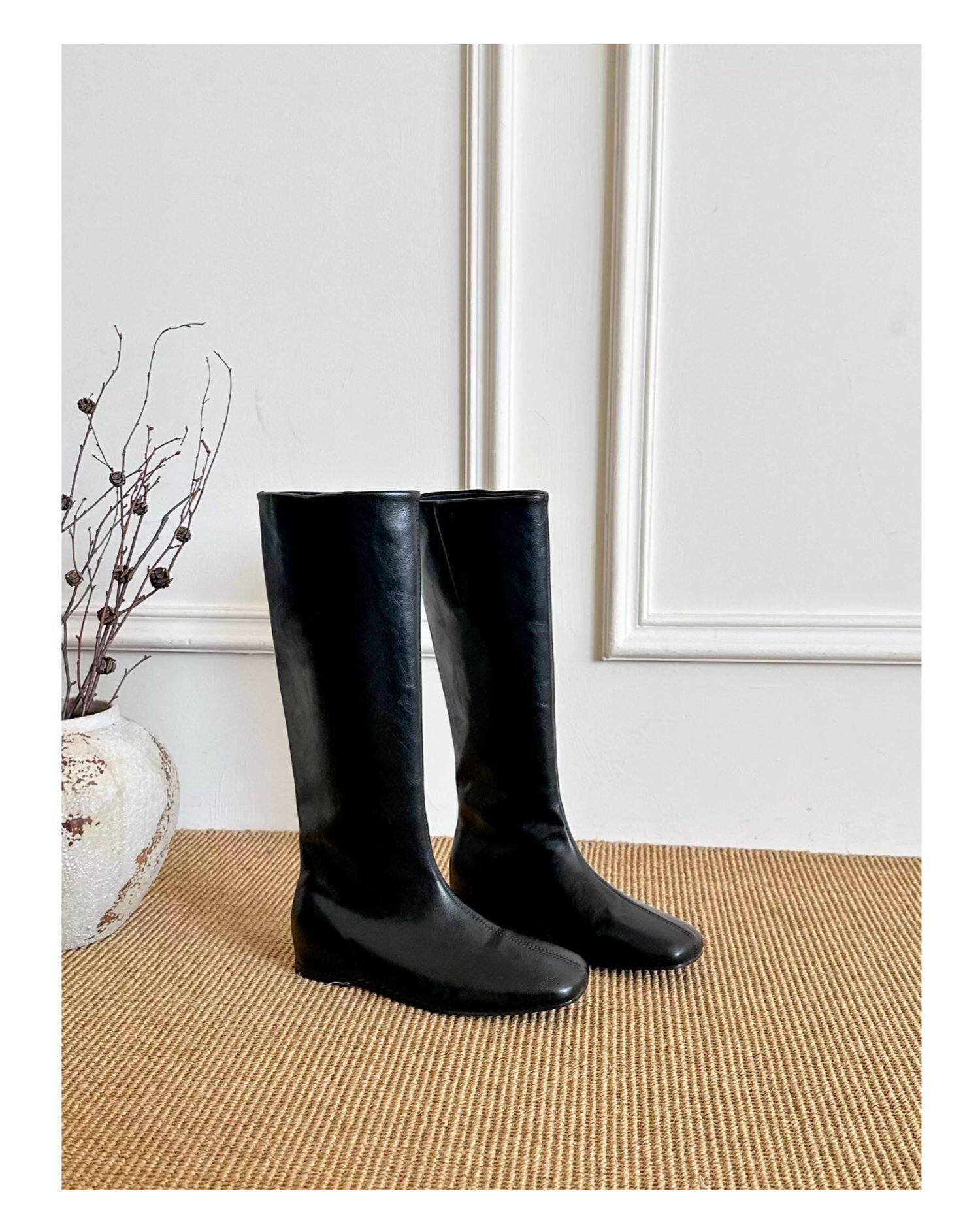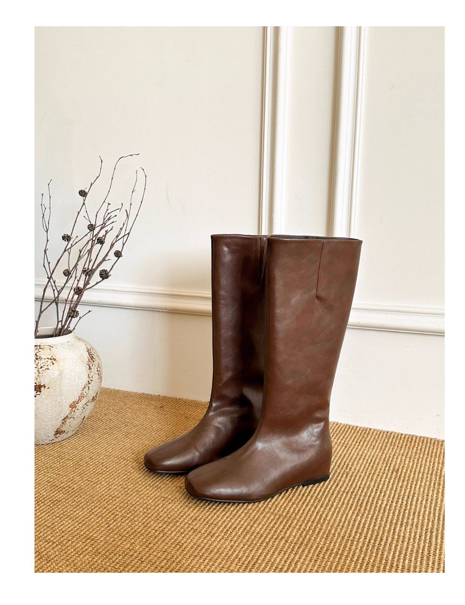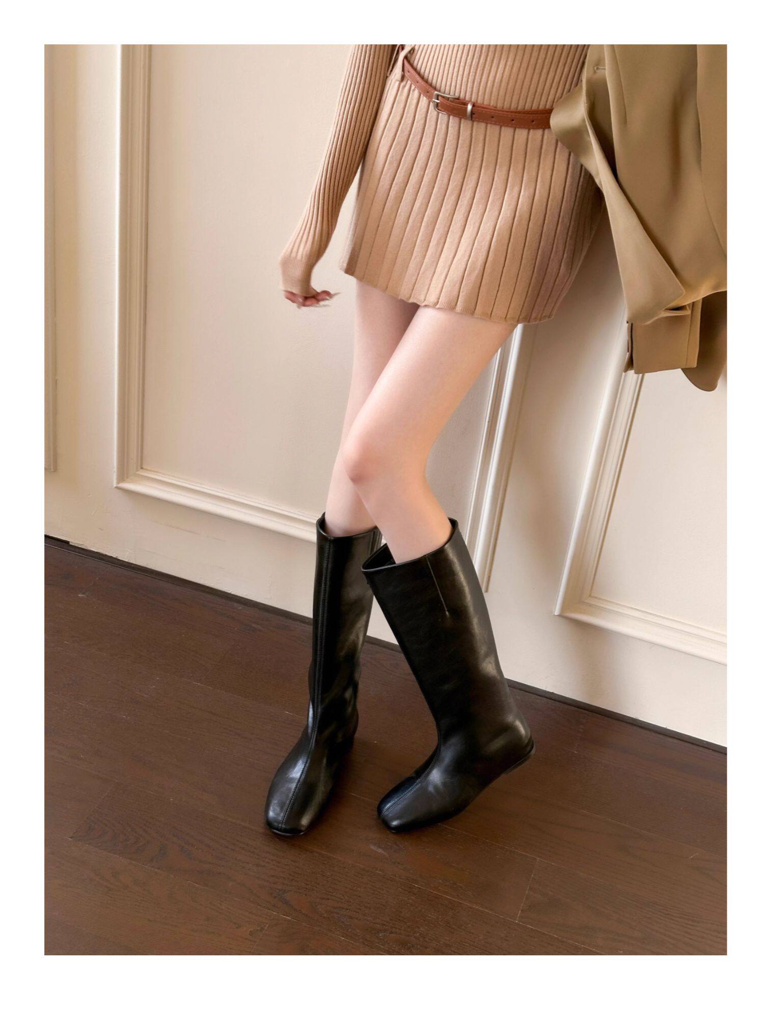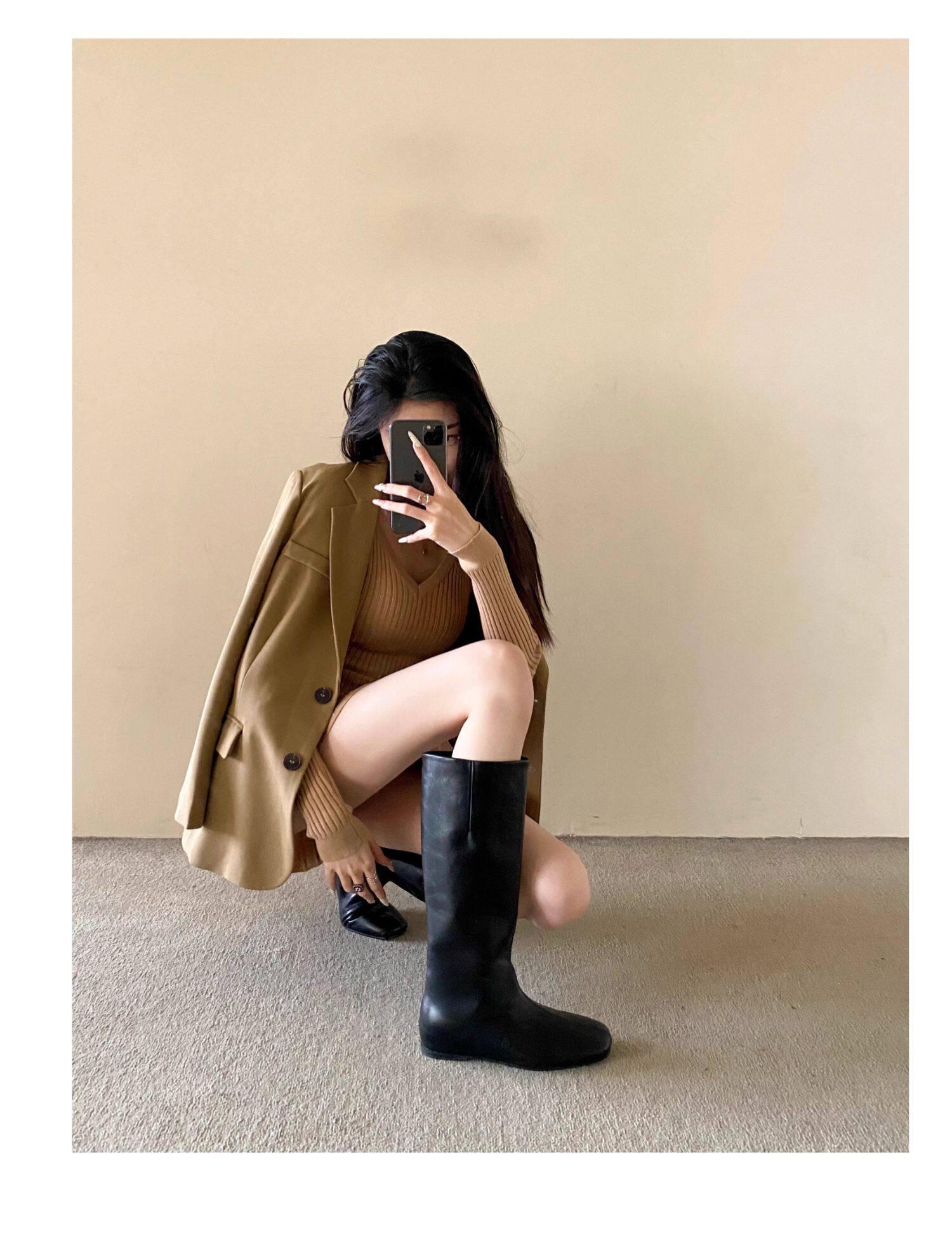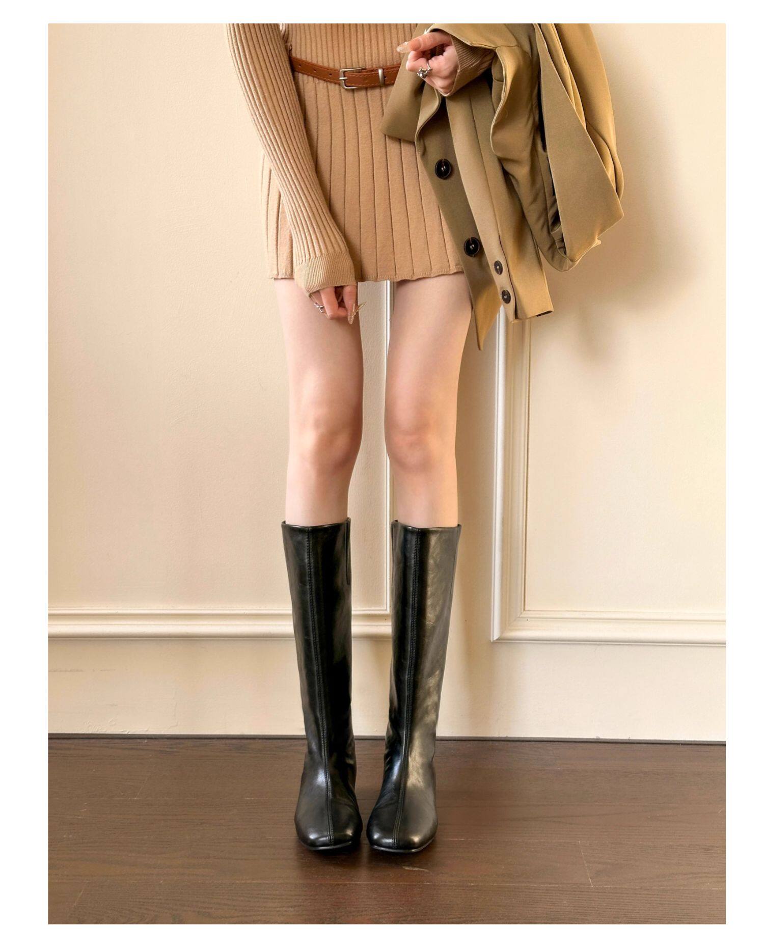 2026早春新款直筒騎士靴方頭內增高4cm不過膝高筒長靴西部牛仔靴