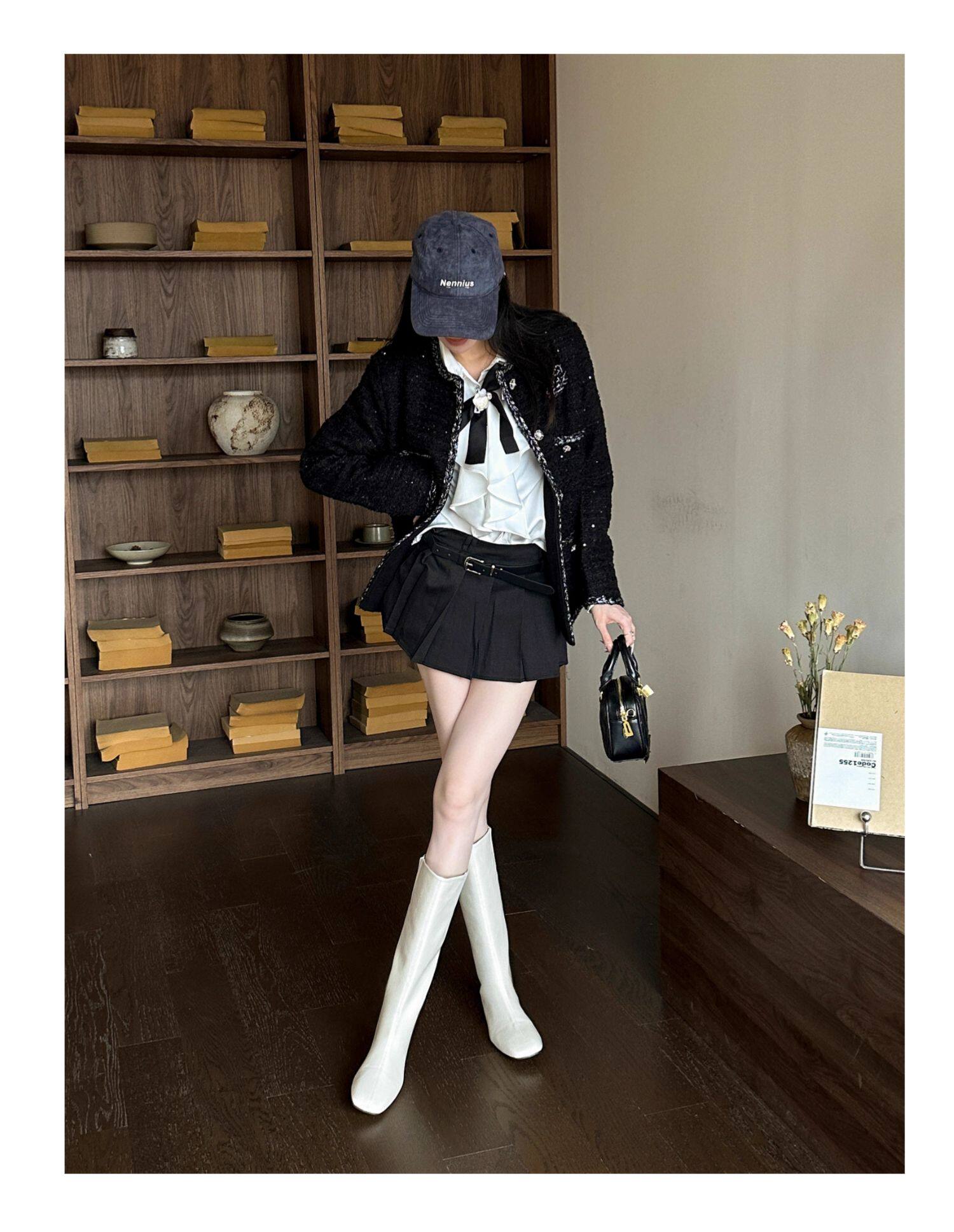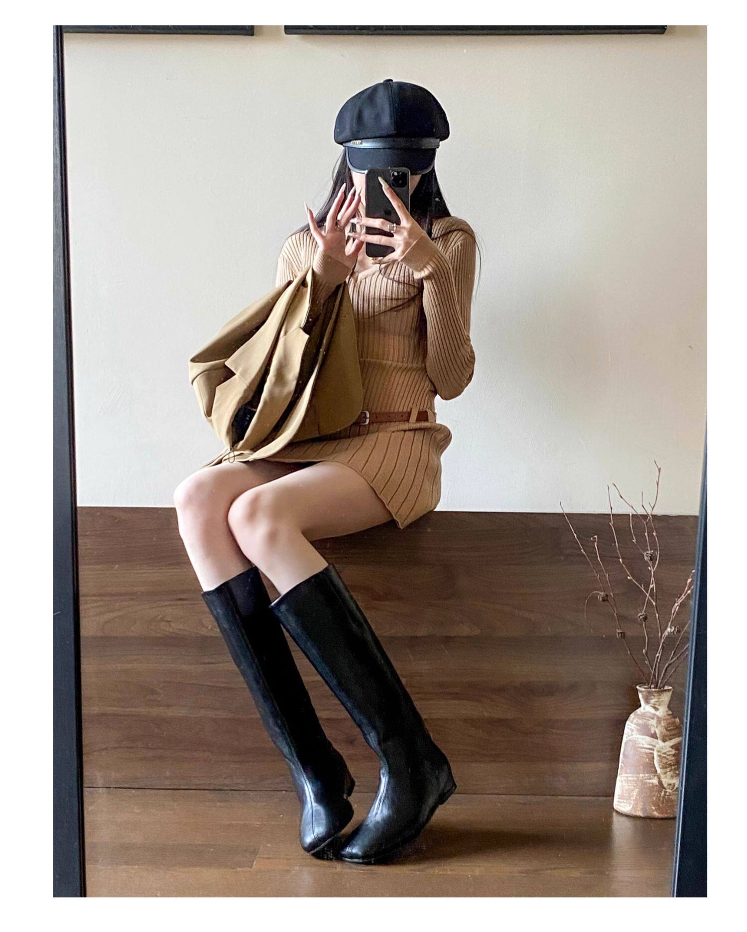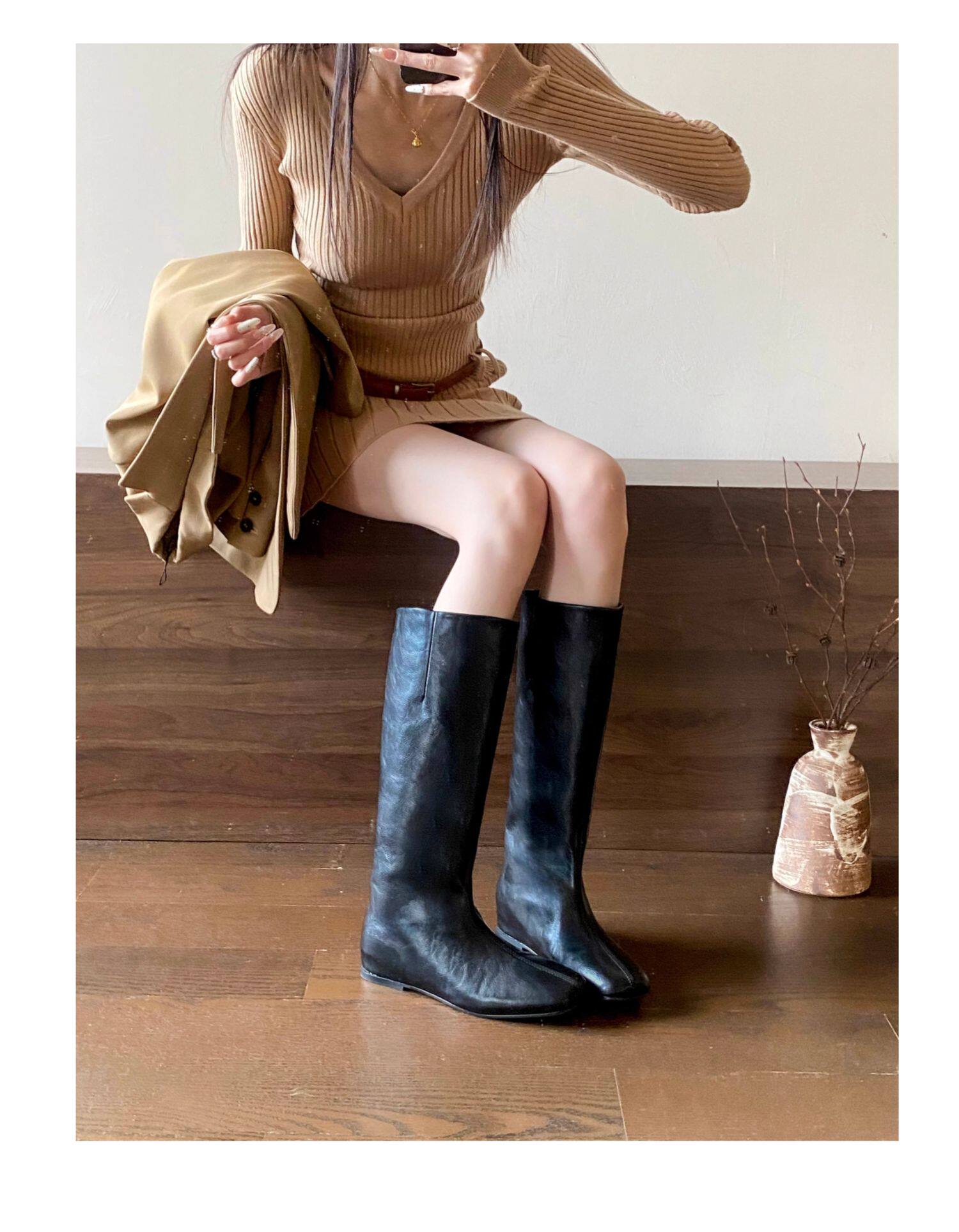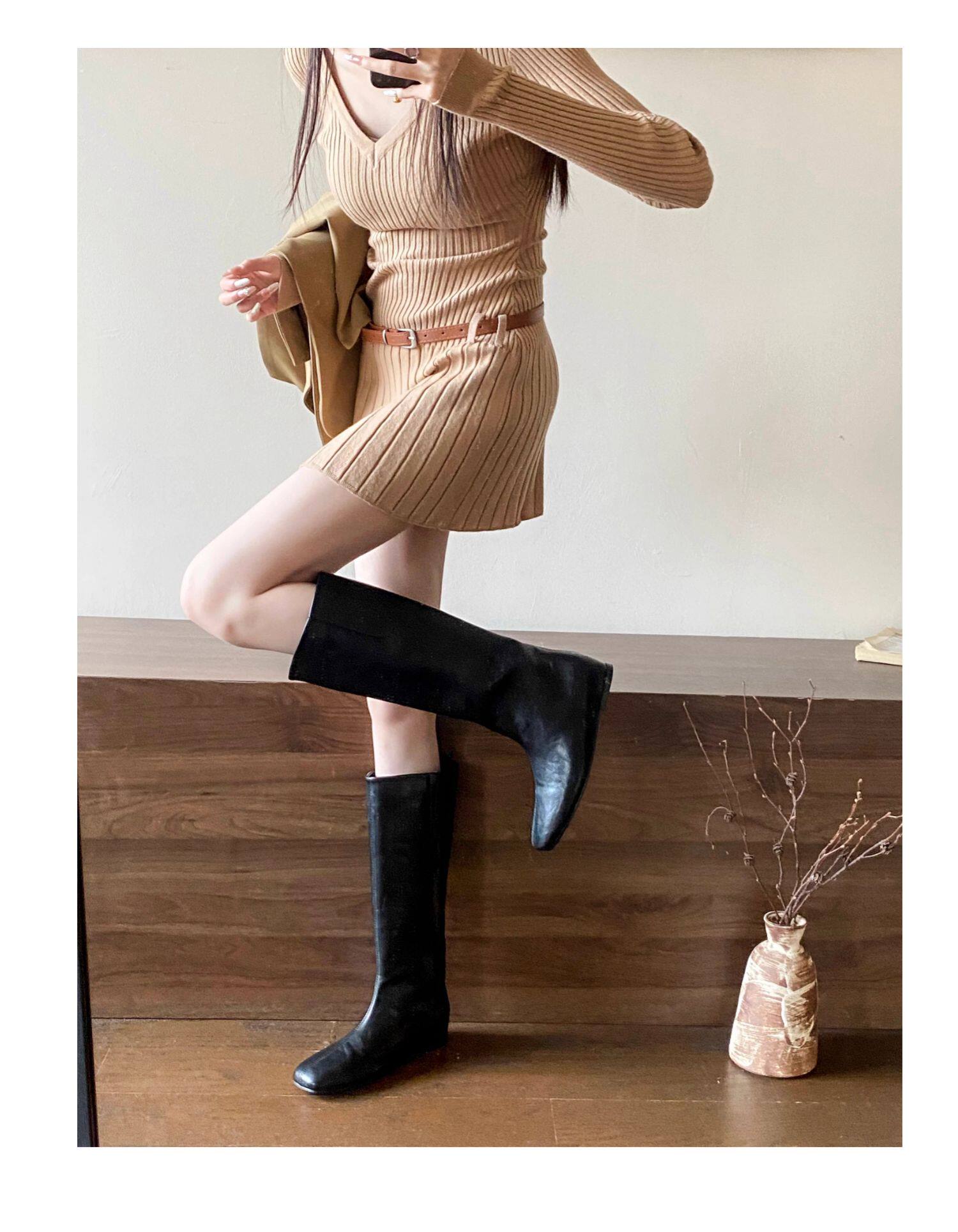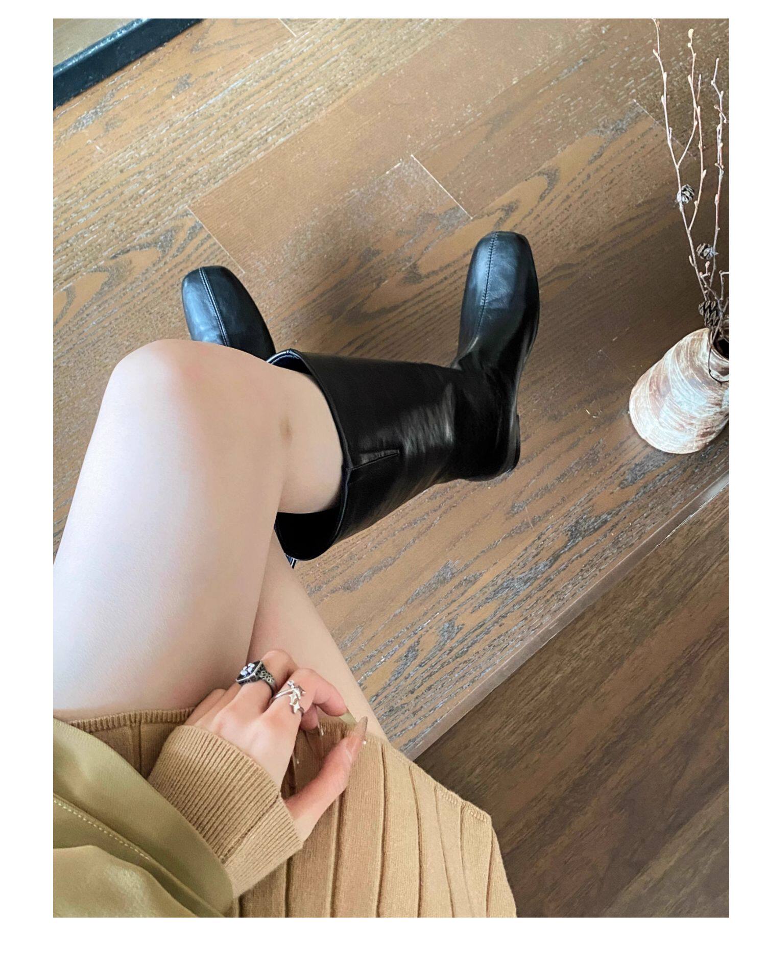 2026早春新款直筒騎士靴方頭內增高4cm不過膝高筒長靴西部牛仔靴