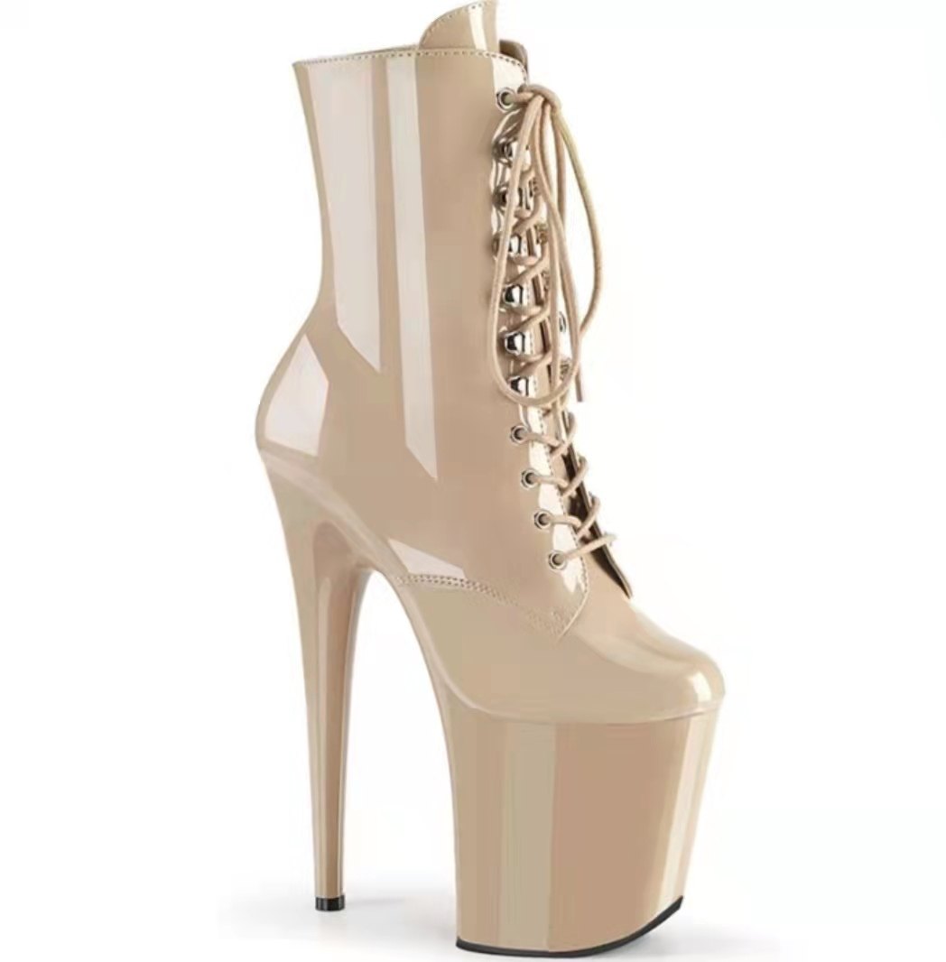 性感夜店鋼琯舞靴短靴15/17/20CM超高跟靴白色表演舞台厚底情趣鞋