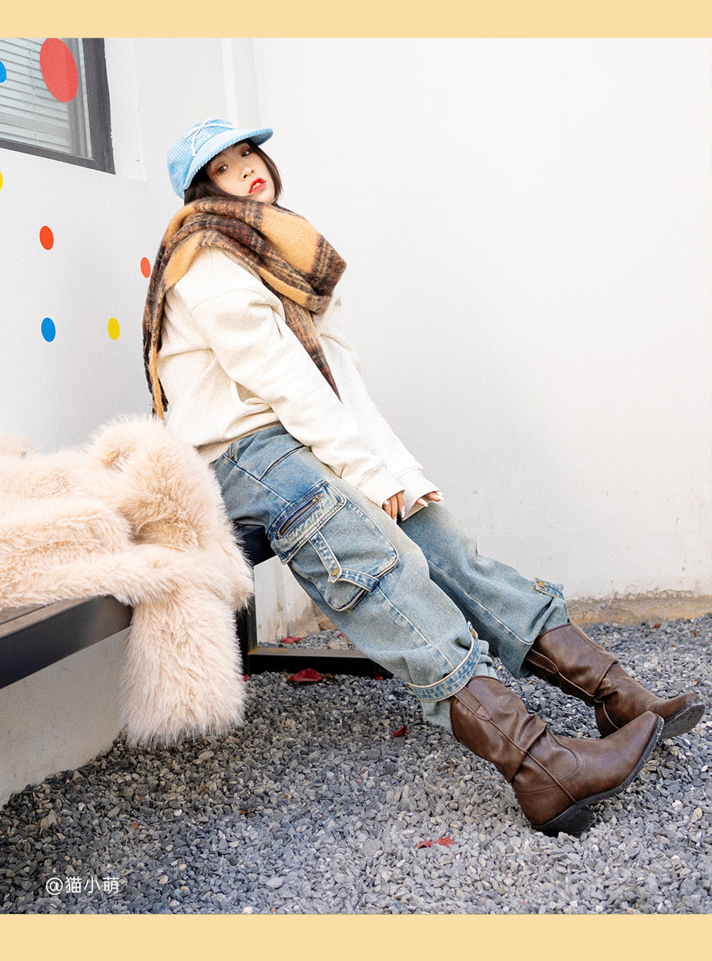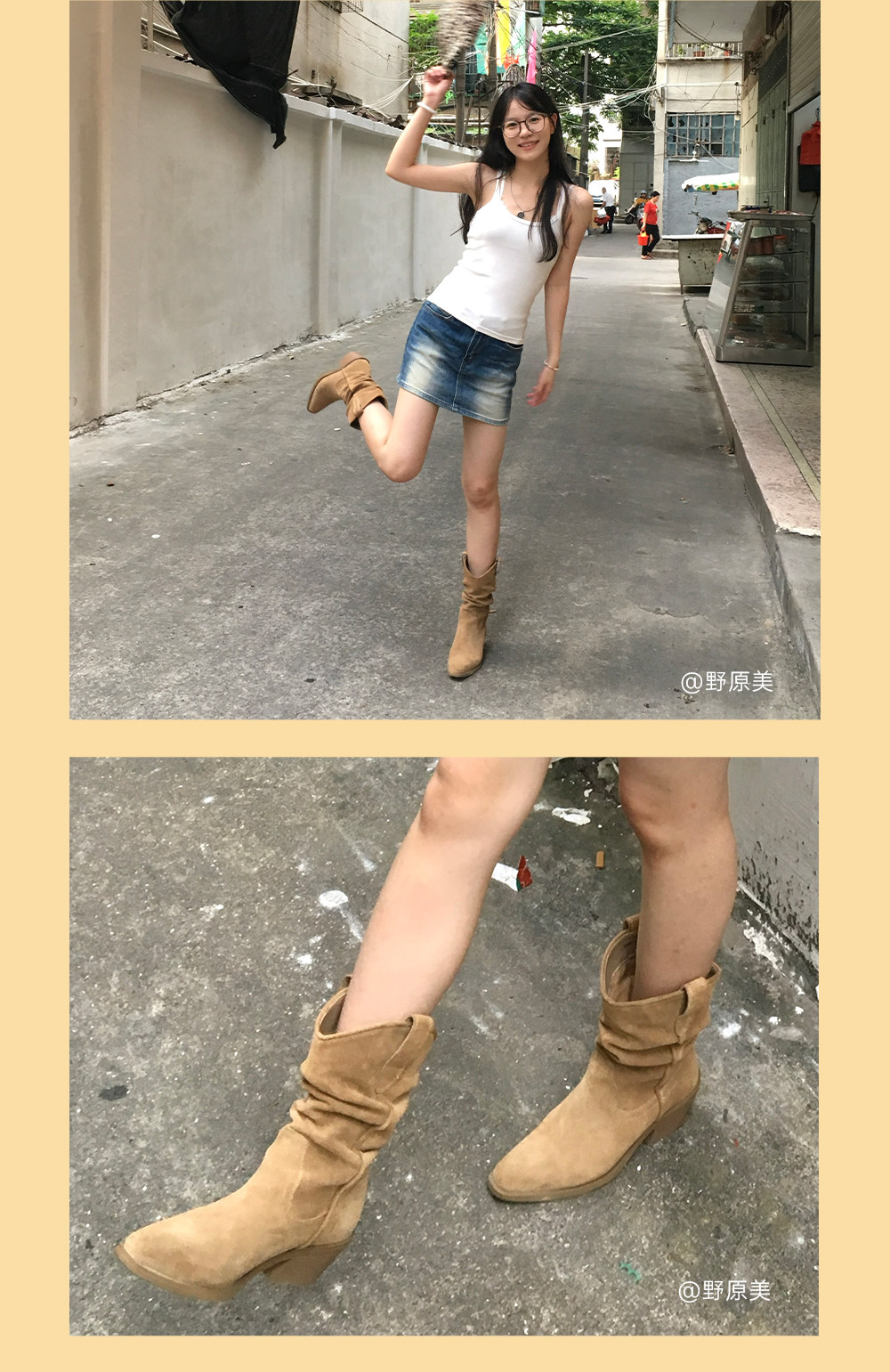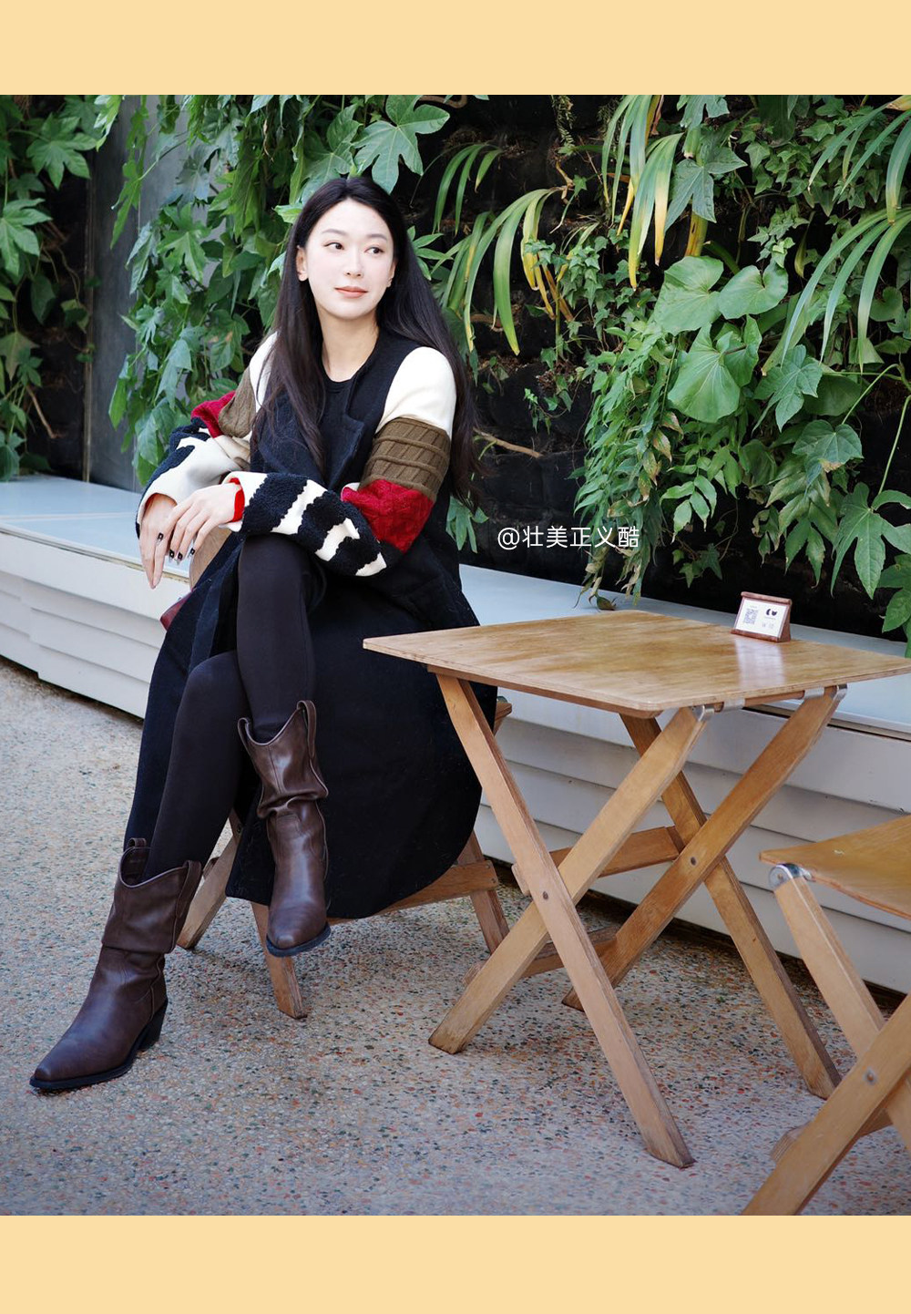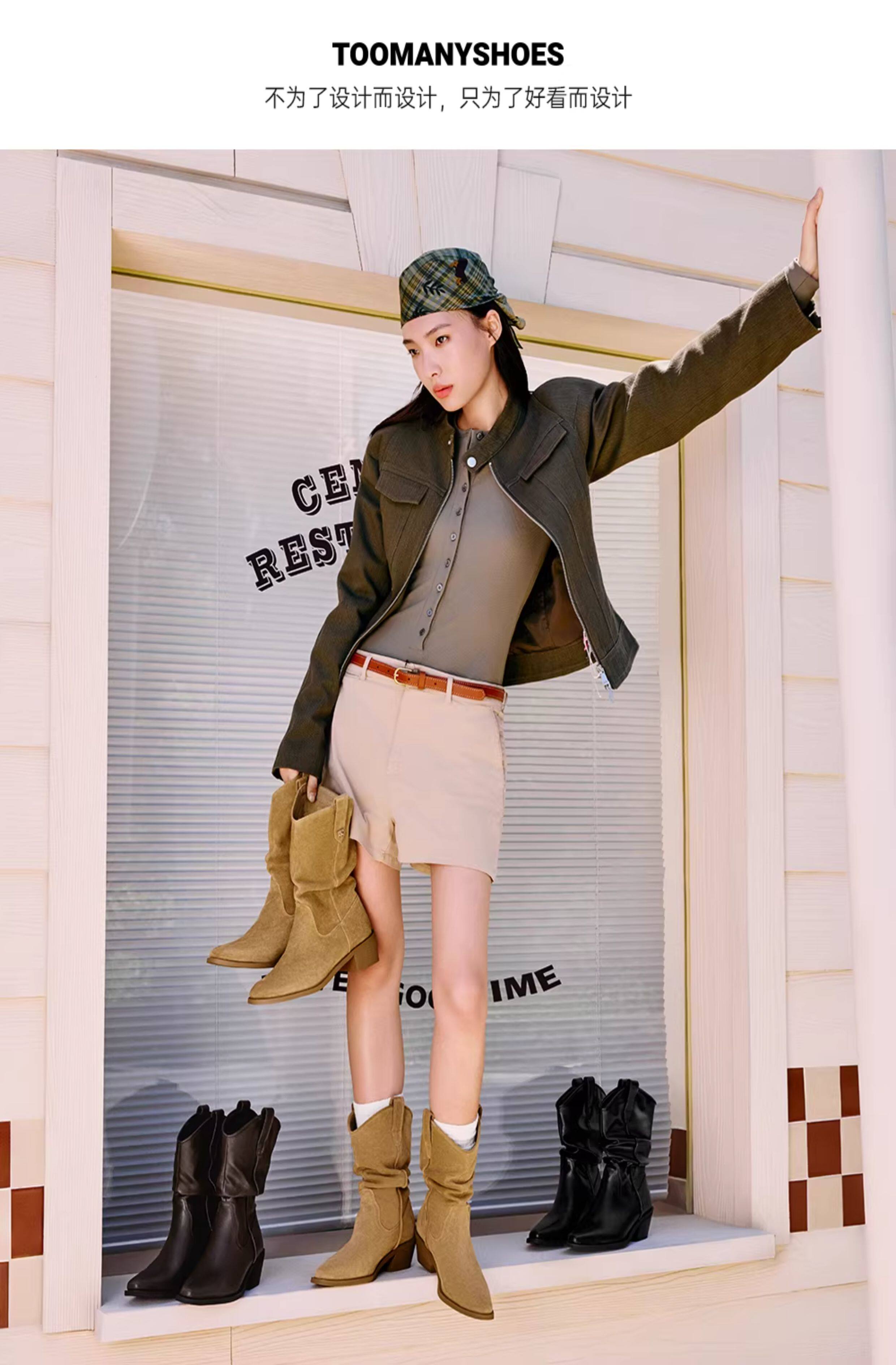明星同款Toomanyshoes騎士靴秋日記憶美拉德堆堆靴