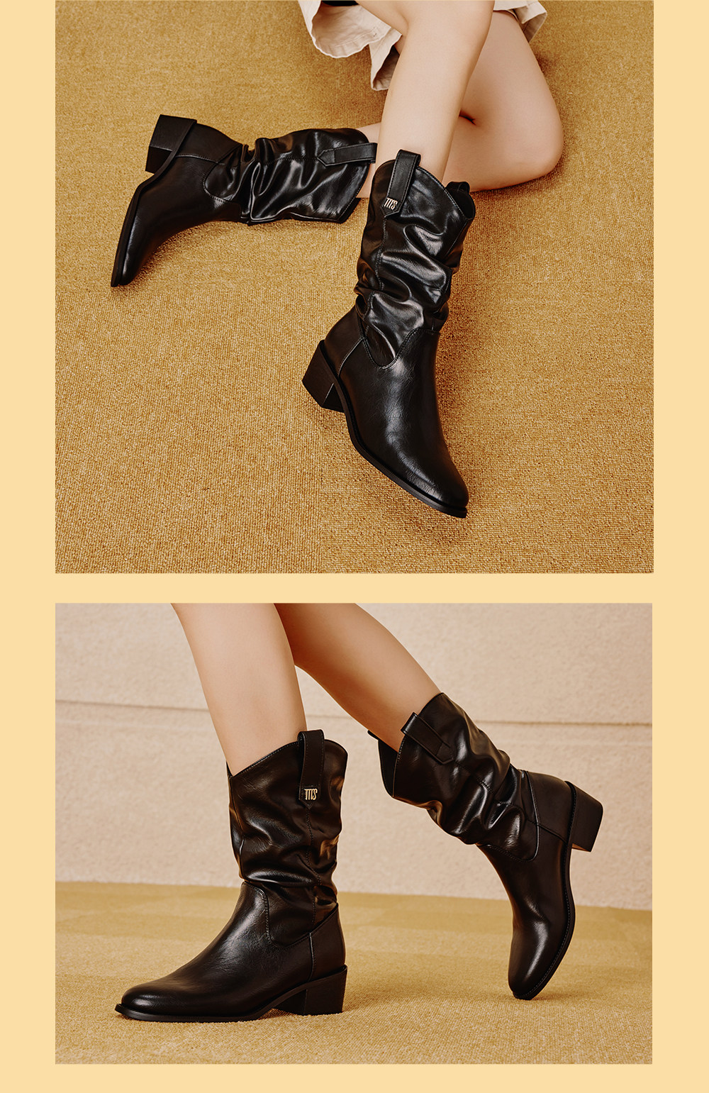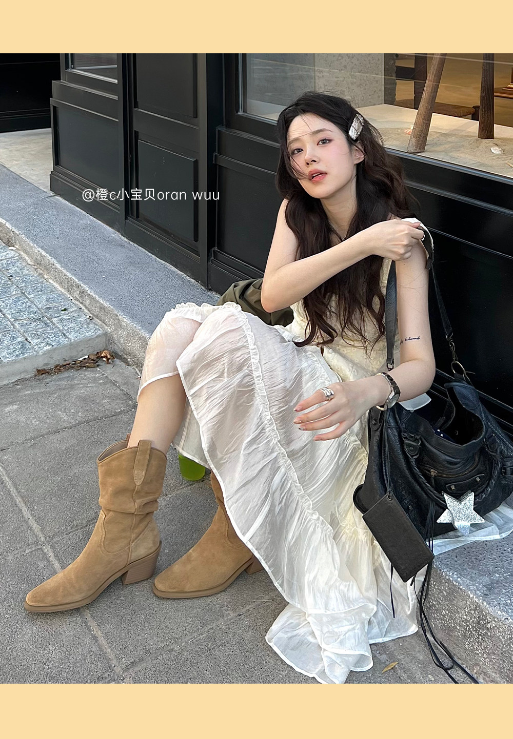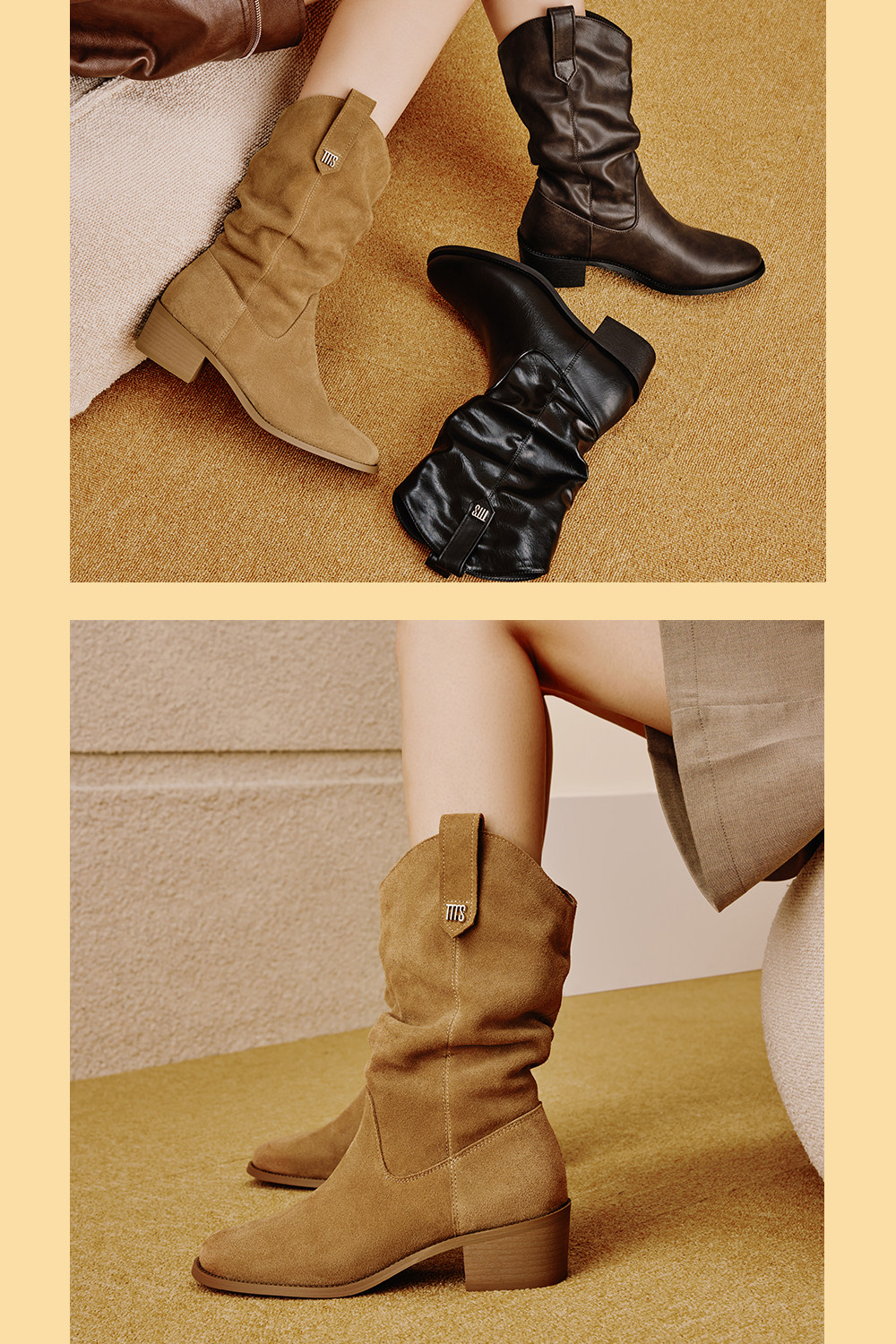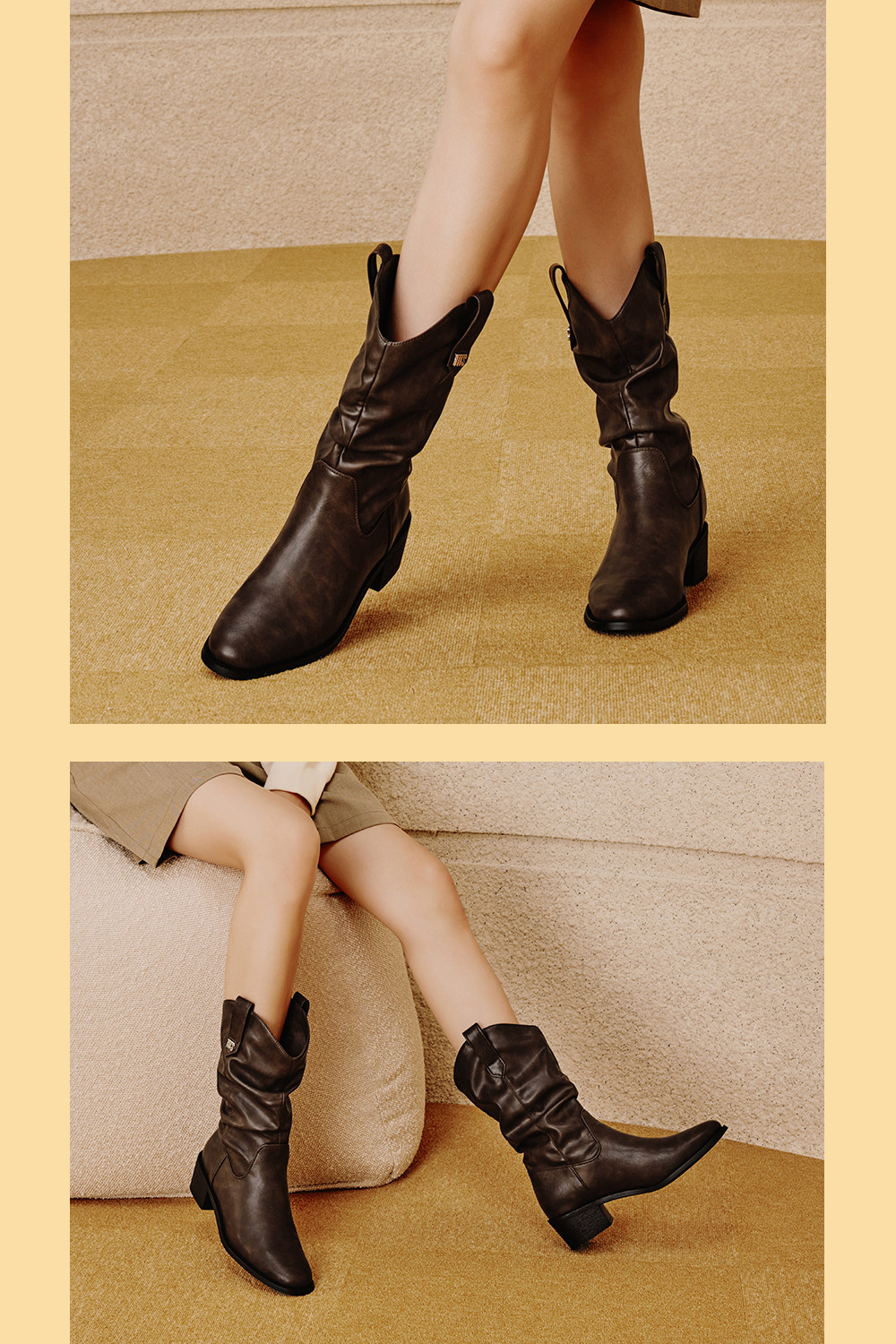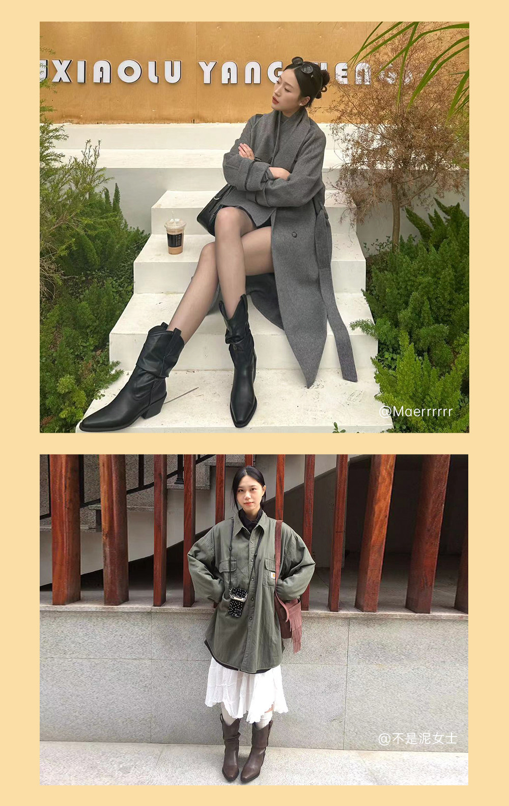 明星同款Toomanyshoes騎士靴秋日記憶美拉德堆堆靴