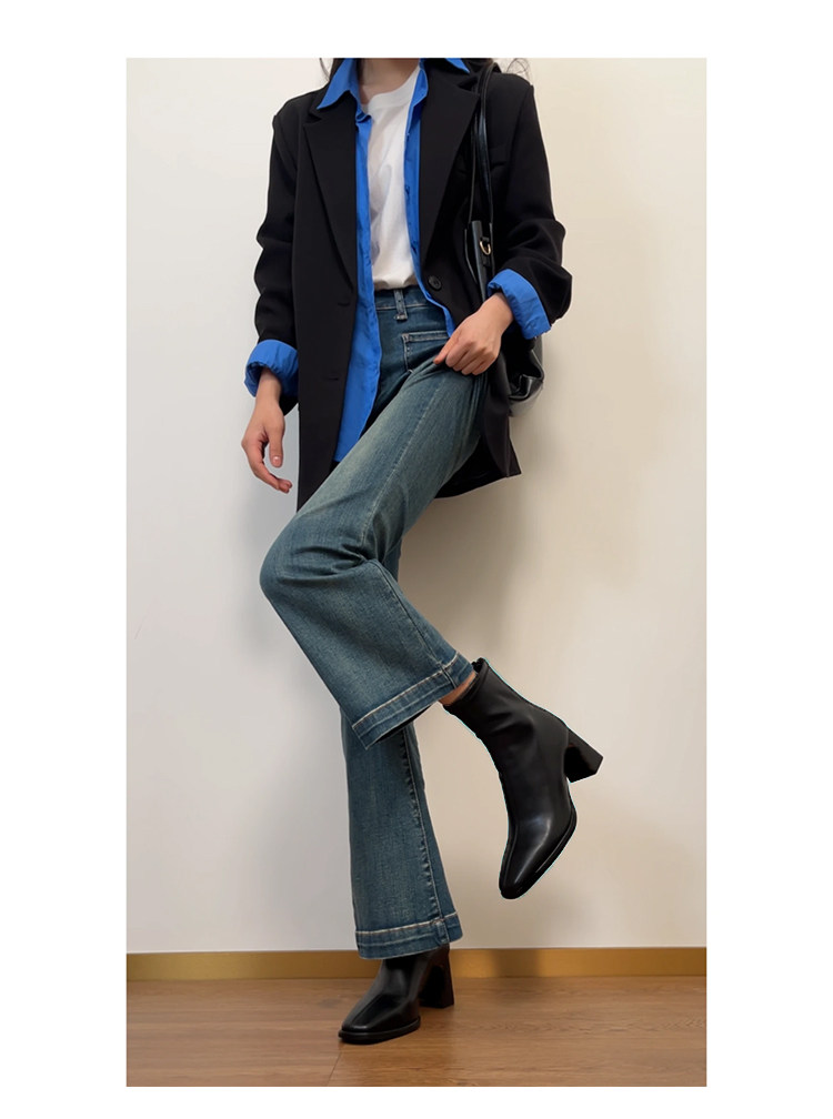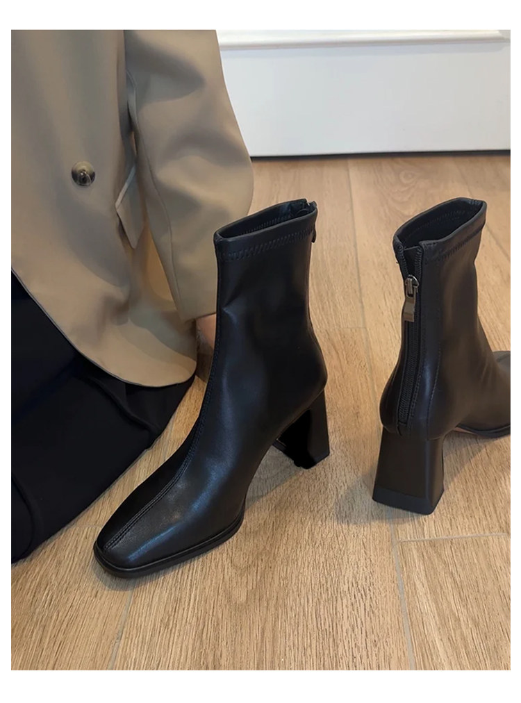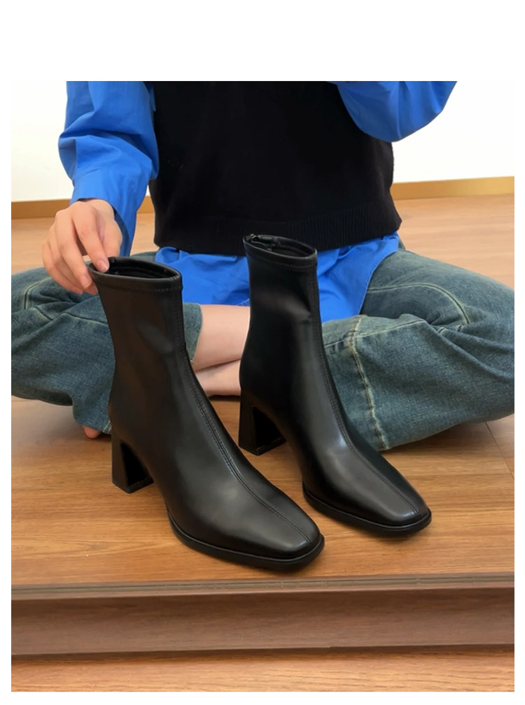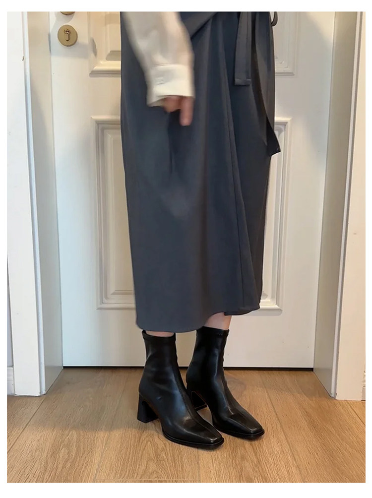 羊皮版~法式高跟瘦瘦靴女方頭粗跟切爾西馬丁靴子巨好看氣質短靴