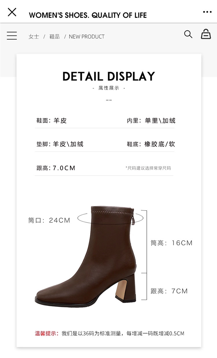 | 貨號 | 巨好看短靴早秋靴高級感配裙子的靴子超火短筒靴 |