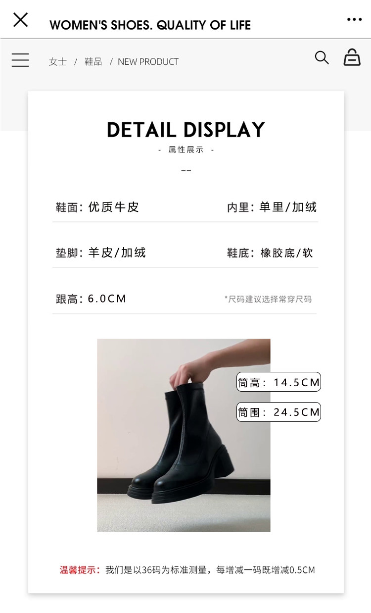 | 貨號 | 巨好看英倫風短靴女早秋瘦瘦靴高級感配裙子的靴子超火短筒靴切爾西靴 |