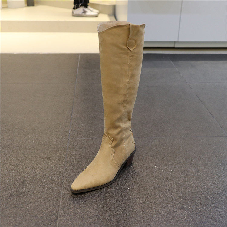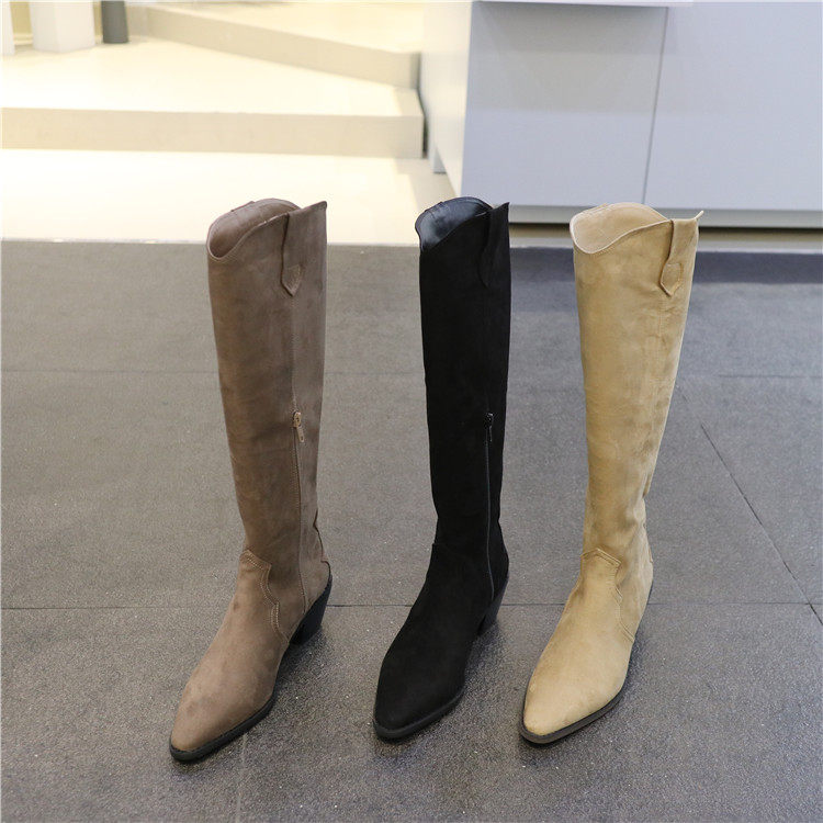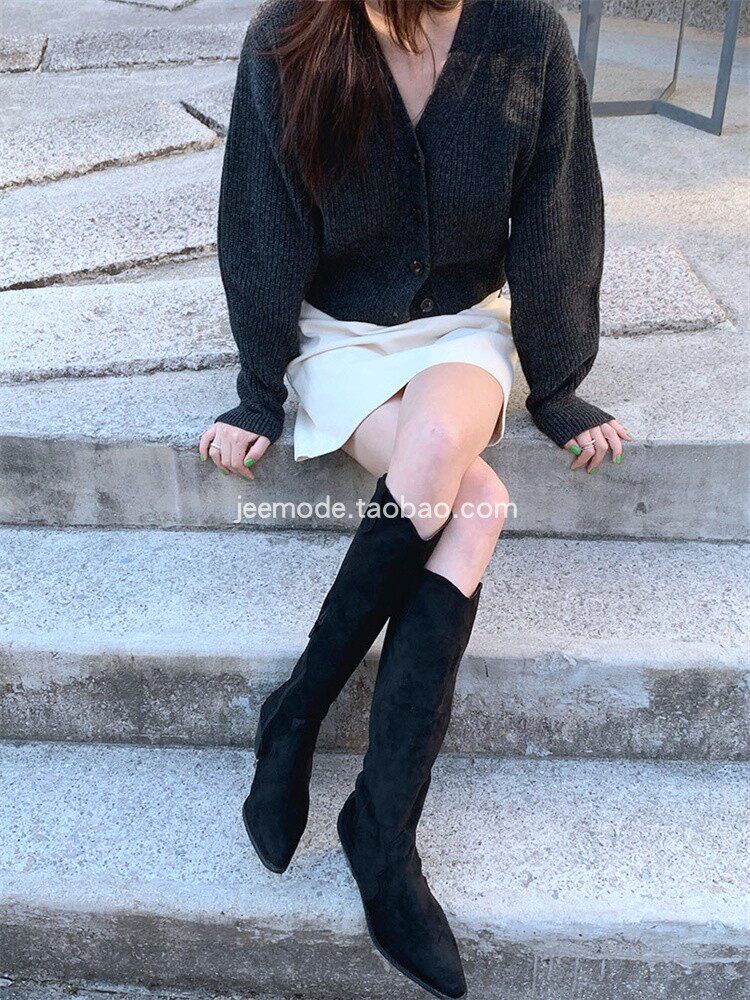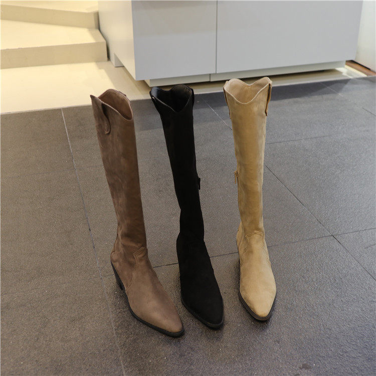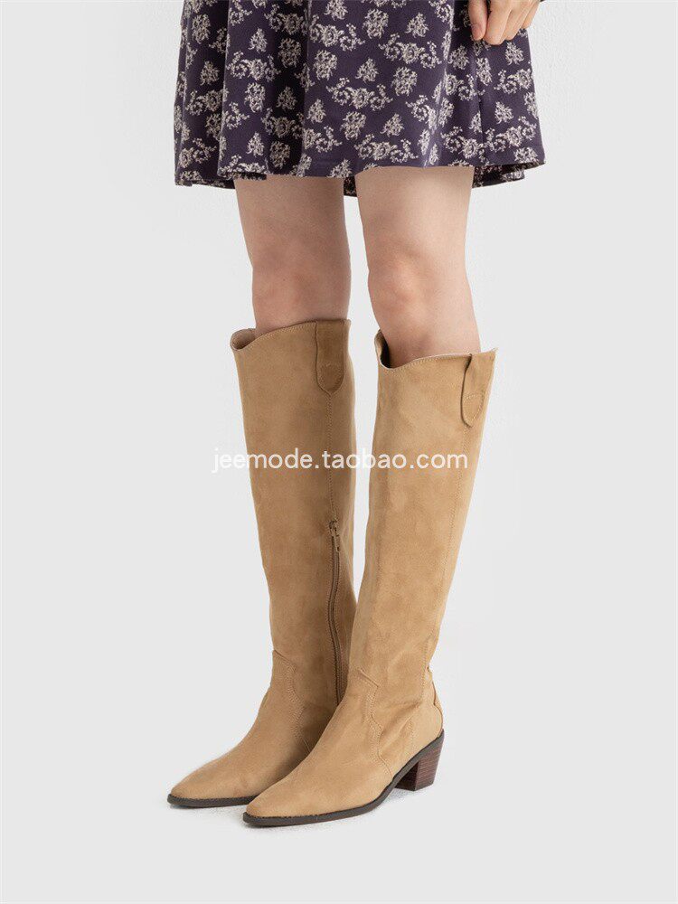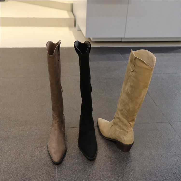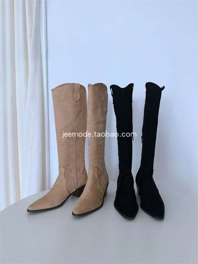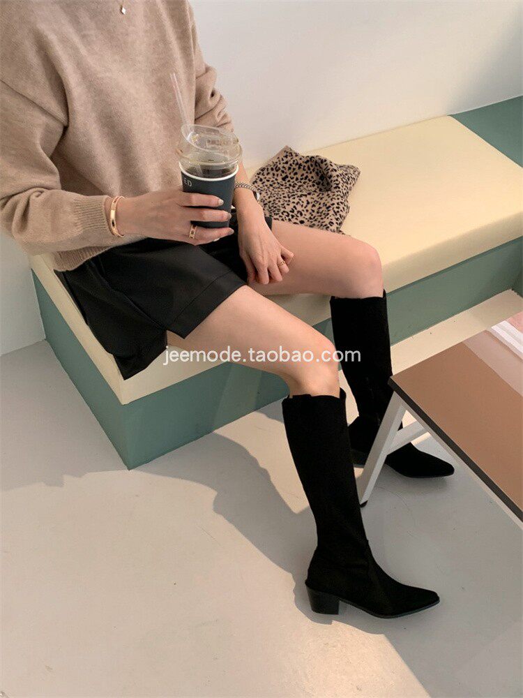 韓國東大門2023秋季新款尖頭方跟復古套筒牛仔長筒ins潮騎士靴子